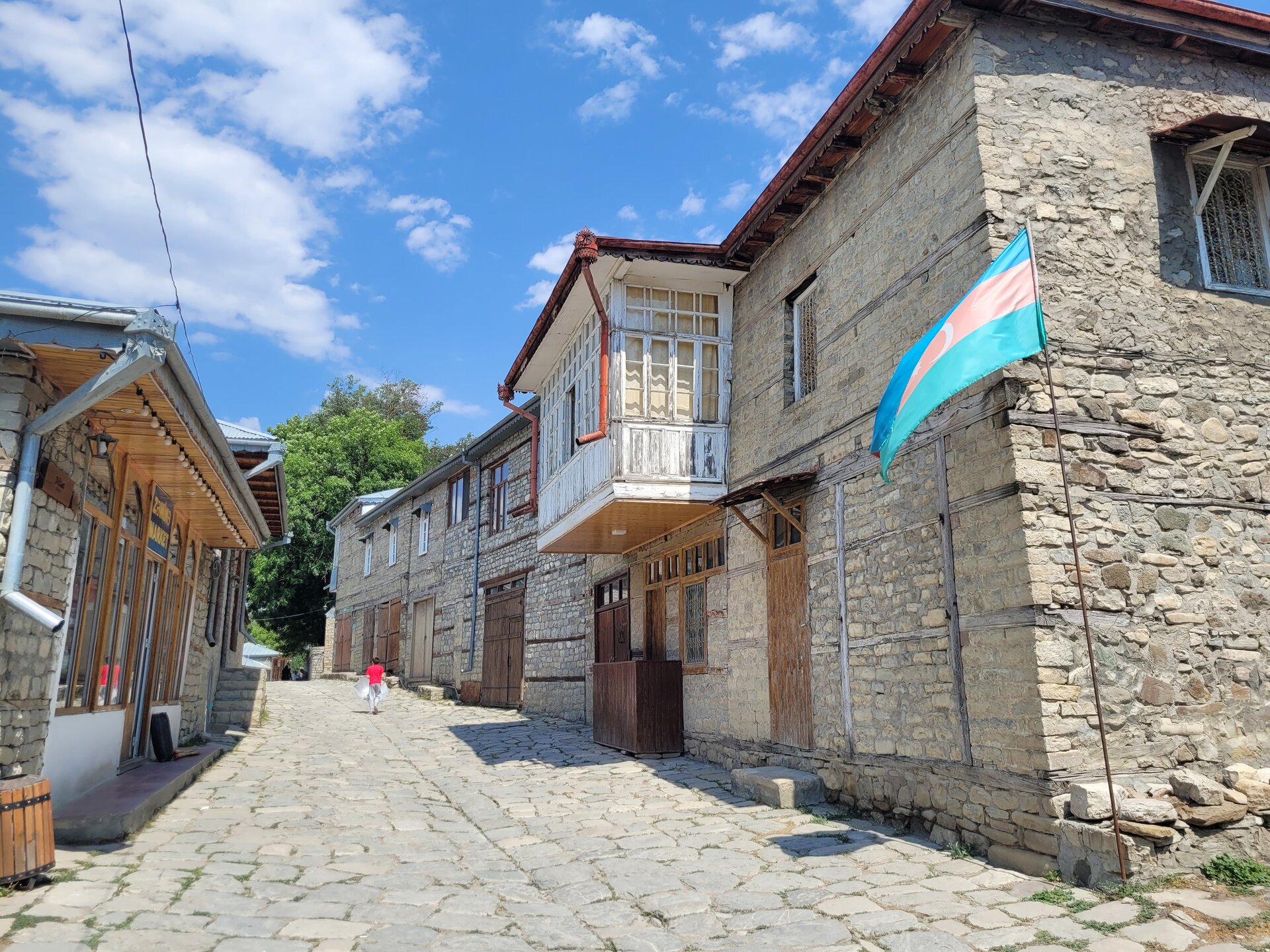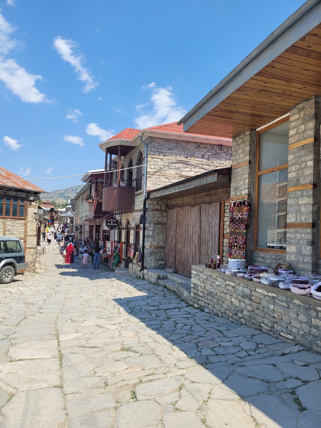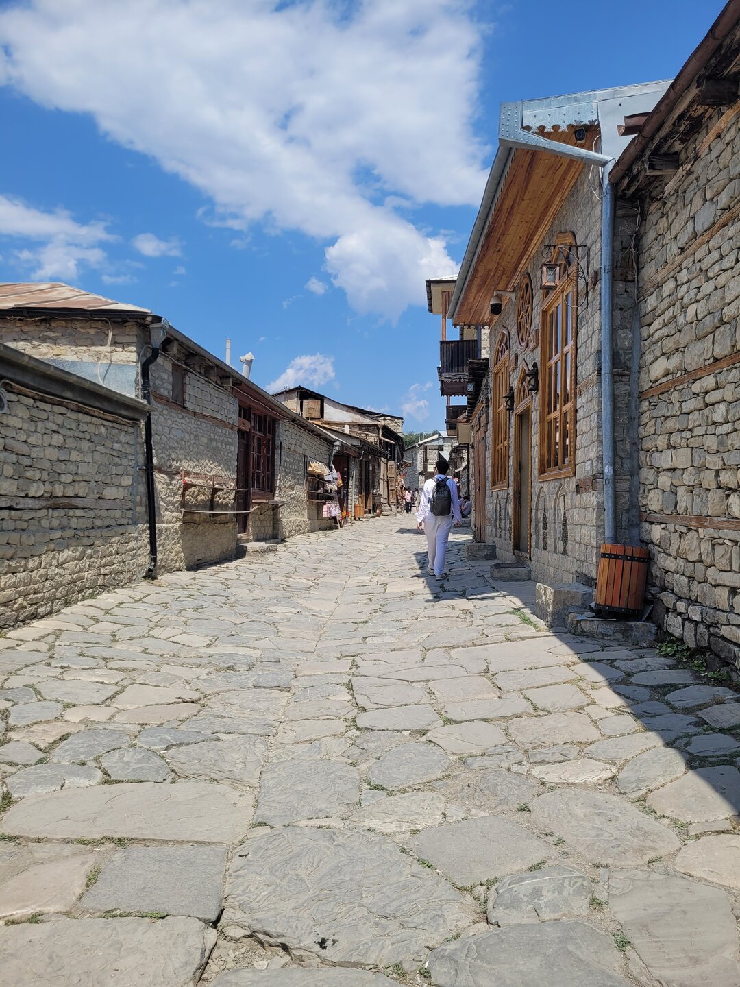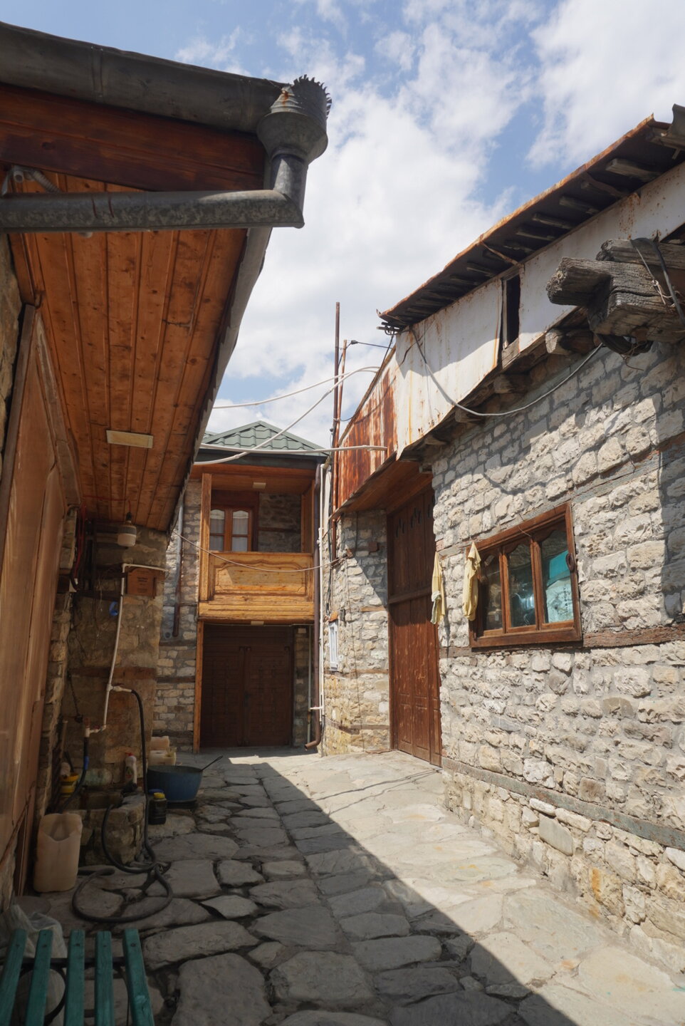 Лагич – это поразительное место в Азербайджане, являющееся культурным заповедником. Это село практически не тронутое современностью, а зависшее в прошлых эпохах. Чаще всего, ради знакомства с ним, в этот район страны приезжают туристы, интересующиеся историей и предпочитающие национальный колорит современной инфраструктуре. Мощёные улочки и площади, где в самобытных каменных домах живут мастера-ремесленники, занимающиеся коврами и медным промыслом. И здесь, среди гор, такие современные слова, как «смартфон», «каршеринг» и «кешбек» звучат не очень-то уместно. А уж как классно пройтись по узким переулкам, заглядываясь на детали незнакомой тебе жизни… ,,,,,,,,,,,,,,, И что меня больше всего поразило, так это архитектура. Можно пройтись только по главной улице, и уже будет понятно какой он Лагич. Именно здесь, на этой улице, практически каждое строение является историческим и уникальным. Все дома на этой улице самобытные, выложенные из камня и древесины, многие из них выделяются большими деревянными балконами. А ещё, здесь нет практически машин. Насколько помню, въезжать на транспорте сюда нельзя, в любом случае двум машинам тут не разъехаться. Но ведь прелесть в другом, не проехать на машине, а пройтись, прогуляться пешком. И было бы здорово, прогуляться ранними утром, мне кажется впечатления были бы совсем другими. Но в какой-то степени нам тоже повезло, когда мы приехали, людей было прям много, но чем дальше мы отходили, всё более пустынными становились улочки, а потом уже люди поразъехались, и даже в начале главной улицы их было не так много.
