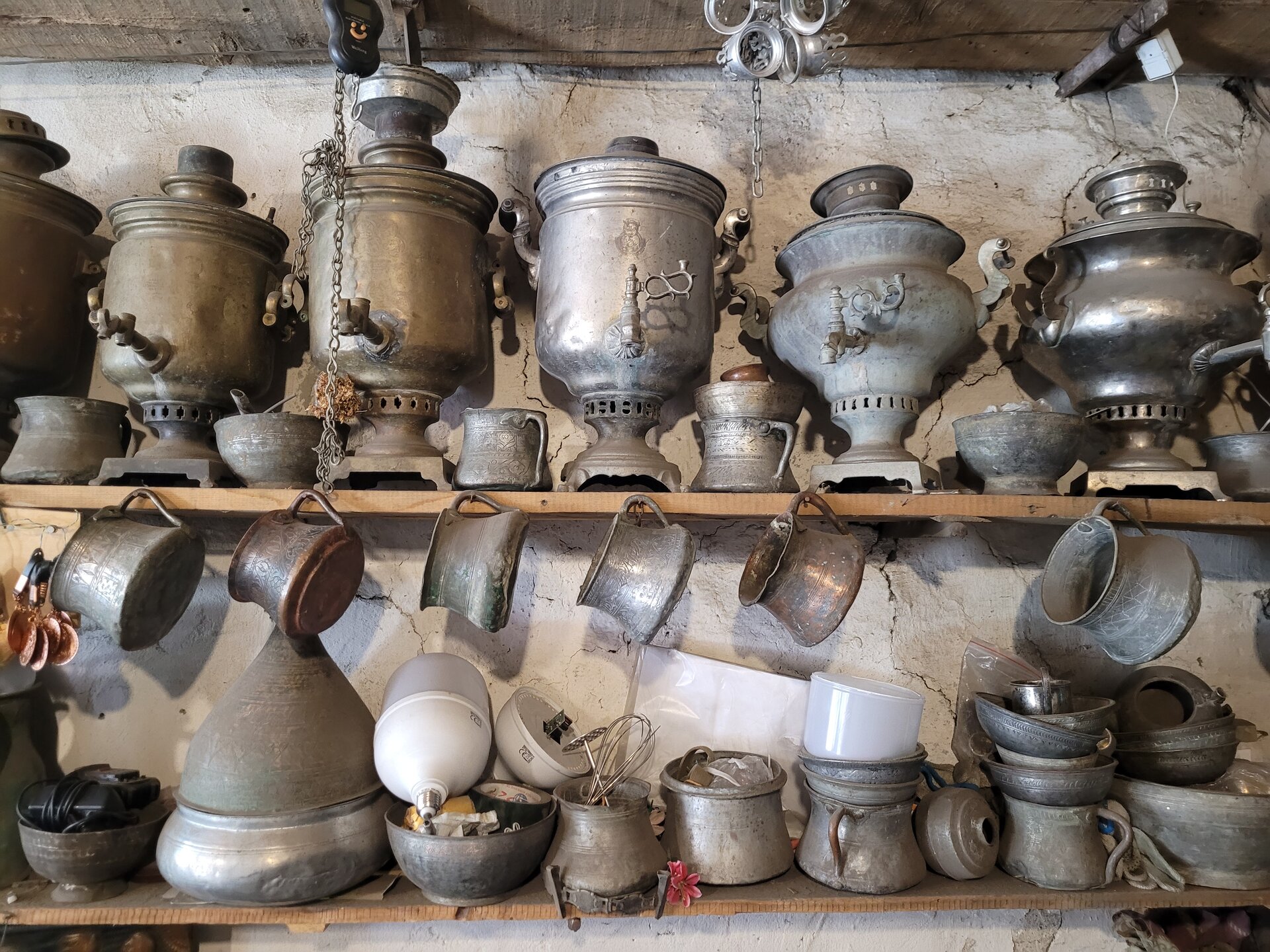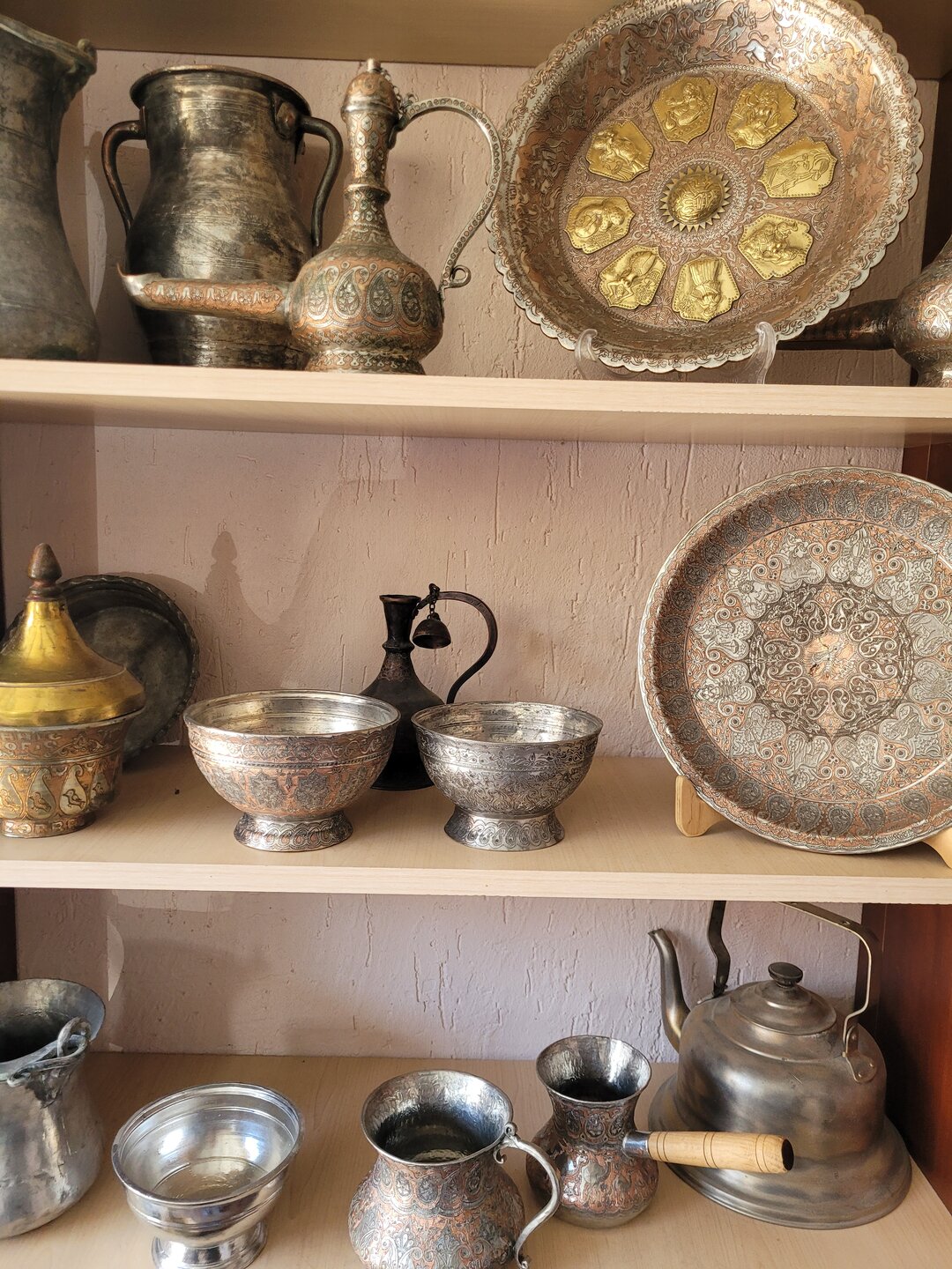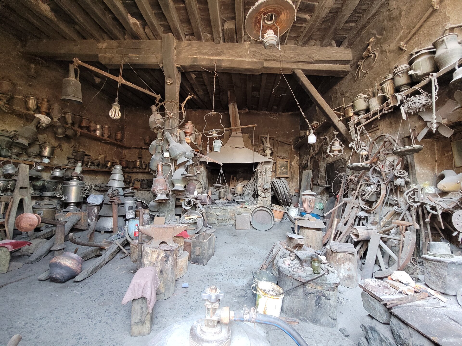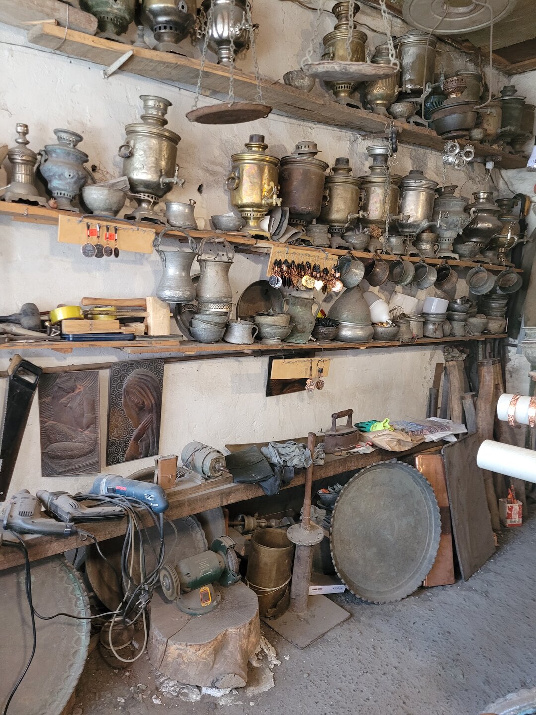 А ещё Лагич - это не только архитектура средневекового города, Лагич известен своими мастерами, которые изготавливают ковры, а также различные изделия из кожи, меди и других металлов. В поселке можно не только купить сувениры, но увидеть мастерские, где работают настоящие мастера, передающие свои навыки из поколения к поколению. Туристы могут свободно посещать мастерские на главной улице (Гусейнова). Таким образом, в Лагиче можно познакомиться с азербайджанской культурой и традициями, увидеть местных мастеров за работой. Медные мастерские, расположенные вдоль главной улицы Лагича превратились в визитную карточку поселка, благодаря чему Лагич стал значимым пунктом на туристической карте Азербайджана. И что меня ещё поразило то, что местные мастера совершенно спокойно относятся к тому, что их снимают на фото и видео. 20250730_140808.mp4 Глядя на этого мастера, я реально не понимала, как он это делает. Я понимала, что в этом и заключается мастерство, что это его работа, что это визитная карточка Лагича, что в этом и есть Лагич. Но вот так сидеть целый день и стучать молоточком...... Я глядя на это уже устала. В общем, одни слова восхищения. Это выглядело потрясающе. Не могу сказать, что медные изделия произвели на меня впечатления, меня больше поразило сколько времени, труда и сил вложено в каждое изделие. Как я уже выше писала, благодаря таланту местных мастеров Лагич называли городом сорока ремесел. Здесь жили и работали кожевники, ткачи, оружейники и ювелиры, но настоящую известность город получил благодаря мастерам медных дел. Десять лет назад искусство медного производства в Лагиче внесли в список ЮНЕСКО. И даже не верится, что столько времени прошло, но даже сейчас здесь до сих пор работают мастерские, которые больше века делают невероятные изделия и уникальные сувениры из дерева, кожи и меди.