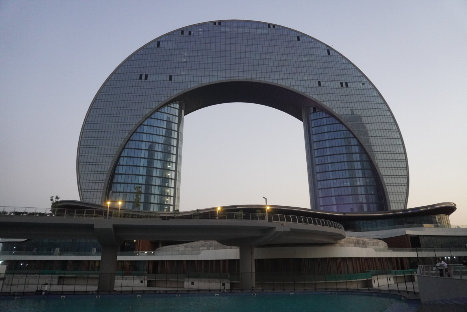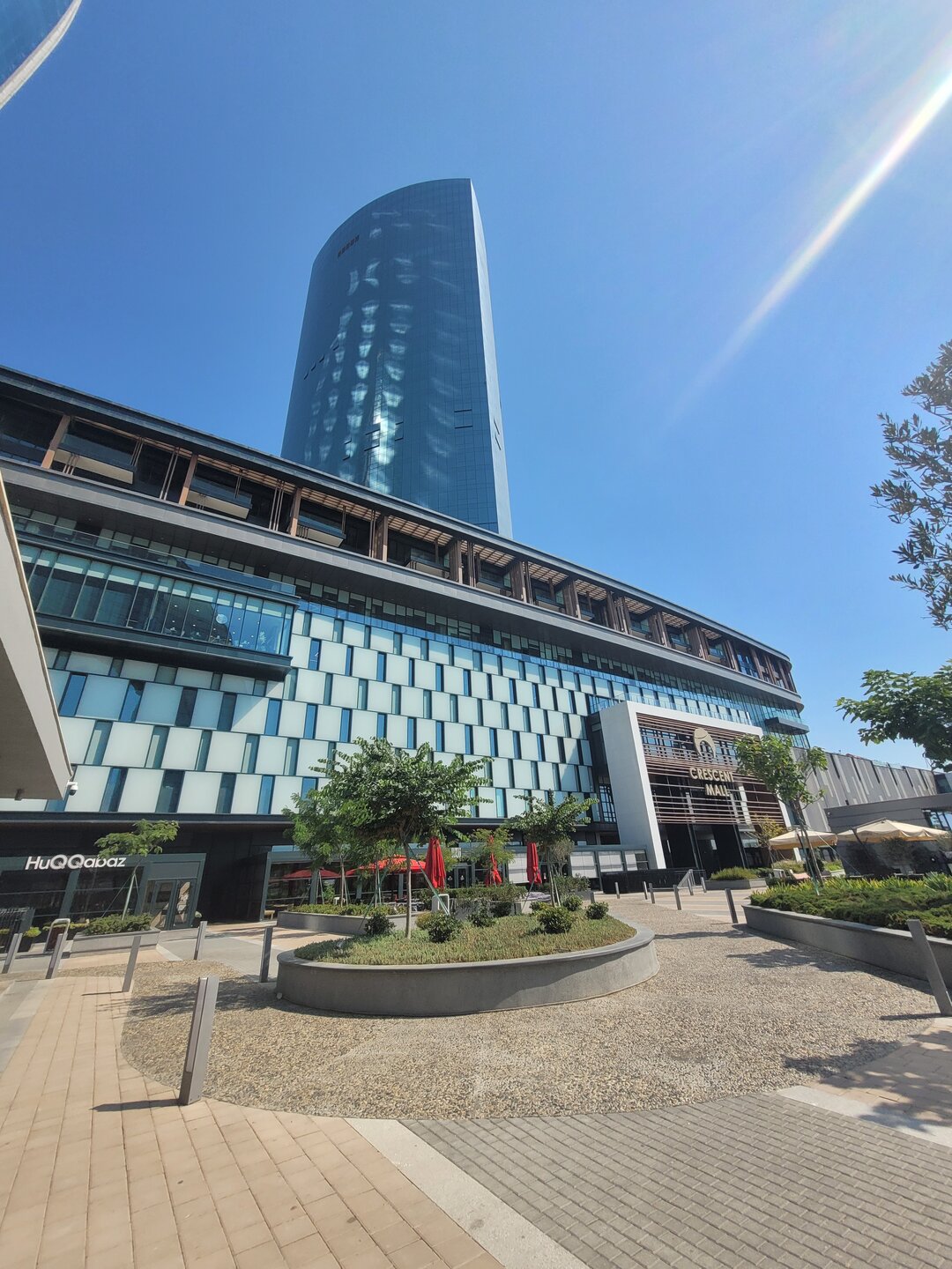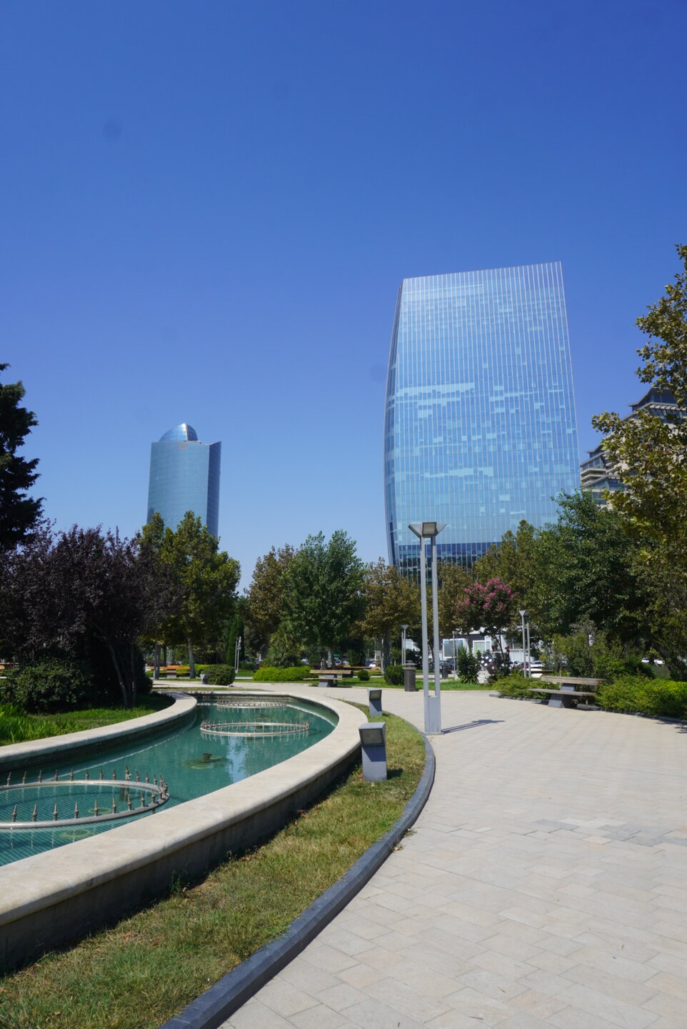 В этот день в наших была ещё одна достопримечательность. Когда я готовилась к поездке и просматривала, что нам необходимо будет посмотреть в Баку, как-то информация про эту достопримечательность не попадалась мне на глаза, о ней мы узнали от нашего гида-водителя на первой экскурсии. И вернувшись домой, чуть-чуть отдохнув, мы отправились в сторону Морского вокзала, рядом с которым расположен торговый центр "Кресент Молл". Как я сказала доче, сегодня нам хоть как надо туда, иначе мы уже никогда туда не попадём, завтра день заключительный и нам точно будет уже ни до чего. Так что идём. Благо и Морской вокзал и торговый центр были в пешей доступности. Хотя учитывая как мы ходили, от нас всё что можно было в пешей доступности, 20 минут идти или 50, но пешком доходили, значит в пешей доступности. Сколько раз мы видели это здание издалека, или чуть ближе, но вот мы совсем рядом с ним. Это здание гостиницы. Как я поняла проект ещё в ходе реализации, ни одного светящегося окошка замечено не было. Но нас волновал бассейн перед эти зданием. Именно здесь и проходят шоу-фонтанов, как когда-то я видела в Дубае. Честно сказать я не очень разобралась как часто эти шоу проходят. Нам сказали, что вроде начинаются с 21.00, но когда мы подходили на часах было что-то начало девятого, но представление уже шло. И вот что мы увидели. 20250730_200913.mp4 Честно сказать, я вообще не поняла, что это было. Это не шоу.....если сказать, что я была разочарована, это ничего не сказать. Меня когда-то фонтаны в Дубае не впечатлили, а тут даже слов не было, чтобы выразить своё разочарование. Ладно, подумали мы, не будем впадать в панику, подождём до 21.00, а там видно будет. И мы пошли в торговый центр. именно там решили провести время.