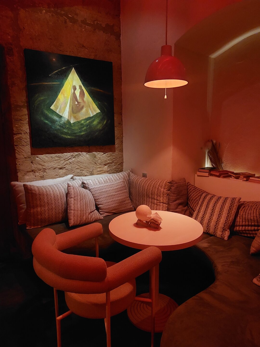 Ну и совсем в заключении нашего 8-го дня, по пути домой зашли в кофейню. Мне кажется я у себя в городе в такие места хожу реже, чем это было в Баку. Чуть ли не каждый день мы посещали кофейни, вот только во многих из них не всегда нас понимали. Но и это не беда. Язык жестов ещё никто не отменял. Когда мы уже сидели, бармен подошёл к нашему столику и поставил нам настольную лампу в виде шарика. Где- то такая лампа стояла, где-то нет. Мы и не обратили сначала внимания, но было приятно, когда вот так бармен позаботился о нас. Кофейня очень понравилась, довольно колоритное и атмосферное место. Прям по-домашнему тут было.