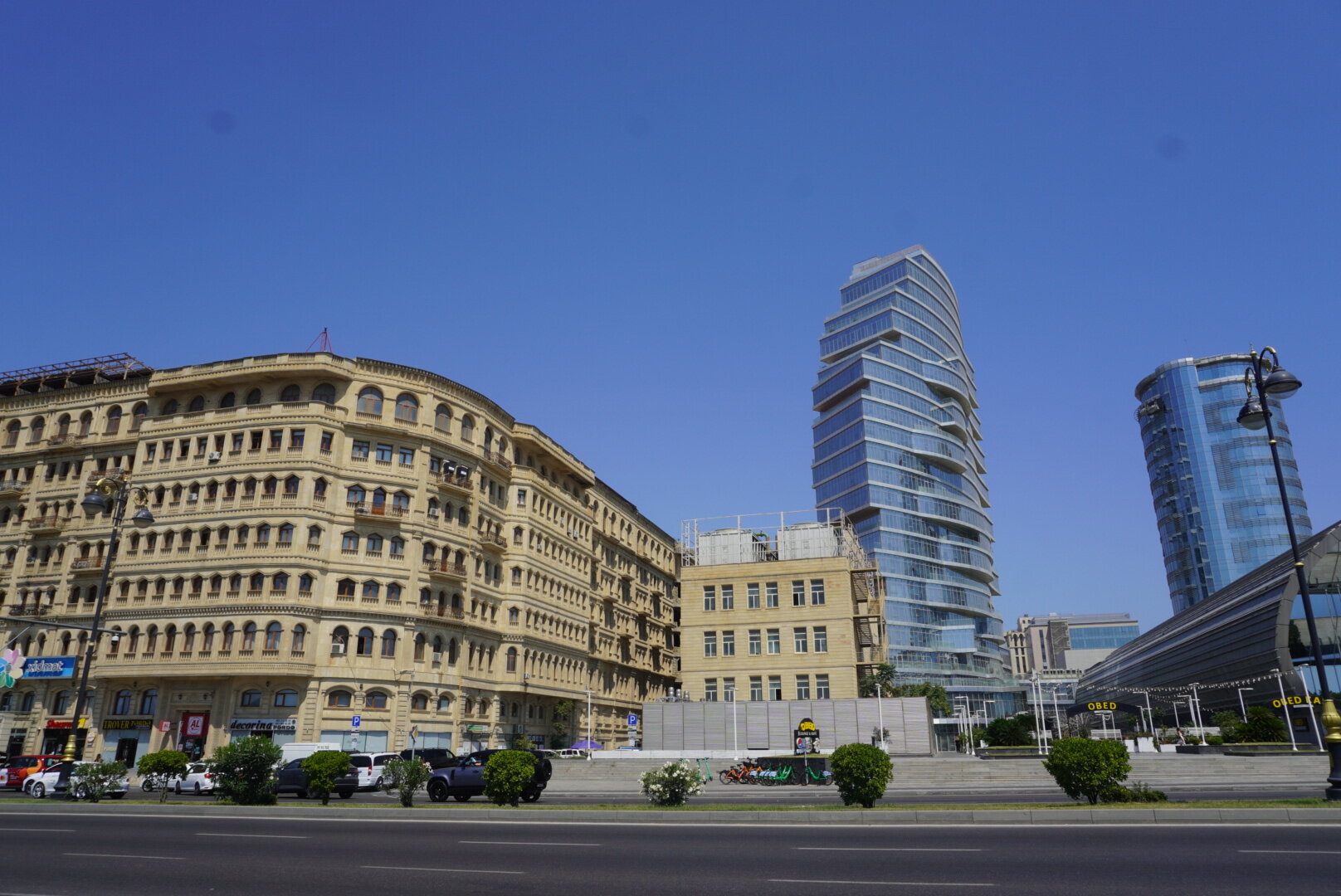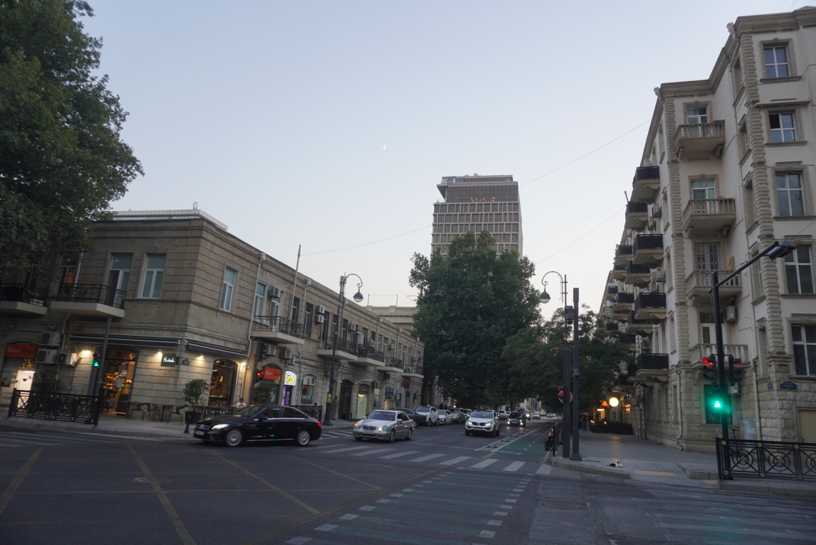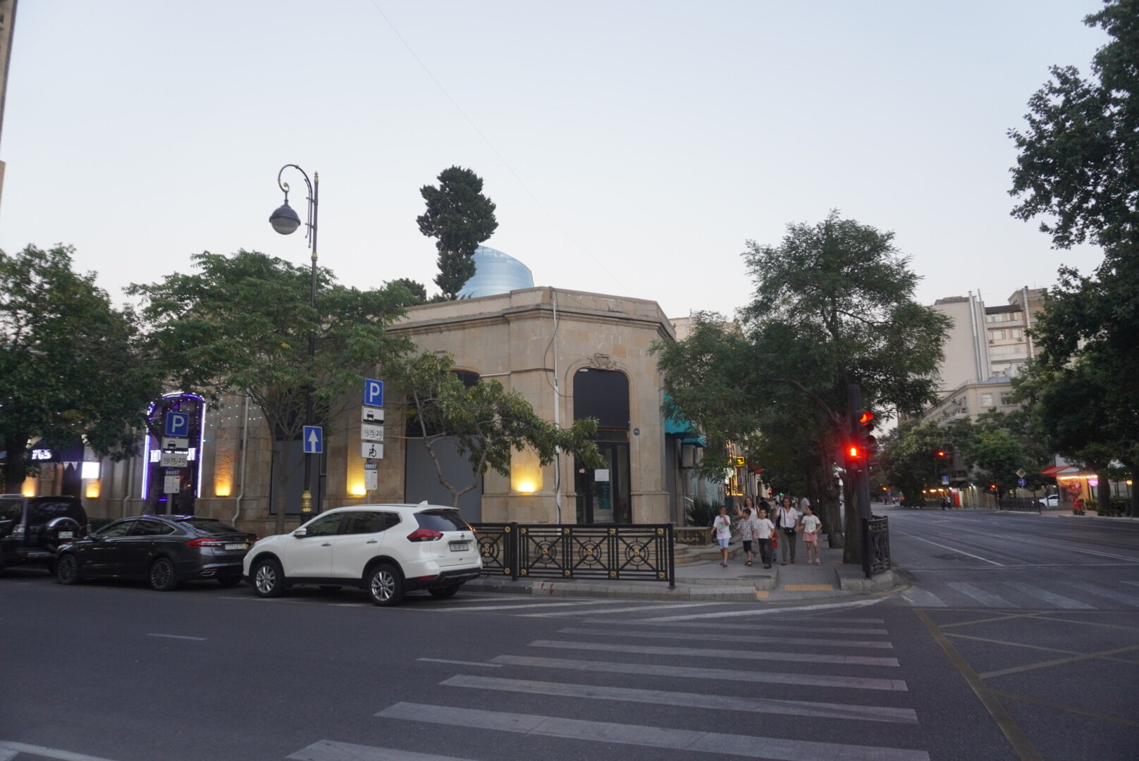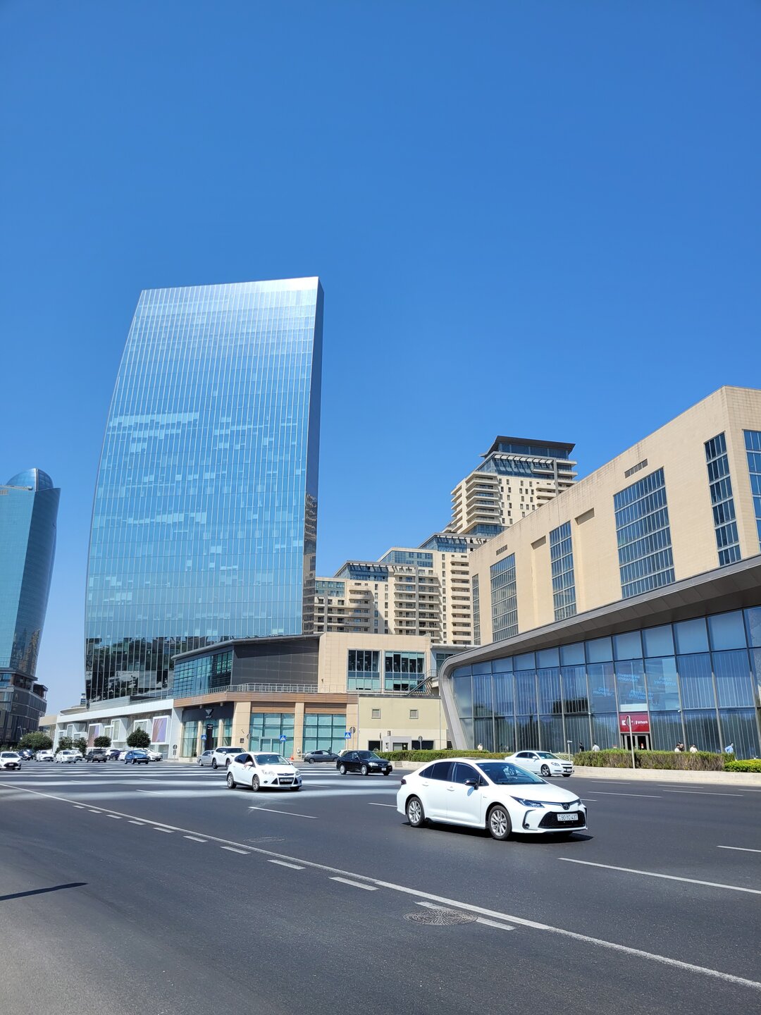 Наш заключительный 9-й день в Баку. Ну прям грустно было от этого. Как же здорово когда всё только начинается, и как же грустно когда всё заканчивается. Но как я себе говорю: "А почему заканчивается? Для того, чтобы начаться чему-то новому". И это что-то новое должно было начаться сразу через два дня после нашего прилёта из Баку. В первые такое было, чтобы мы сразу с одного корабля на другой. Передых был всего в два дня. И только следующая поездка грела мне душу. Это не то, что мы прилетим и на этом всё, а то что мы прилетим и почти сразу опять улетим. Впереди нас ждала Турция, а пока Баку. Тем более в этом городе у нас оставался ещё один пунктик нашей программы. И так, мы идём знакомиться ещё с одной достопримечательностью Баку, мы идём знакомиться с Белым городом. И я нисколько не преувеличиваю, именно идём, несмотря на то, что карта нам показывала, что идти больше часа. Но меня всегда меньше всего пугали прогулки пешком. Да и не увидели мы столько, если бы поехали на общественном транспорте или на такси. Можно было доехать до станции метро Шах Исмаил Хатай, а там почти рядом. Честно сказать, я не очень разобралась где граница Белого города. В любом случае мы изначально не рассматривали вариант транспорта, сразу решили, что пойдём пешком. Поэтому идём. Сначала дошли до Морского вокзала, до торгового центра "Кресент Молл", только вчера вечером мы были здесь, смотрели поющие фонтаны. А в то утро так тихо было здесь, на улице почти никого. Ну, если только машины.