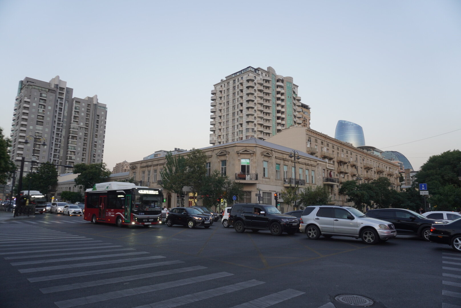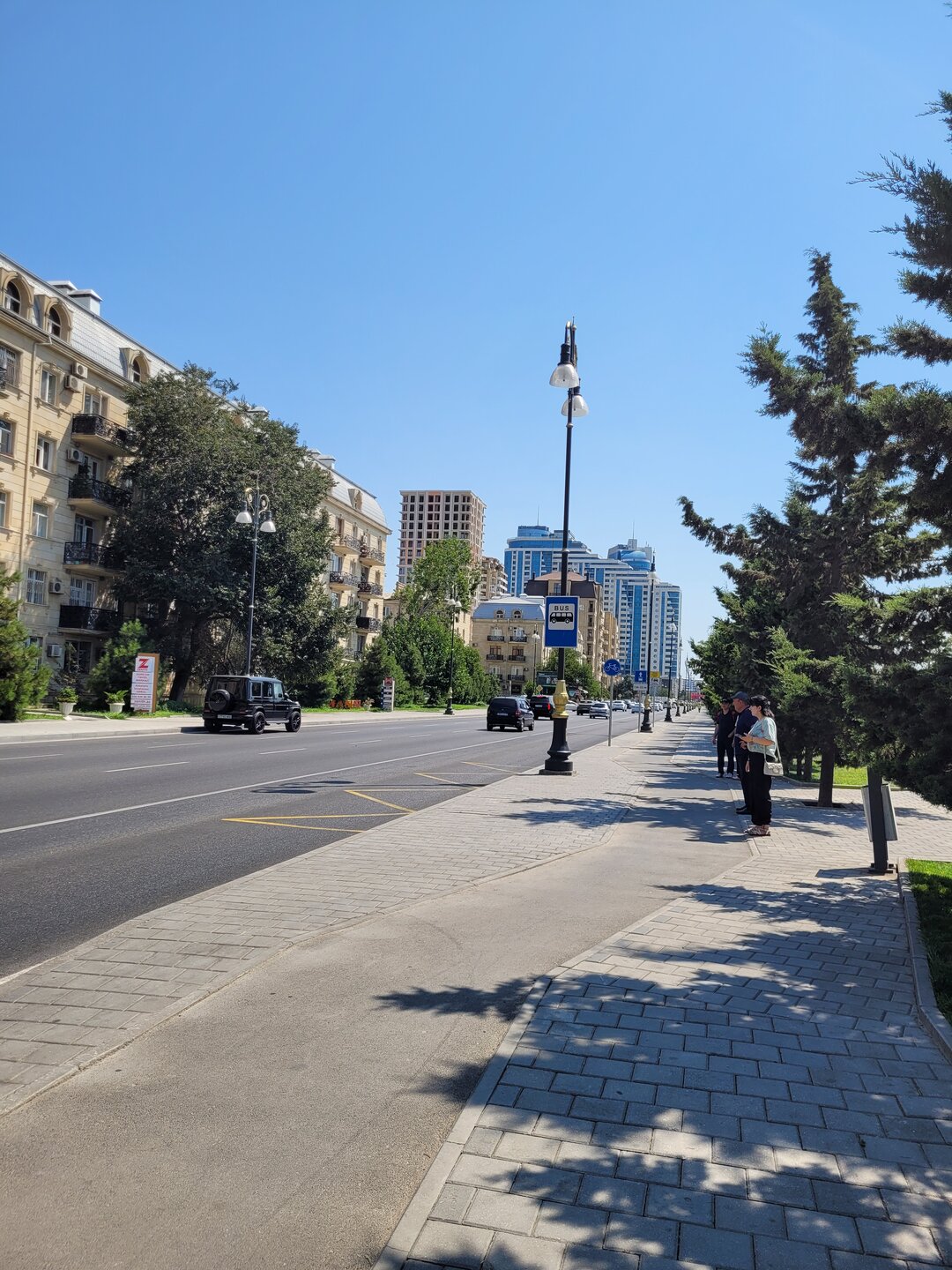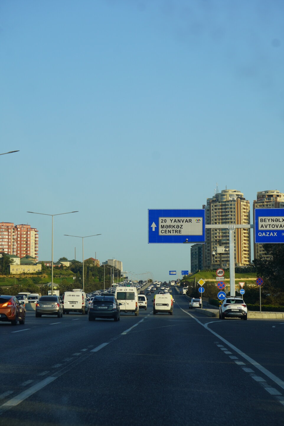 А вот то, что мы увидели дальше, это можно уже назвать классикой города Баку. Дорога очень оживлённая, но зачем идти до светофора, в Баку с этим всё-таки гораздо лучше, чем это было в Шардже, там прям беда была со светофорами, переходами, зебрами. Но нет, где приспичило, там люди и переходили дорогу, ну в крайнем случае перебегали. Ну или на худой конец руку выставляли вперёд, и не поверите, машины останавливались или хотя бы притормаживали. Как понимаю, у водителей не было выбора, не по людям же ехать. Хотя в той же Турции, даже пешеходные переходы водителей не останавливали. Как ехали, так и продолжали ехать. В данной ситуации этого молодого человека в жёлтом, ничего не остановило. Прям интересно было посмотреть на его квест. И таких ситуаций видели в Баку очень много. Ладно, когда сам бежит, но когда мы увидели как мужчина перебегал эту оживлённую дорогу с четырьмя детьми, перед близко идущим транспортом, вот тогда я аж дар речи потеряла. Ну что могу сказать, бесстрашные они что ли, ничего не бояться.