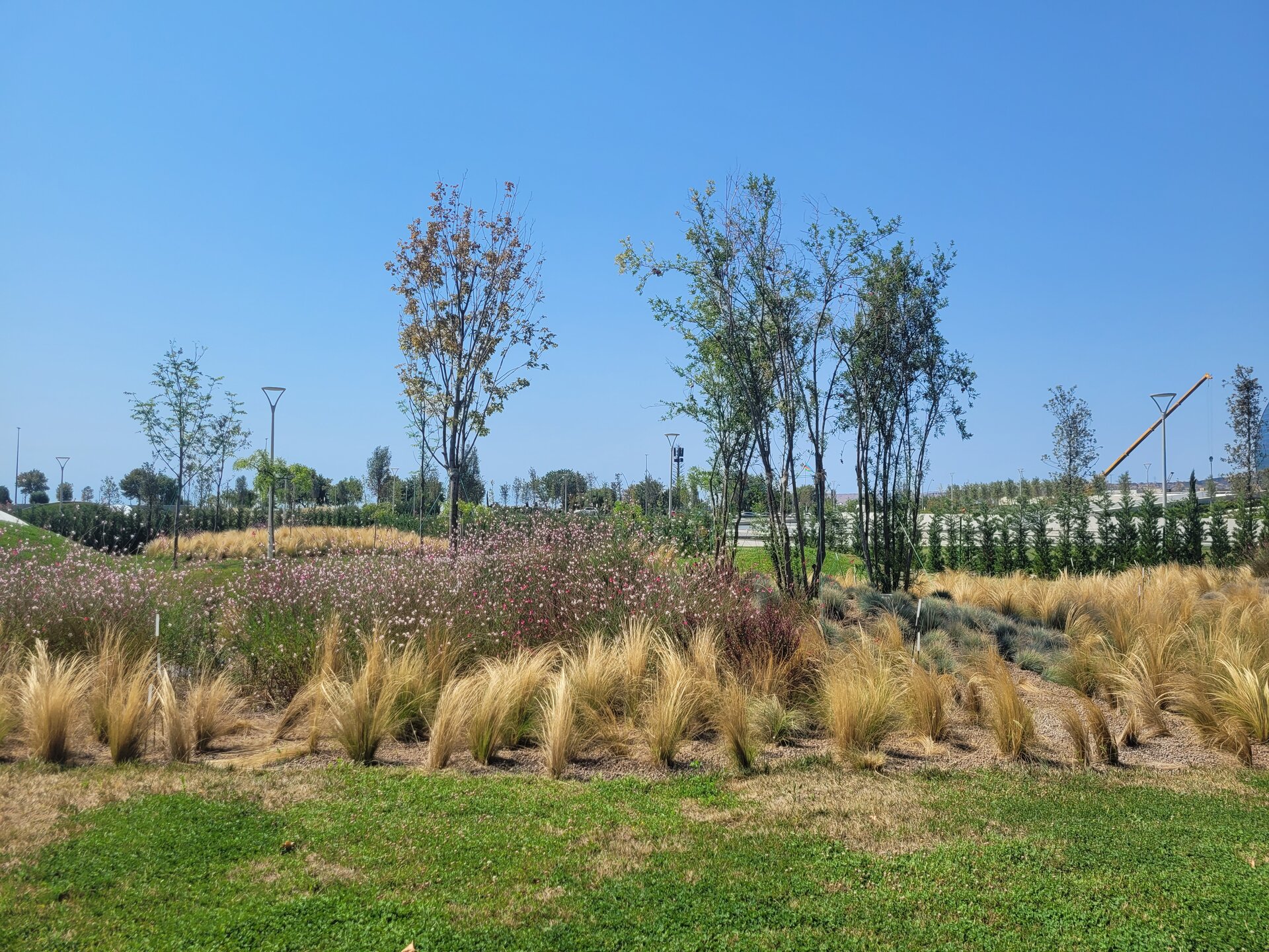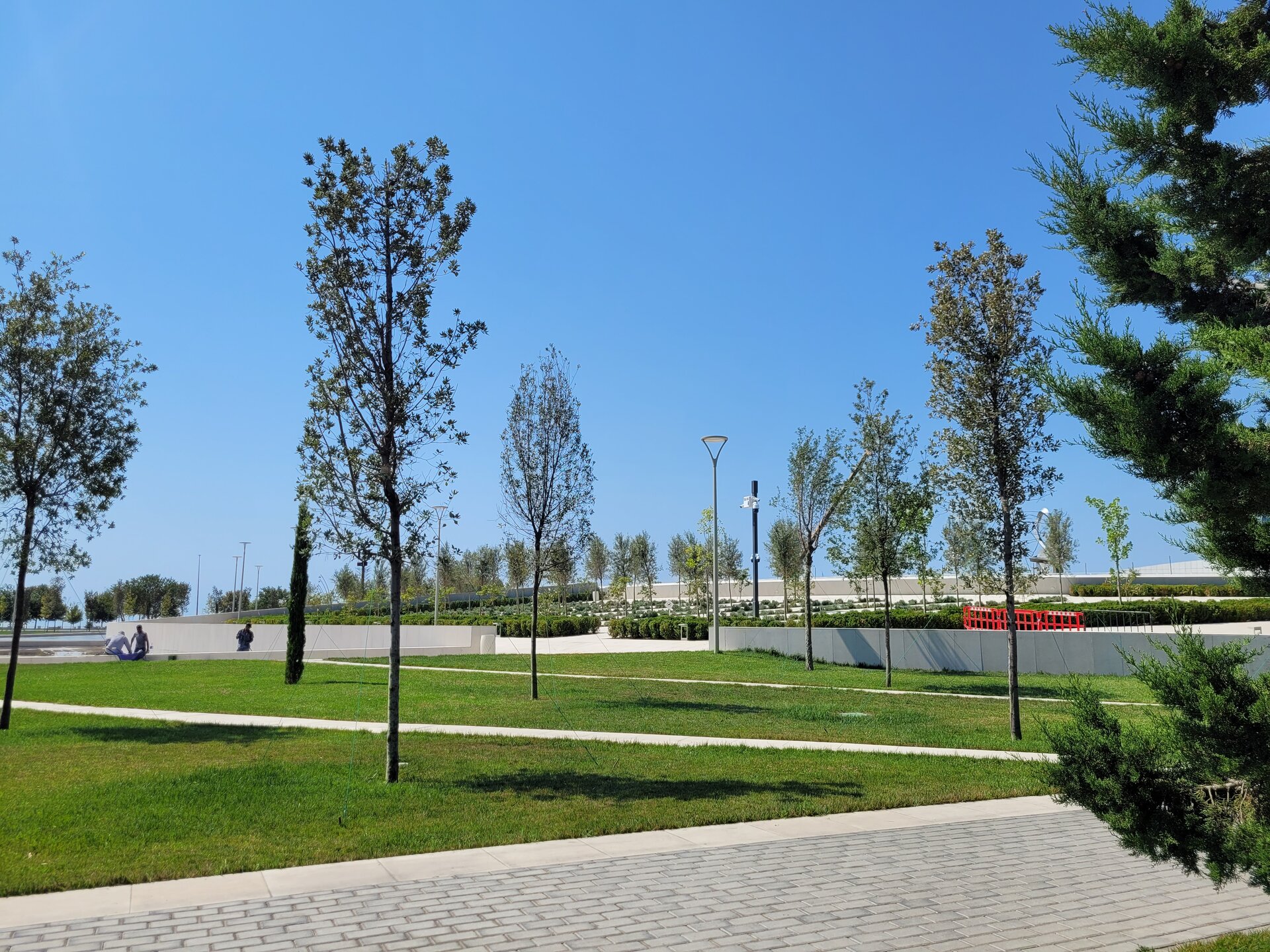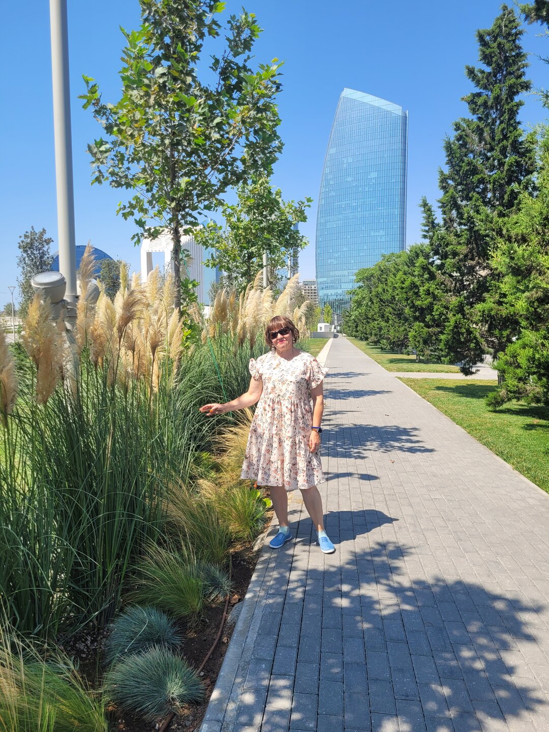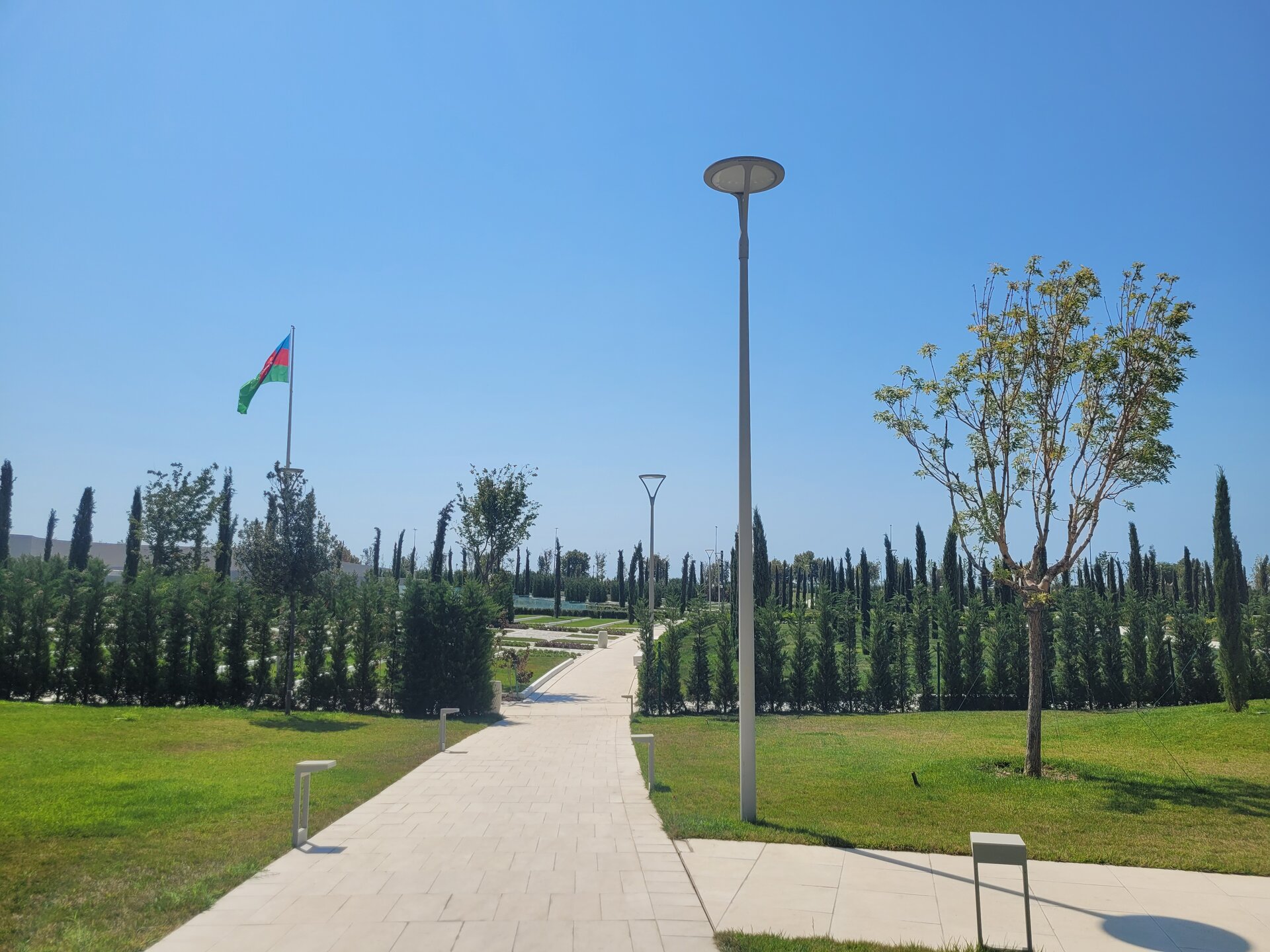 После парка порт Баку сразу начинается другой парк - парк Победы. Указом президента Азербайджана Ильхама Алиева от 3 декабря 2020 года в честь победы Азербайджана во Второй карабахской войне и с целью увековечивания памяти погибших, было принято решение о создании в городе Баку мемориального комплекса Отечественной войны и музея Победы. Открытие парка, с участием президента страны, состоялось 8 ноября 2024 года в день Победы. Территория Парка Победы, расположенного на проспекте 8 Ноября, занимает около 10 га. У входа в парк возведена Триумфальная арка, символизирующая собой начало пути к Победе в 44-дневной Отечественной войне. Высота арки 44 м, ширина 22 м, и состоит она из 44-х колонн. Фото из интернета. Парк оставил о себе приятные впечатления. Ухоженные клумбы, каскадные водопады и продуманная архитектура, создают атмосферу уважения и памяти. Парк не просто красив, он заставляет задуматься и прочувствовать историю. Определенно стоит посетить и лучше делать это в теплую и солнечную погоду. Зимой это место сурово, так как продувается со всех сторон. Ну, а летом нещадно палит солнышко, спрятаться от него просто негде. Это мы мимо проходили и сделали небольшую фотопаузу в этом месте. А так, если сюда целенаправленно приехать и погулять, то под палящим солнцем это будет не очень комфортно. Ну что, идём дальше? А дальше кстати был ещё один парк - парк военных трофеев. Его мы просто прошли.