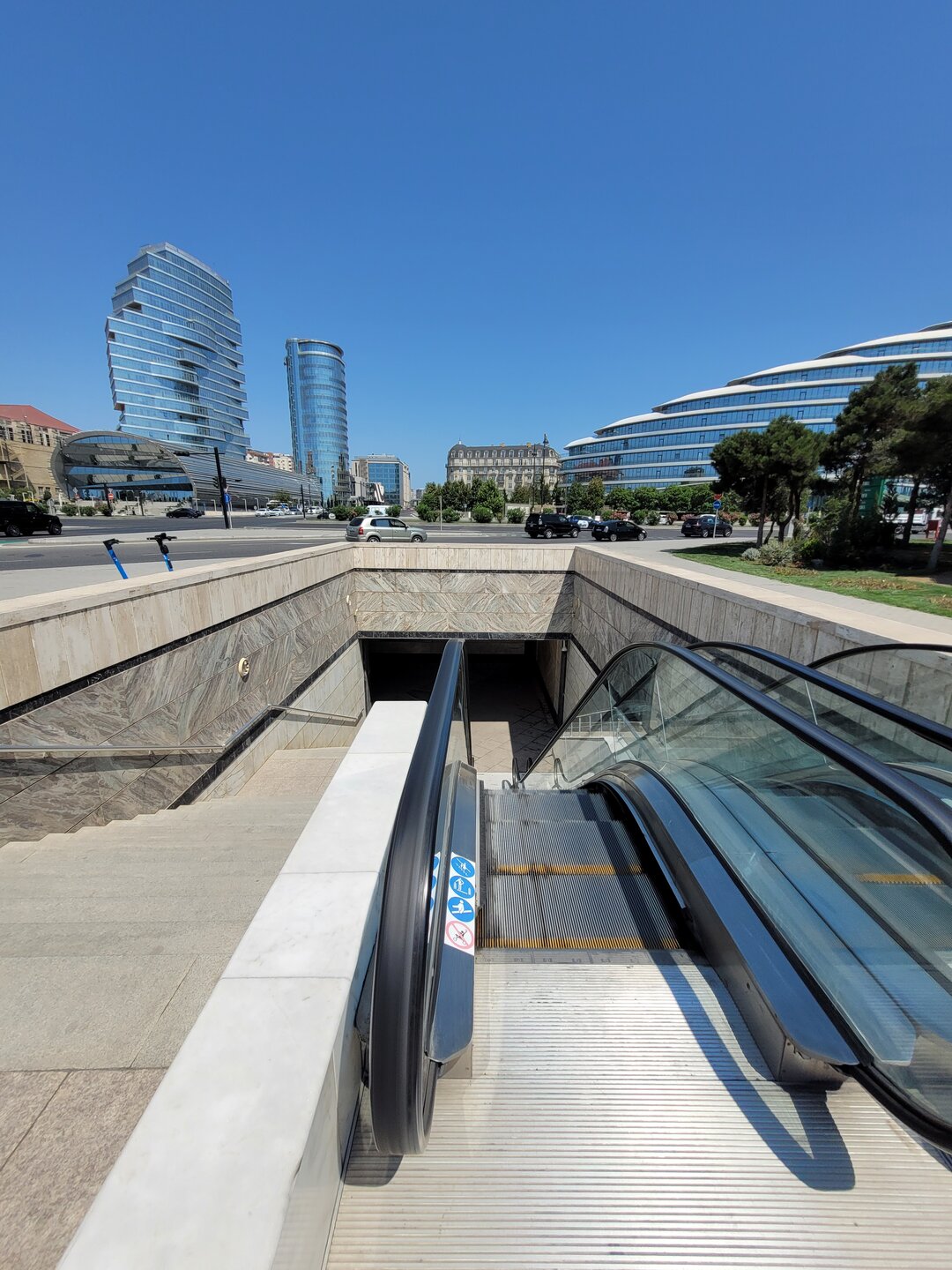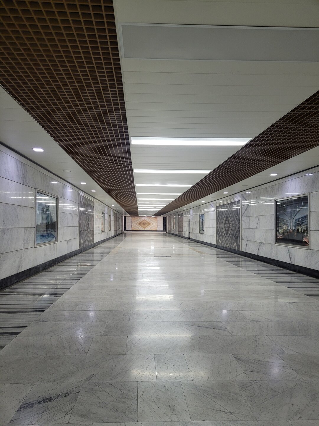 Сколько мы шли, столько и видели вокруг себя красоту. Вот правда, настолько всё вокруг впечатляло, настолько всё чисто, аккуратно, ухоженно, гулять было одно удовольствие, даже палящее солнышко нас не пугало. Мы его так редко у себя видим, хоть в Баку на него насмотреться. И как уже писала выше, вряд ли мы столько много увидели, если бы воспользовались общественным транспортом. Что понравилось, так это то, что спуститься в подземный переход можно и по лестнице, а также были эскалаторы. Вот этот эскалатор сыграл со мной "злую шутку". Я сначала даже внимания не обратила. Потом, когда мы уже были почти на месте, всё-таки решили уточнить, где Белый город? Людей никого, но всё-таки усмотрели трёх мужчин, к ним и подошли. Вот они и сказали мне, что у меня рука чёрная. Господи, где успела извазюкаться? Куда уже успела уже залезть? И я понимаю, что я вообще не понимаю, откуда у меня рука чёрная. Но благо есть добрые люди, эти мужчины и сказали: "Если ещё поедете на эскалаторе не держитесь за поручень". Всё дело оказалось в эскалаторе. Ну кто бы знал, что здесь поручни такие. Но благо с собой всегда есть влажные салфетки, проблема быстро была решена. А это и есть тот самый подземный переход в который мы спустились. Вроде уже пора было перестать чему-то удивляться, а я всё чему-то удивлялась, как например этому подземному переходу. Это не подземный переход - это произведение искусств.
