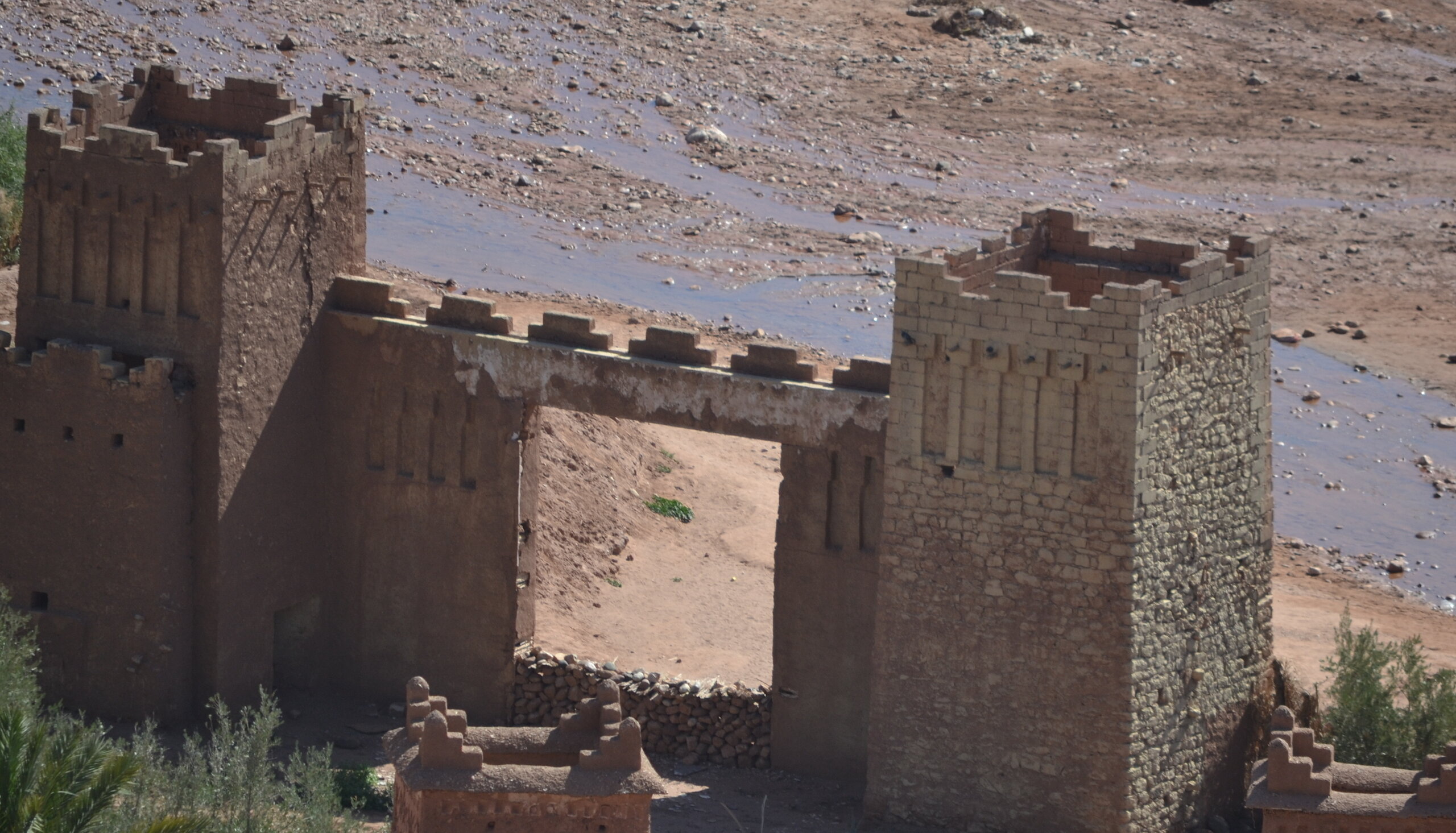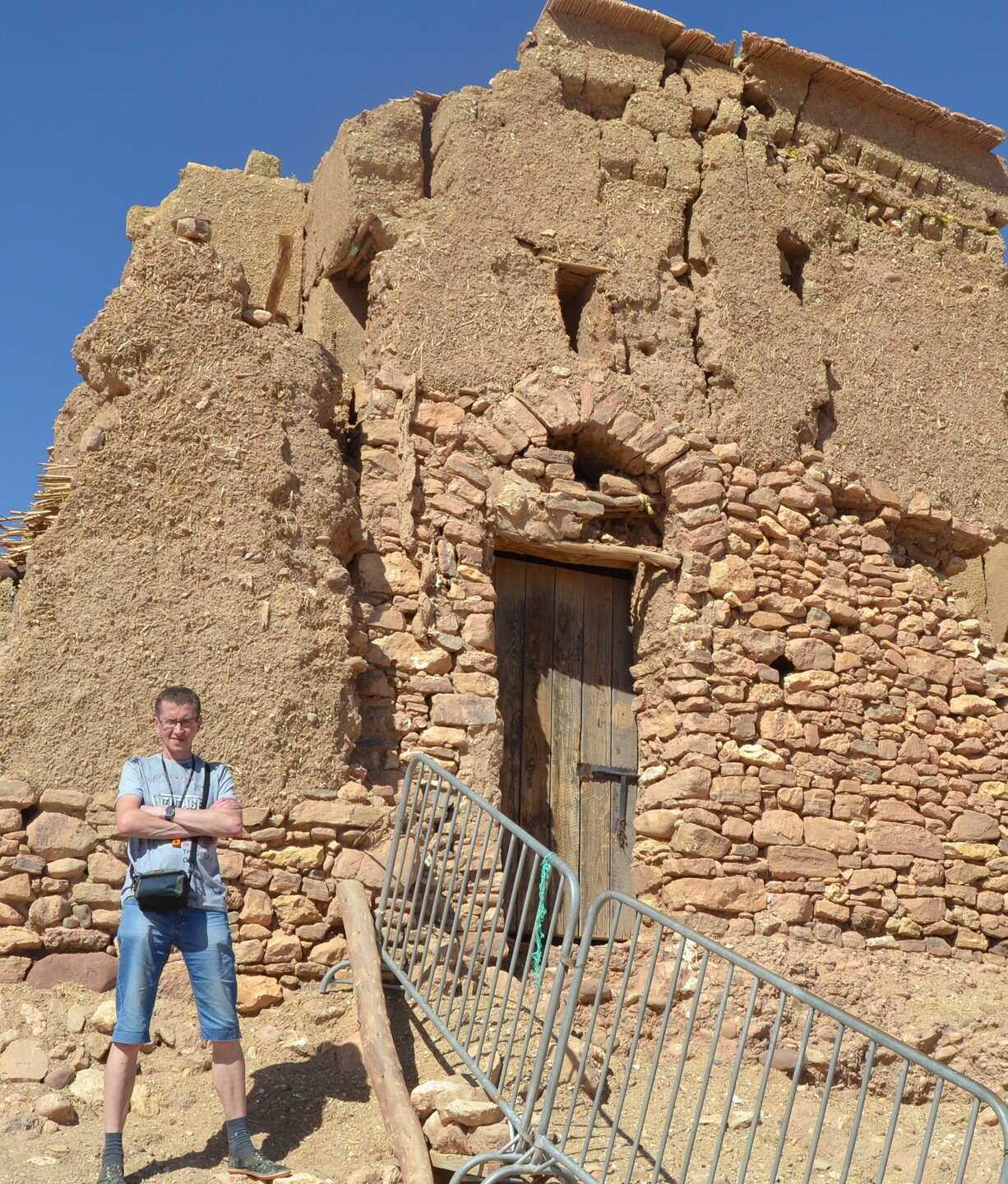 Приехали! Айт-Бен-Хадду - это ксар (укреплённый город) , он расположен на берегу реки, на склоне скалистого холма. Судя по первой же табличке – указателю стало понятно, что мы совсем рядом от цели нашего путешествия. Всего-то 140 метров пройти. Но прошли мы их совсем не быстро. Нет, ничто не мешало прошагать быстрым шагом, но нам ещё предстояло спуститься к реке, перейти через неё… Но виды такие, что быстро просто никак! Надо было заснять! Потом у группы появился местный гид Абдул, под его рассказ мы спустились на берег. И опять фотосессия! Ну, как не фотографировать Айт-Бен-Хадду, этот памятник Всемирного наследия ЮНЕСКО (1987 год), представший перед нами во всей его красно- коричневой красе. И себя на его фоне как не запечатлеть!