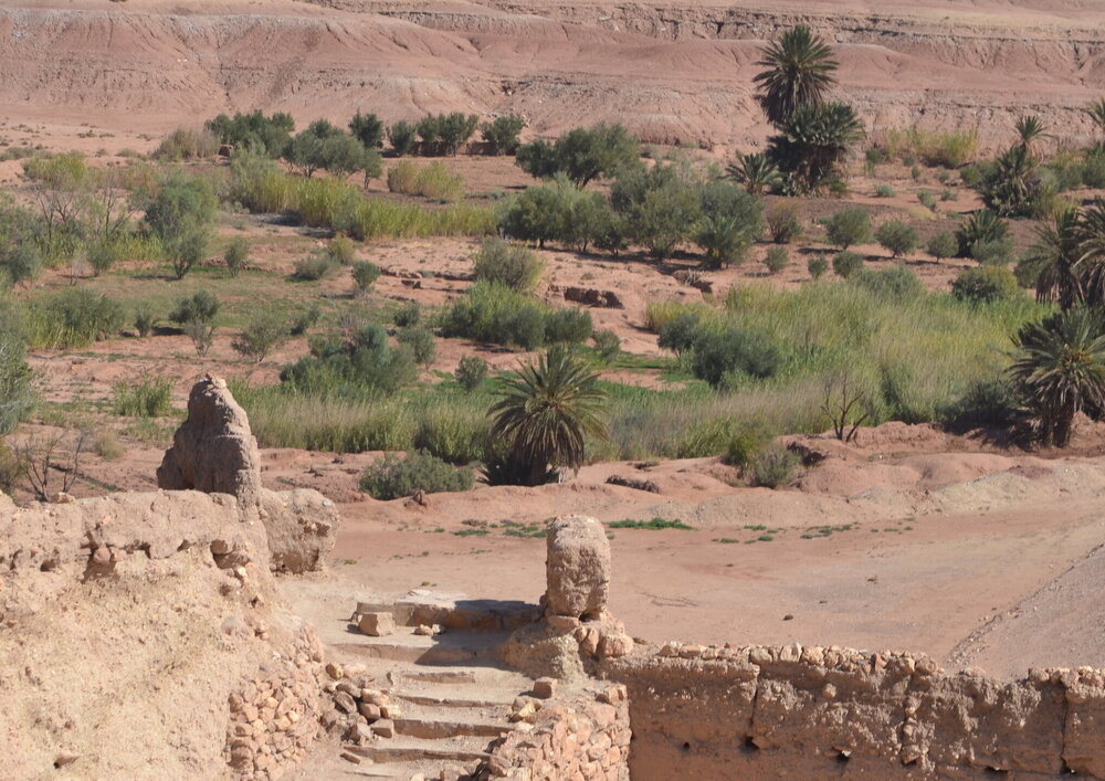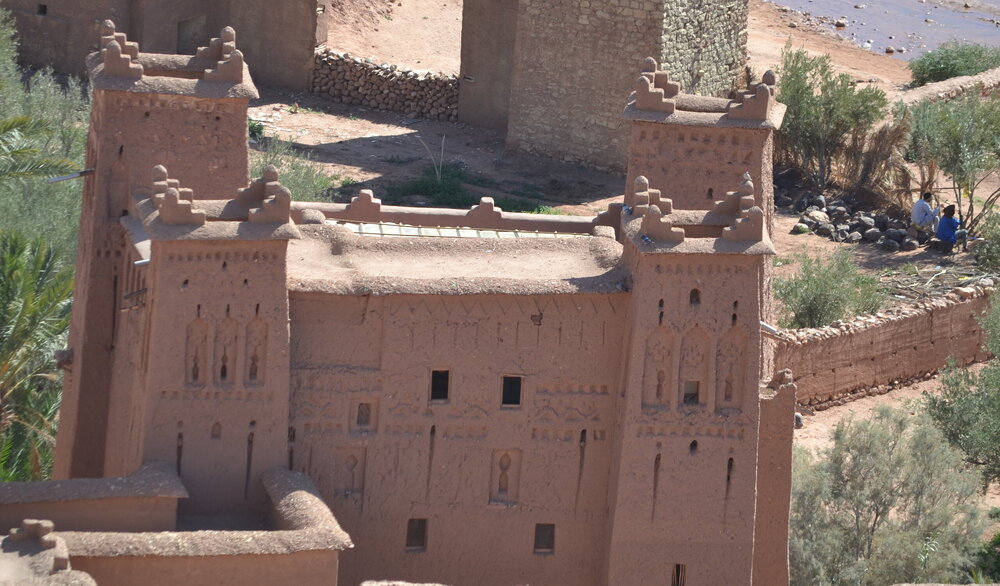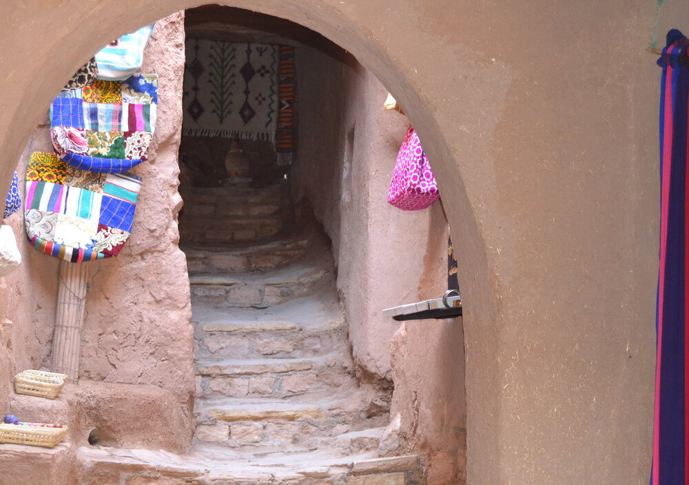 Ксар Айт-Бен-Хадду находится под охраной ЮНЕСКО как памятник Всемирного наследия. Ксар является примером традиционной марокканской глинобитной архитектуры. Все жилища ксара построены из красно-коричневой глины. Точная дата постройки Айт-Бен-Хадду неизвестна, но считается, что он возник в 11 веке. А вот тот образ, который мы увидим сейчас, это 17 век. Нам и предстоит с ним познакомиться, пройти по узким горизонтальным улицам, которые как бы террасами располагаются на склоне холма. А подняться с одной улицы на другую ещё подняться надо. Ступенек много, считать не будем, а вверх, вверх… Всё выше. всё выше и выше нас лестницы вдоль зданий ведут.. Если честно, подъёмчики эти совсем не из лёгких. Но… ! Где наша не пропадала! Такие ли горы и башни мы штурмовали! Пошагали… Ныряем в лабиринт улиц! А виды со стен уже такие…!