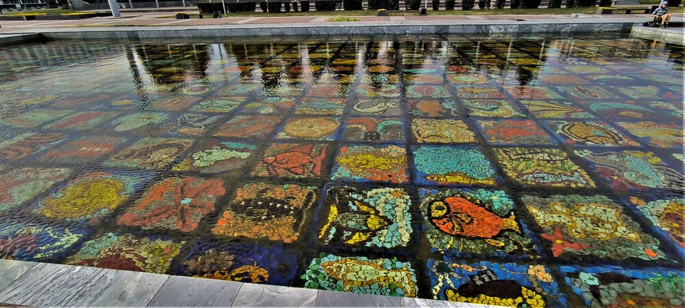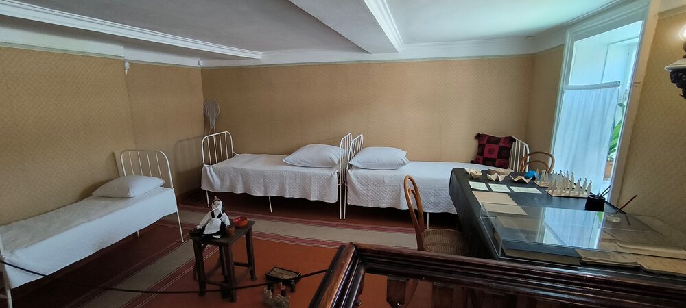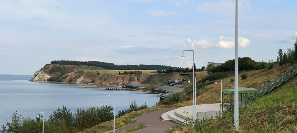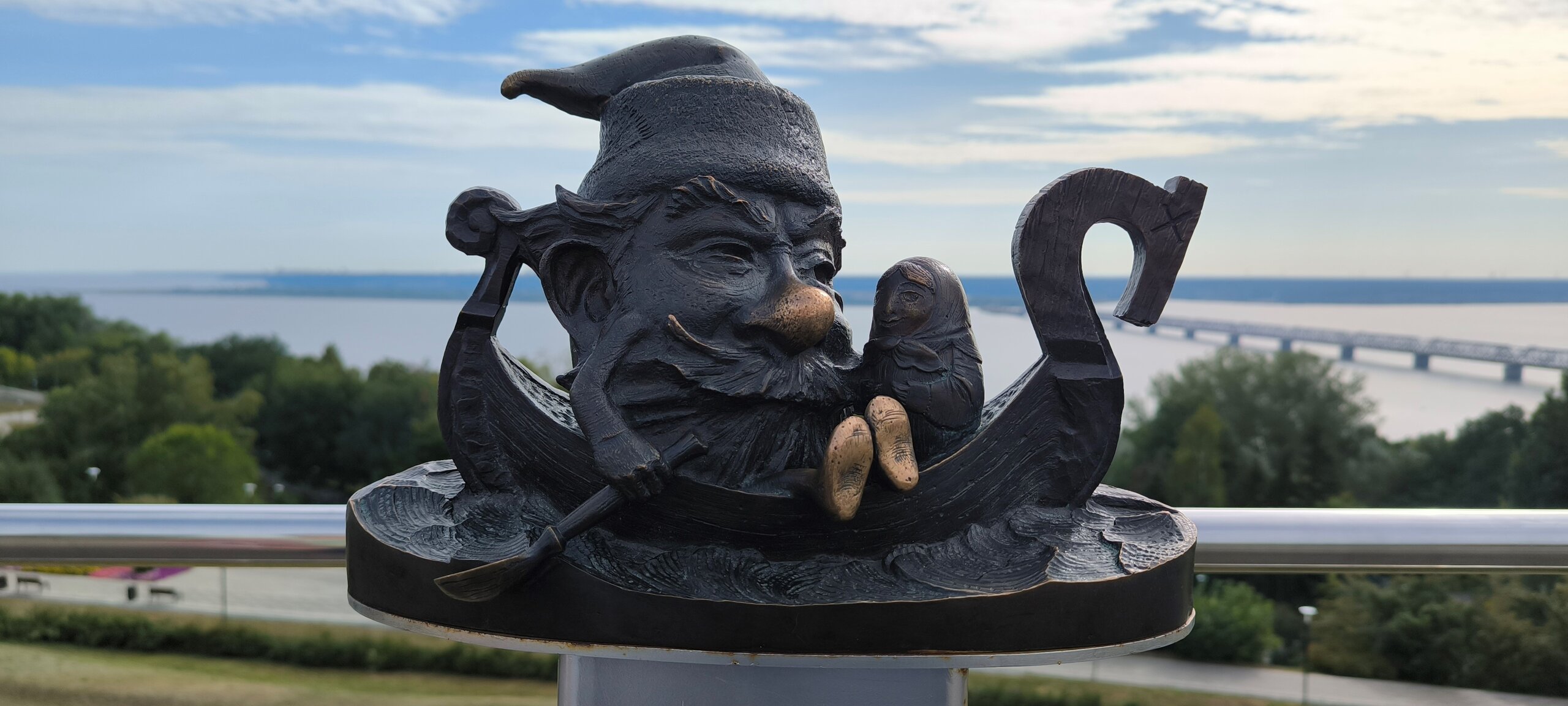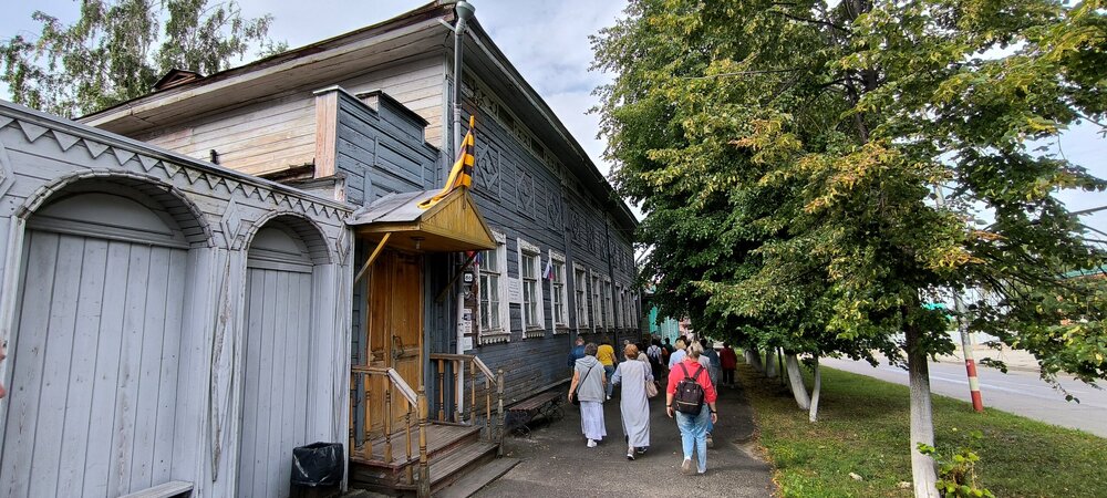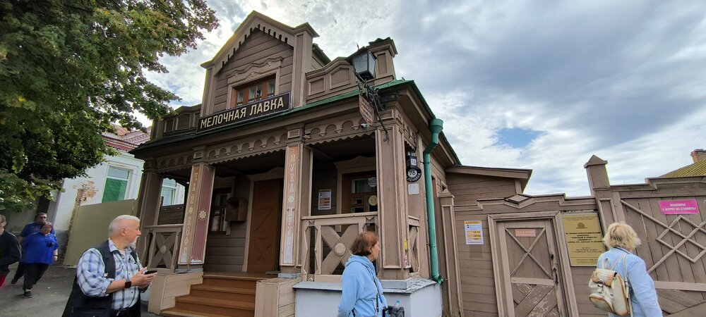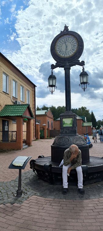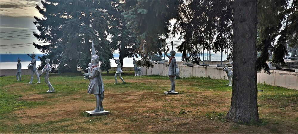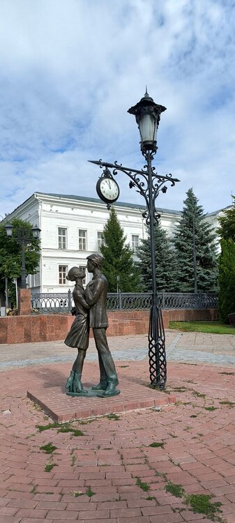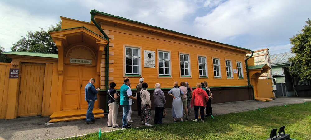 День десятый. 16.08.2025. Ульяновск – Тетюши – Казань Забыла написать. Посещение «Мордовского подворья» мероприятие платное, стоимость 750 рублей. А в сегодняшний день, кроме обеда в Тетюшах, допиков было два: экскурсия в дом-музей Ленина за 500 рублей и посещение парка «Долгая поляна» и усадьбы Молоствовых за 250. Выезд из гостиницы был назначен на 09.00 и сегодня чемоданы мы делили по разным сторонам автобуса, в зависимости от ЖД вокзала в Казани. Погрузились и направляемся на краткий осмотр Ульяновска. Я не понимаю, почему нельзя было сделать нормальную обзорку по городу. Было воскресенье. Ни машин, ни людей с утра на улицах не было. А так, при таком кратком осмотре и представление об Ульяновске складывается очень краткое. Понятно, что бывшим советским школьникам, коим я являюсь, со школы известно, что Ульяновск раньше назывался Симбирском, в 1870 году здесь родился вождь мирового пролетариата В.И.Ульянов (Ленин) и после его смерти в 1924 город переименовали в Ульяновск. И совершенно логично, что в Ульяновске буквально на каждом шагу встречается упоминание о В.Ленине. Что я узнала еще нового об Ульяновске? Что здесь есть памятник букве «Ё» и Ульяновск – родина колобков. Гуляли мы минут сорок в целом, и час была экскурсия в музее Ленина. Гостиница в центре, у площади Ленина, поэтому пешком идем на площадь. Красивый мозаичный бассейн с названием «Морское дно». Подходим к бульвару Новый Венец. Бульвар проходит по самому высокому месту города. Здесь прекрасные виды на Волгу. Где-то за Волгой в дымке виден остальной Ульяновск, поскольку город расположен на обоих берегах реки. Берега соединены двумя мостами – Императорским и Президентским. Императорский мост на момент открытия в 1916 году носил название «Императорский Его величества Николая II», длина моста два километра и он долгое время был единственным мостом через Волгу в Ульяновске, при чем не только автомобильным, но и железнодорожным. Но в 2009 году, практически рядом с Императорским появился мост Президентский, который строился долгих 23 года. Мост слегка виден на этом фото А на склоне горы под бульваром огромный парк Дружбы народов. Тут нам встретился первый из колобков – колобок в лодке. Ульяновск решил поддержать модный нынче тренд на миниатюрные городские скульптуры и в прошлом году в разных местах города появились фигурки колобков. Каждый из них это как маленький гид, рассказывающий об одном из знаменитых литераторов Симбирска. Но для того чтобы что-то узнать нужно просканировать QR-код. Колобок в лодке рассказывает о литераторе – сказочнике, уроженце Симбирска Д.Садовникове. Он автор стихов песни «Из-за острова на стрежень…». Мы поворачиваем налево. Наша цель – Ленинский мемориал. На территории, прилегающей к мемориалу, коллекция гипсовых скульптур. Это Аллея пионеров. На пионерлагерь похоже. Оттуда скульптуры видимо. Возле мемориала идет ремонт. Наталья показывает нам дом, в котором родился В.Ульянов. Он где-то в центре мемориала и близко к нему не подойти. Зато рядом мемориальный музей «Квартира-музей семьи Ульяновых». В этом доме прошли первые четыре года детства В.Ульянова. Разворачиваемся обратно на бульвар и идем вдоль него. На фонтане в сквере еще один колобок «Ульяновск – город ЮНЕСКО». Оказывается, еще в 2015 году Ульяновск вошел в список креативных городов ЮНЕСКО по направлению «