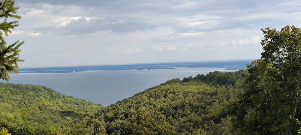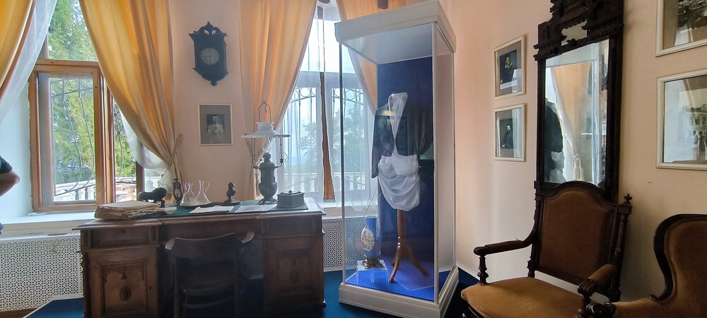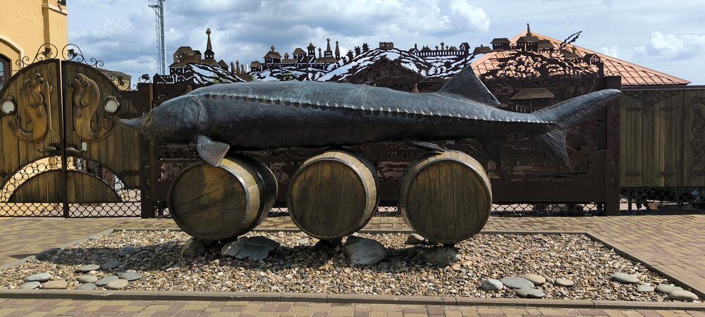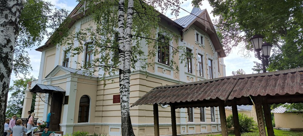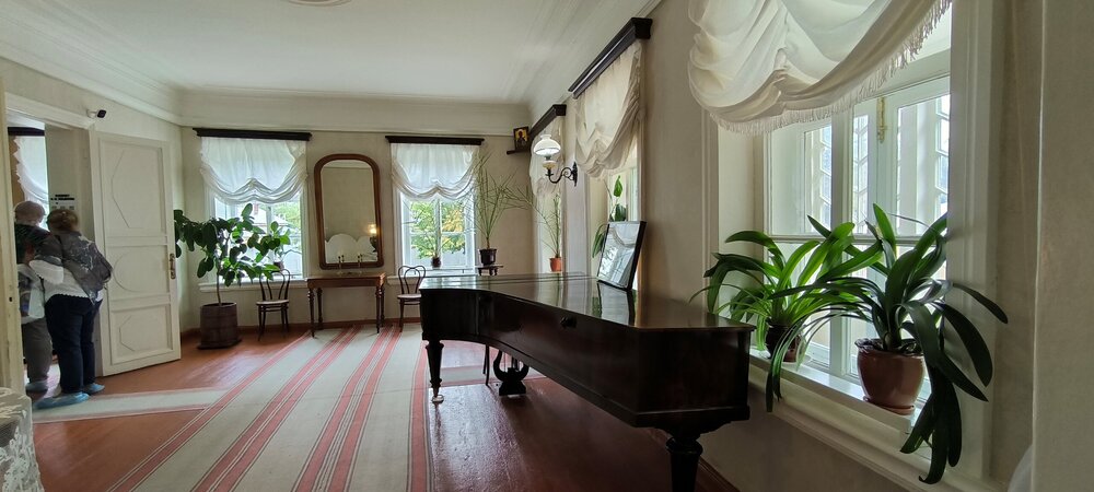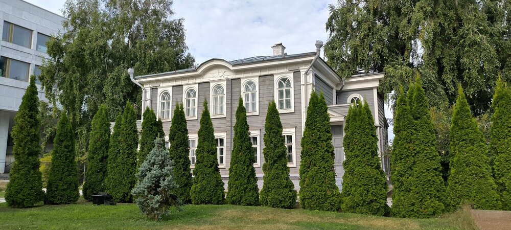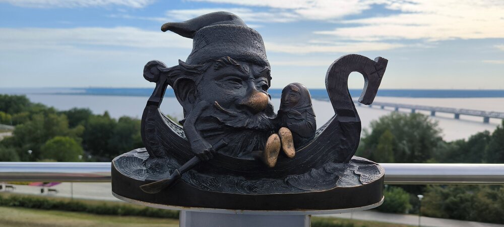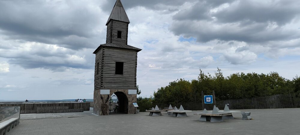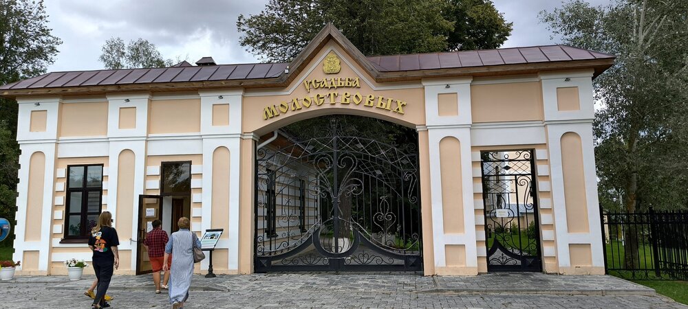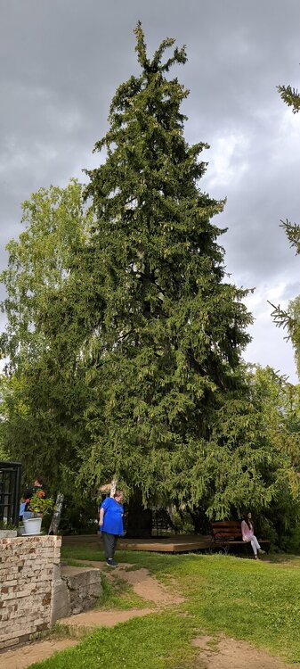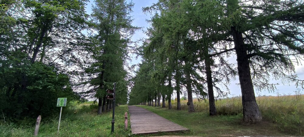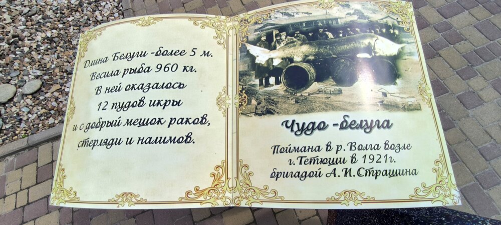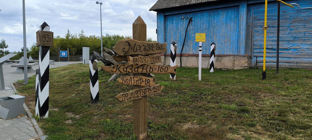 Через полтора часа мы уже в Тетюшах, снова на территории Татарстана. Городок маленький, нас высаживают музея рыболовства и отпускают на час в свободное плавание. У музея скульптура огромной белуги. Мы было сунулись на территорию музея, но нас оттуда быстро попросили. Напротив музея – Ленинский парк. Для города в 10 тысяч жителей вполне себе ничего благоустроен. Сегодня воскресенье, но местных жителей на улице не было. Из парка по улице Ленина идем к смотровой площадке. На перекрестке с улицей Горького скульптурная композиция «Городничий у часов уездного города». Рядом с фигурой городничего лапти. В лаптях надо было постоять, чтобы не знать нужды. Немного истории По описи городских поселений Казанской губернии от 1885 года среди многочисленных ремесел и промыслов наибольшее количество тетюшан промышляло лапотным промыслом. Несмотря на то, что Петр I сказал: «Нет ремесла мудренее лапотного» в Тетюшском уезде в каждом доме умели плести лапти. Целая слобода города называлась Лаптевка, а позднее появилась и деревня с названием Лаптевка. Бурлаки, доходя до Тетюш, останавливались, чтобы именно здесь купить крепкие тетюшские лапти. Тетюшский городничий тоже любил похвастаться лаптями местных мастеров. Всех заезжих он одаривал парой лапоточков. С тех стали говорить, что в Тетюшах и сам городничий лапти плетет. Идем дальше. Проходим краеведческий музей. Улица Ленина огибает Троицкий собор. Собор старинный 1771 года постройки! Первое каменное здание в городе. В 1930-е собор был закрыт, частично разрушен и восстановлен спустя 60 лет. Выходим на смотровую площадку. От Волги к площадке поднимается лестница из 320 ступенек. В 2016 году от пристани я поднялась на эту площадку. Здесь расположена Сторожевая башня. Это точная копия сторожевых башен, находившихся в 16 веке на углах Тетюшской крепости. Несколько минут проводим на площадке и возвращаемся к собору. Едем на обед. Не знаю было ли в Тетюшах место получше, где могли покормить группу. Ну тут была какая-то забегаловка. Места за столом были плечом к плечу. Теснота короче. Даже не помню, чем накормили. Уезжаем из Тетюшей в усадебный комплекс «Долгая поляна», что в 13 км от города. В прошлом, имение принадлежало древнему роду графов Молоствовых. В советские годы в усадьбе в разное время располагались дом творчества, дом престарелых, пионерский лагерь. В 2006 году «Долгая поляна» была признана заповедником и отреставрирована. Мы только заплатили за вход на территорию. Наталья ориентирует нас по объектам и расходимся кто-куда. Самое красивое здесь – это вид на Волгу. Если приглядеться, на противоположной стороне можно разглядеть купола Болгара. Рядом с домом памятник живой природы всероссийского значения – горно-алтайская ель. Эта старейшая ель в Татарстане. Она была посажена еще дедом последнего владельца усадьбы В. Молоствова. А сам последний владелец усадьбы высадил в честь своей жены лиственничную аллею, которая сейчас также является памятником природы. Сегодня в главном доме Молоствовых работает музей дворянского быта. Зашла посмотреть. Музей – это три комнаты на втором этаже. Первый этаж больше на заброшенку похож. Прошлась по территории. На территории усадьбы находится еще захоронение последних владельцев усадьбы, но, по-моему, никто из нашей группы туда не пошел. Обойдя все по периметру, я вышла с
