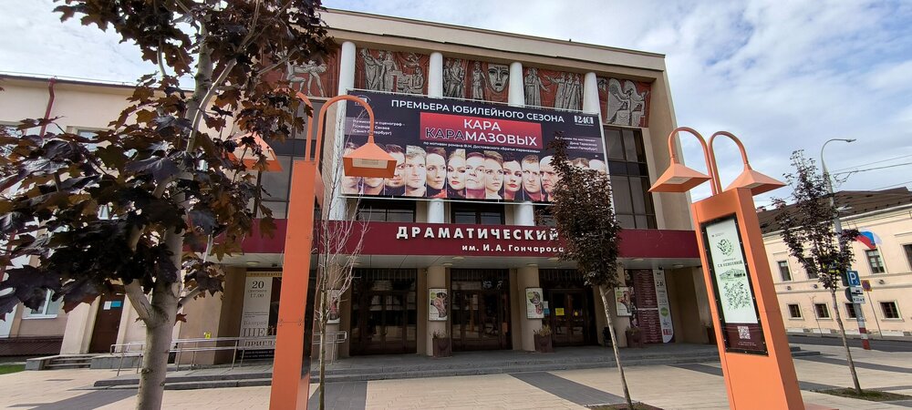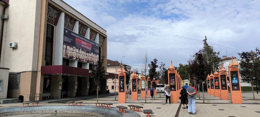 День восьмой. 15.08.2025. Саратов. Два слова про гостиницу «Саратов». Вот что пишет сама гостиница про себя. «Номерной фонд гостиницы представлен номерами категорий: стандарт, комфорт, джуниор, люкс, а так же номерами эконом-класса. Интерьер номеров 5 этажа продуман до мелочей и выполнен в стиле 60-х годов ХХ века. В каждом номере ванная комната или душевая кабина, теплый пол, кондиционер, новые ортопедические матрасы и яркий стильный дизайн с авторскими постерами. В номерах эконом-класса, расположенных на 3 и 4 этажах гостиницы, интерьер номеров прост и непритязателен». Я думаю, у всей нашей группы были номера на 3-м или 4-м этаже. Мой лично был на третьем. Посмотрела сейчас цену за такой номер – 1700 за ночь. Кондиционера нет, спала с открытым окном, окна на проезжую часть, тишина соответствующая. Чайников в номерах нет, кулер на этаже. И телевизор старый, это который с огромным кинескопом сзади. Где они такой откопали только??? Видимо, двадцатилетней давности. Короче, опять экономия на всем, как в Казани. Других гостиниц для групп не сыскать видимо во всем Саратове. Кабина лифта рассчитана на двух человек без чемоданов, с чемоданом только один в ней поместится. И лифт этот не дождаться. Стащила чемодан по лестнице. Справедливости ради – завтрак в гостинице хороший шведский стол, разнообразный. Какой-то я становлюсь брюзгой по ходу. На завтраке мы встретили Александра, нашего водителя. Колесо поменяли и ура! мы поедем дальше на своем автобусе. Отъезд был назначен на 08.30. Из дополнительных мероприятий на сегодня было предложена экскурсия в Саратовский государственный художественный музей за 500 рублей и прогулка на кораблике за 950 рублей. В музей я записалась, а вместо прогулки по Волге пойду гулять по городу. Саратовская обзорная экскурсия длилась 3 часа и была она автобусно-пешеходная. Наш отель находился в 4 км от центра – Театральной площади. Но прежде чем ехать в центр делаем круг по кварталу, чтобы посмотреть малую мельницу Шмидта. Впечатляющий памятник промышленной архитектуры! Здание конца 19 века с башнями, шпилями и флюгерами раньше было частью мукомольного производства, принадлежавшего братьям Шмидт, потомкам немецких колонистов. Едем в центр, катаемся по центральным улицам исторической части. У меня не было никаких домашних заготовок для прогулки по Саратову, поэтому, вертя головой направо и налево, я пыталась запомнить, где что находится из понравившегося. Очень скоро я поняла, что занятие это бесполезное. Мне нравилось все, что я видела. А мы тем временем спускаемся к Волге. И выходим у Свято-Троицкого Собора. Напротив современное здание - ресторан "Осьминог". Симпатичное. Площадь, на которой расположен собор, это то место собственно, с которого начался именно современный Саратов. Вообще, годом основания города считается 1590 год, когда на левом берегу Волги была построена крепость, в начале 17 века город сгорел, был снова отстроен на левом берегу Волги, а вот в 1674 году указом царя Алексея Михайловича город был перенесен на правый берег реки. Город начал формироваться здесь с 1674 года, а в Свято-Троицком Соборе бывал сам Пётр I. Мы заходим на минуту в нижний храм, там идет служба, а рядом с собором разбит прекрасный розарий, пруд с фонтанчиком и золотыми рыбками. И так это все красиво. Не уходил бы. Но… Идем дальше. Напротив собора в особняке М.Уст