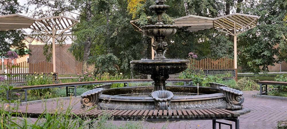В Саратове длинные и прямые улицы. Выйдя из столовой, я решила пройтись дальше по Московской. Московская всегда была одной из главных улиц Саратова, одной из престижных, длина ее больше 4 км, начинается она от Волги и заканчивается железнодорожным вокзалом. Поскольку эта улица соединяла между собой главные торговые места города - Гостиный двор и Верхний базар, то и селились здесь по большей части купцы. Купцы строили красивые дома, которые сейчас являются украшением города. А напротив здания гостиницы «Московская» где мы обедали, как раз идет комплекс зданий Верхнего базара. Вернее это два из семи сохранившихся корпусов постройки 1877 года. Иду по четной стороне улицы. Там вроде как тени побольше. На улице жара. На месте этого нынешнего здания Академии наук находилось раньше два красивых двухэтажных дома купца И.Худобина. В одном доме купец жил с семьей, а другой сдавал. В середине 20 века был разработан проект объединения, реконструкции и надстройки двух бывших зданий Худобина, который был выполнен к 1952 году. Вместо двух достопримечательностей образовалась одна новая – трехэтажное здание с элементами классицизма. Перешла на солнечную сторону улицы, чтобы сфотографировать это представительное двухэтажное здание. Оно деревянное, обложенное кирпичом. Было построено в конце 19 века на средства Н.В.Скворцова, владельца мукомольной мельницы и маслобойной фабрики. Промышленник и жил в этом доме, и держал в нем свой магазин, и сдавал помещения в аренду. Вернулась в тень, на четную сторону улицы. На противоположной стороне - дом купца П.Борисова-Морозова, бывший доходный дом, архитектурная достопримечательность Саратова, постройка конца начала 20 века. Предприятия Борисова-Морозова выпускали кирпич, муку, масло, мыло и глицерин. Долгое время в здании расположен Отдел ЗАГС по Кировскому району Саратова. Дошла до перекрестка Московской улицы и Вольской улицы. Внушительное сооружение здесь на перекрестке - доходный дом А. А. Ананьина - образец саратовского модерна, самый большой по этажности на то время в Саратове. Здание построено в 1913 году на принадлежавшем владельцу мыловаренного завода А.Ананьину обширном дворовом месте, выходившем на три улицы. А этот двухэтажный угловой дом был построен в 1870-х годах и принадлежал известному саратовскому купцу А.И. Красулину. Владелец использовал его как доходный дом и сдавал помещения в аренду разным организациям. После национализации здания большевиками оно было превращено в жилое. Здание вместе со старинным кованым угловым балконом дошло до наших дней в неизменном виде и является памятником архитектуры и градостроительства регионального значения. Прошла я по Московской всего каких-то 500 метров до симпатичного особняка, последней владелицей которого была миллионерша-купчиха М.Сибрина, занимавшаяся оптовой мануфактурной торговлей и операциями с недвижимостью. Купчиха в 1917 году имела с десяток внушительных домовладений с особняками и доходными домами. Можно было пройти по Московской дальше, но я свернула на улицу Вольскую. Здесь красивые дома сталинской и послевоенной застройки. Вот этот четырехэтажный 1937 года постройки с барельефом, изображающим танцующих советских граждан, или вот эта серая четырехэтажка 1953 года. И здесь мне встретился милый маленький фонтан. Чашу фонтана держат три льва.