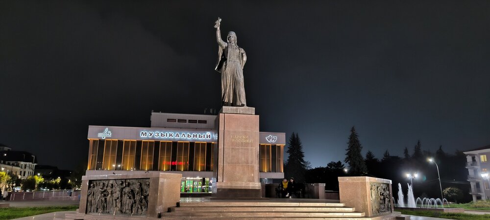 ЯнтарНый - Нальчик. возьму третью с конца. Если у кого-то найдется город с началом с Й или Ы, Нальчик пойдет как рекламная пауза. В столицу Кабардино-Балкарии мы приехали вечером. Здесь у нас была только ночевка, на следующий день уезжали к Голубым озерам. Заселились и направились искать близлежащую пятерку. А получилось сделать небольшой круг вокруг гостиницы. Поэтому Нальчик ночной. Дело было в октябре. В городе царила осень. Прошли и прошли. В городе много чего ремонтировали, клали тротуарную плитку. у здания администрации шло благоустройство. Дело не в этом. Утром мы поехали за второй частью группы, ночевавшей в другой гостинице в курортной зоне. И тут я очаровалась Нальчиком абсолютно. Очень захотелось не спеша погулять там при дневном свете. Теперь подумываю как там оказаться на подольше. Если в игру зайдет, то следующая - К