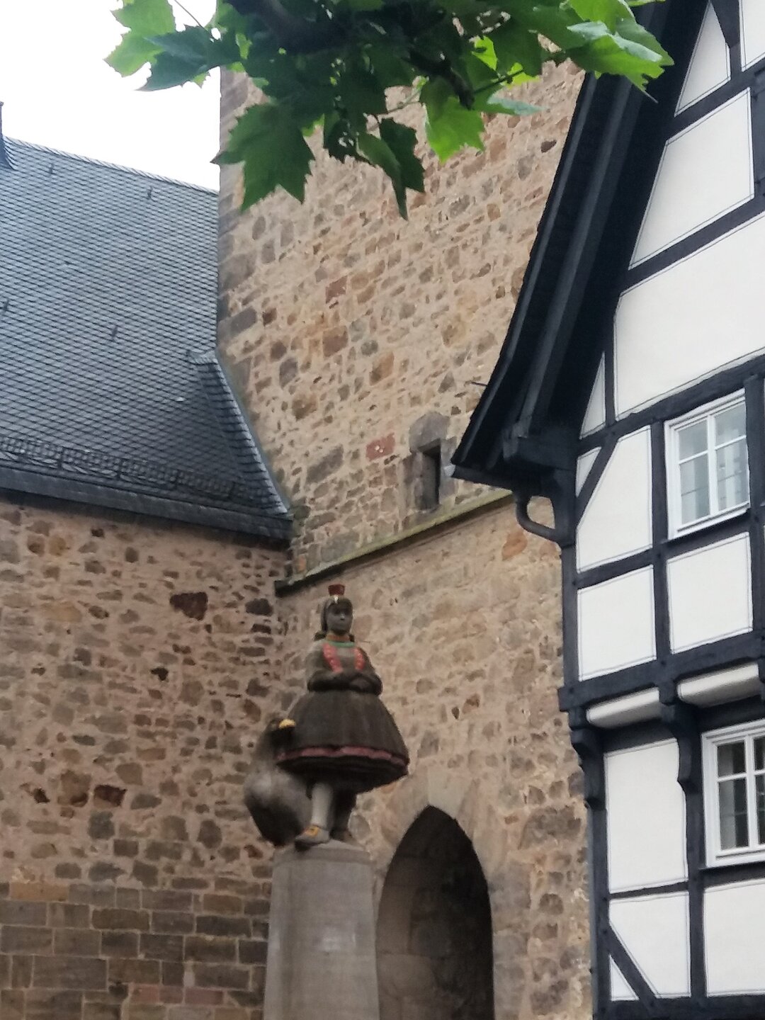 Нытва - Альсфельд Старинный немецкий город - один из промежуточных пунктов Немецкой дороги сказок. Практически не пострадал во время бомбардировок второй мировой войны, а посему сохранил свой исторический центр. Ратуша начала 16 века, Винный дом, Свадебный дом. В городе в свое время побывали братья Гримм и очень им городок понравился. Якобы нарядили они свою Красную Шапочку взяв за образец наряды жительниц Альфельда. Город сейчас принято называть родиной Красной Шапочки. Очень атмосферный городок. Альсфельд образца 2018 года в туре "Дворцы, сады и парки Германии" Ратуша и Винный дом Попробовали и десерт Красной Шапочки. Тот самый, который достают на фото Следующая - Д