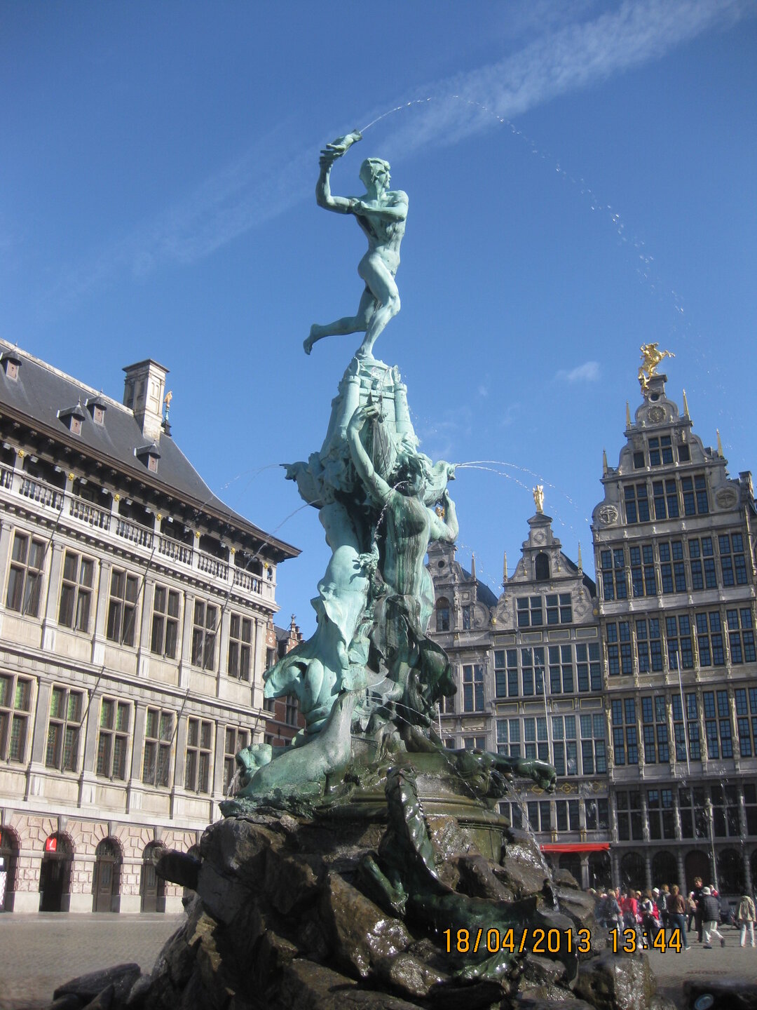 Чисто добавочек Антверпена 2013 года к посту Светика-Семицветика. У меня странное воспоминание об этом городе. Был апрель, солнечно, но на улице не больше +10 и ветер холоднющий. И больше всего я запомнила девушку, ехавшую на велике в летнем платье с босыми ногами, тогда как мы кутались в шарфы. А сейчас пересмотрела фотки, а город такой красивый! Когда бы я еще вернулась к Антверпену если бы не эта тема! А это главный символ города, основанный на легенде о великане, у которого римский солдат отрубил руку и выбросил ее в реку, и название города переводится как «бросить руку» А это тот самый солдат, бросающий руку