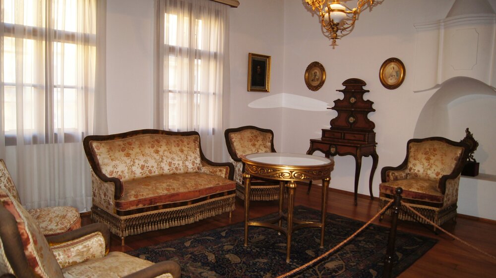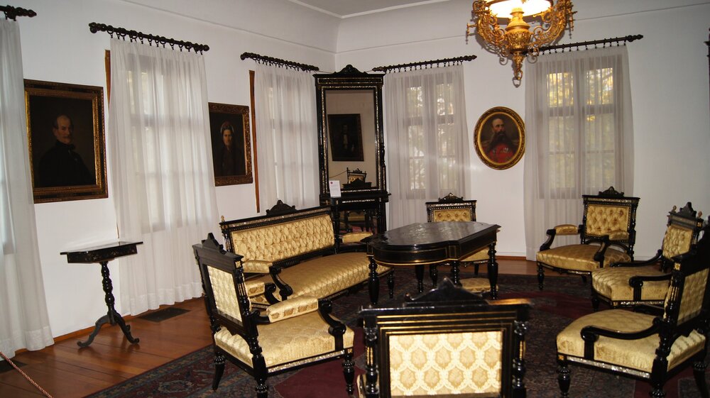 Я была во дворце княгини Любицы Обренович. Немного интерьеров дворца. Самый большой портрет - это князь Михаил Обренович. А в цокольном этаже была выставка картин.