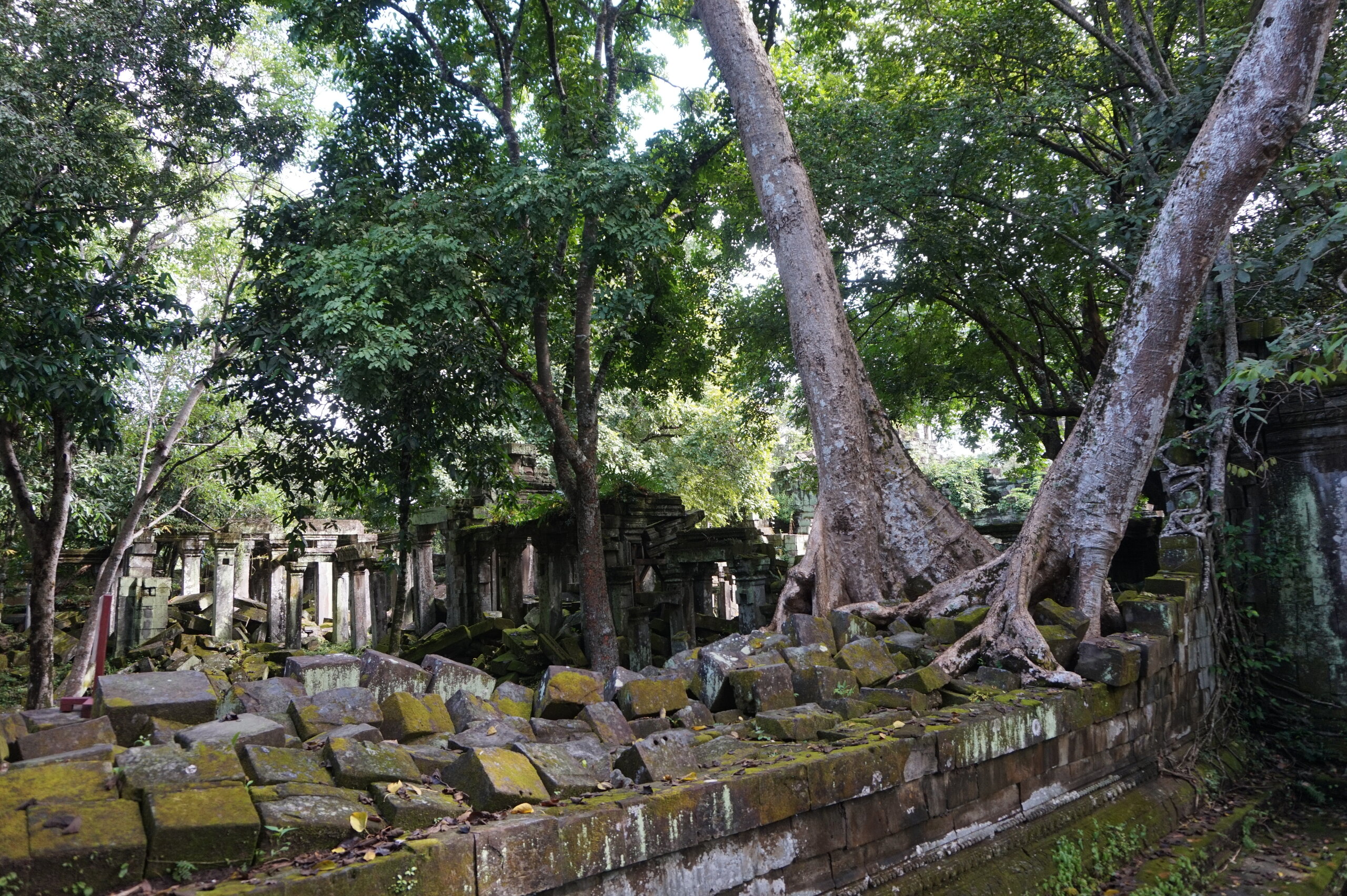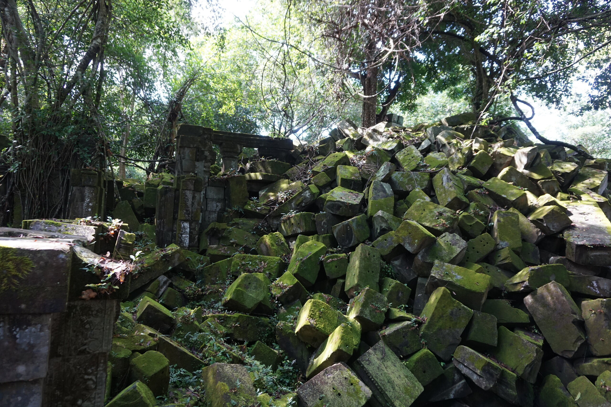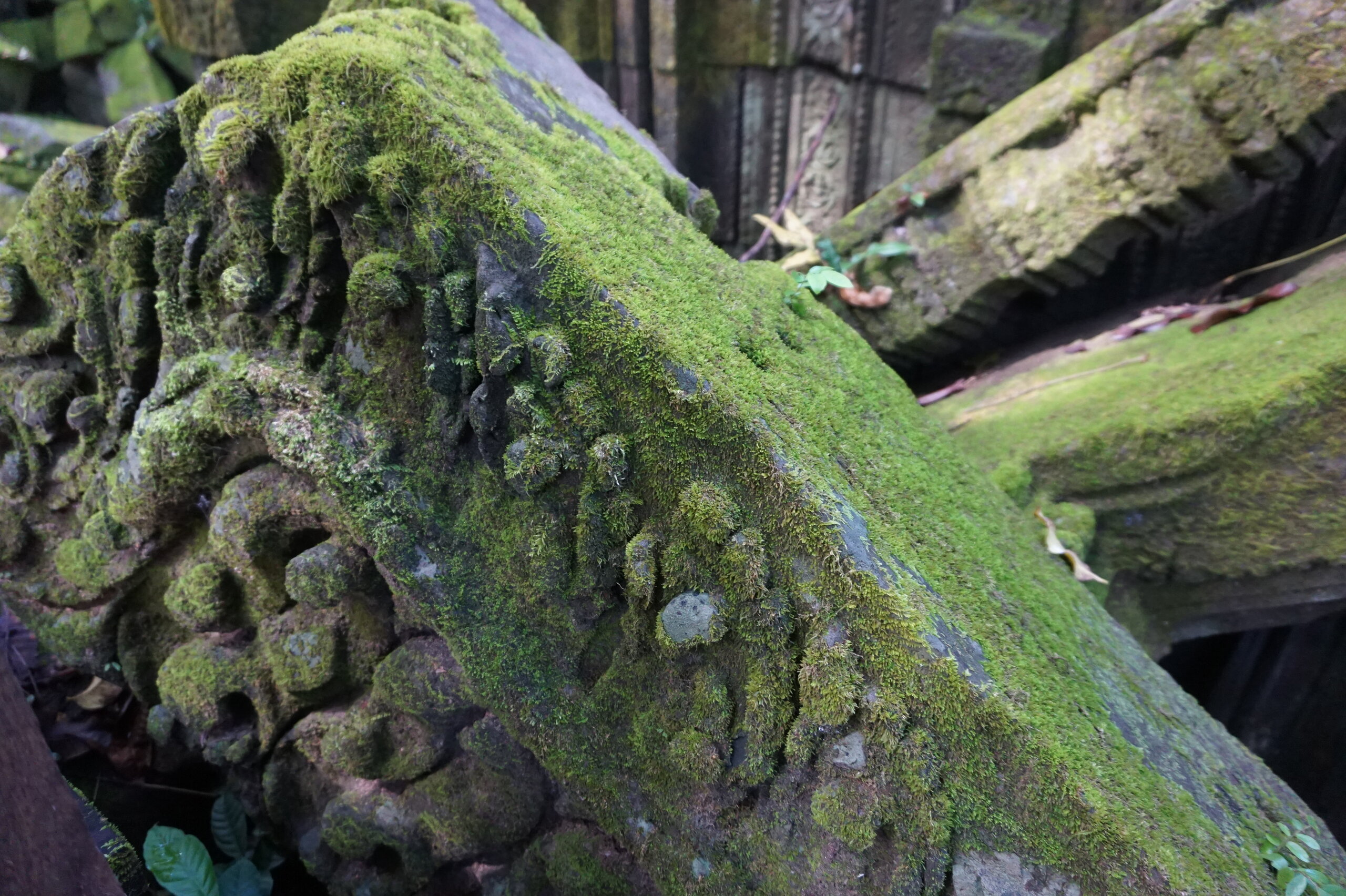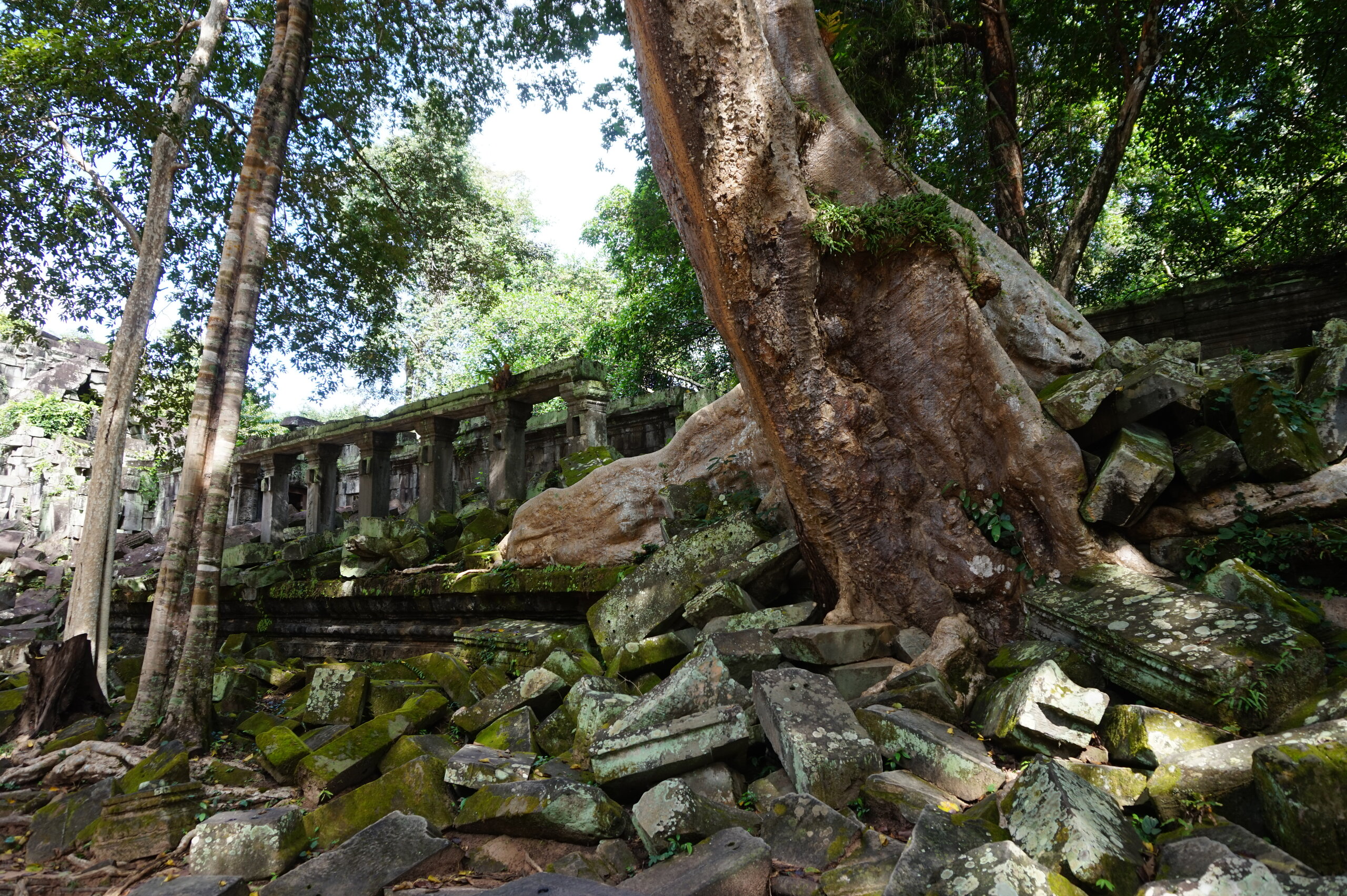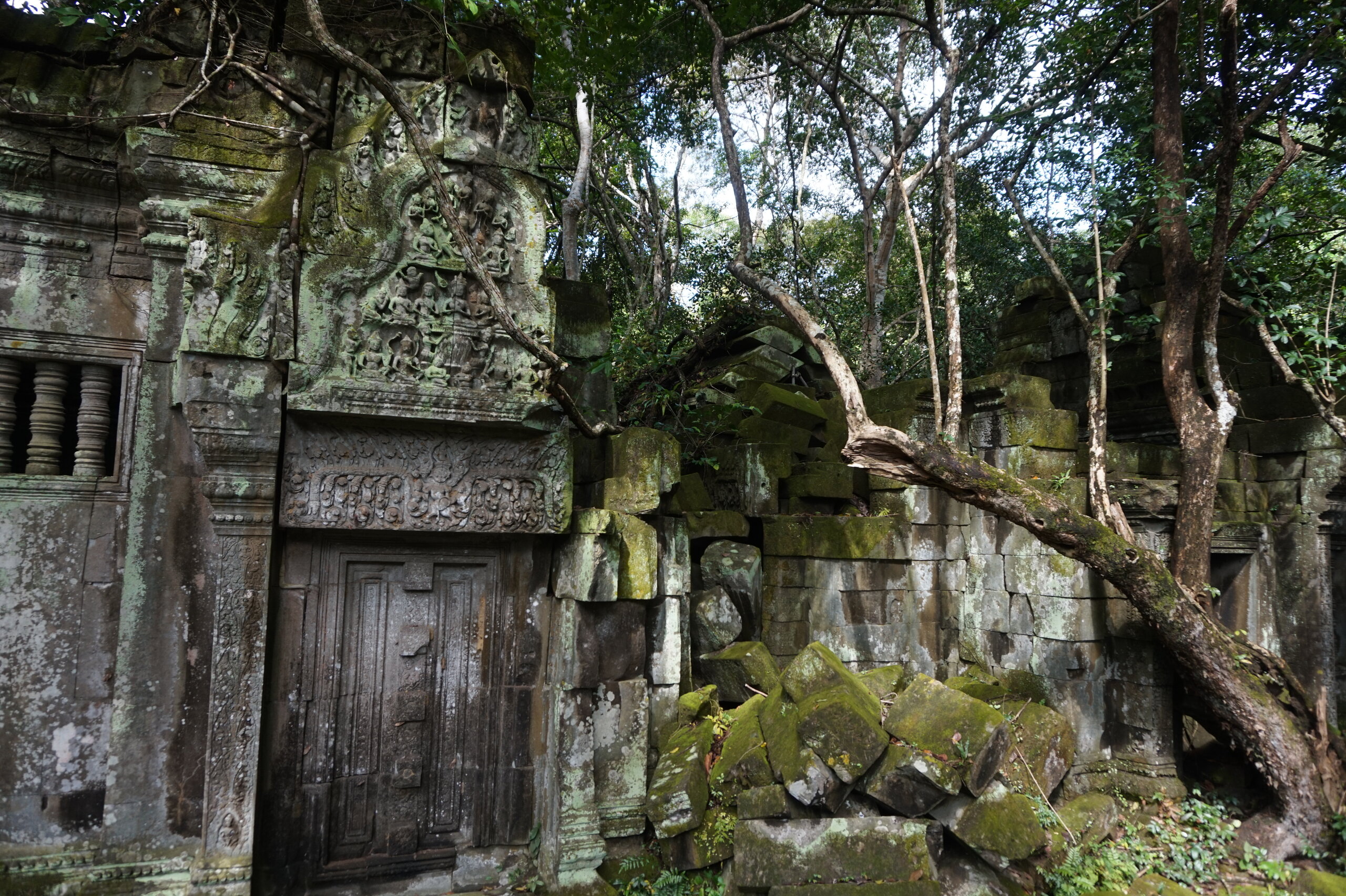 День 8. Храмы Большого круга Ангкора. Озеро Тонлесап. Продолжаем знакомиться с храмами Камбоджи. И первый на сегодня- Бенг Мелеа, что в переводе- озеро лотосов. Уже на подступах нас встречают наги-охранники, большущие семиглавые змеи, тела которых образуют балюстрады, окаймляющие по обе стороны дорогу, ведущую ко входу в храм. Наги отлично сохранились. А дальше- первая мысль- какой же это храм, просто большая груда камней. Обнаружен храм совсем недавно-в 1990 г, а разминирован и открыт для туристов только в 2007г. С 1992 года Бенг Мелеа находится в листе ожидания на включение этого объекта в лист Всемирного наследия ЮНЕСКО. Территория расчищена от зарослей, но сам храм не восстанавливался, в чем и состоит его особая прелесть. И в этом храме мы были одни- только наша группа, и можно почувствовать себя первооткрывателями. В некоторых местах проложены мостки для туристов, идём за гидом, но как же хотелось полазить по этим развалинам, заглянуть в места, которые плохо видно с мостков. История храма неизвестна, и дата постройки тоже. Предположительно начало 12 века, т к архитектура схожа с Ангкор Ватом. Возможно, когда Бенг Мелиа будет восстанавливаться, найдутся и камни с надписями, которые прольют свет на историю этого города. Считается, что Бенг Мелиа был посвящен Вишну, однако в декоре присутствуют как индуистские, так и буддистские мотивы. Очень сложно представить структуру храма, может быть я не очень внимательно слушала Александра, но руины очень живописны и впечатляют не меньше Анкора. Камни покрыты мхом, только кончился сезон дождей, и поэтому цвет такой яркий, изумрудный. Известно, что здесь бывал известный английский писатель Редъярд Киплинг. По слухам, именно Бенг Мелиа послужил прообразом «Заброшенного города» из истории о Маугли. На осмотр храма у нас было около полутора часов, немного, но мы едем дальше.