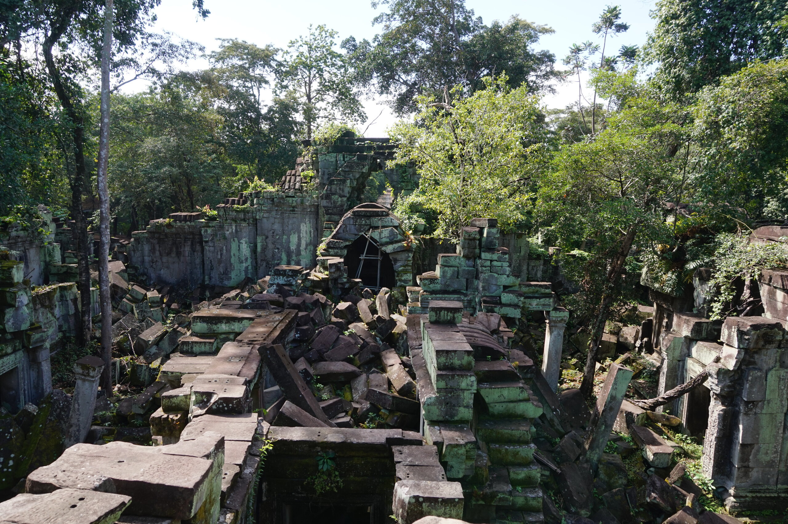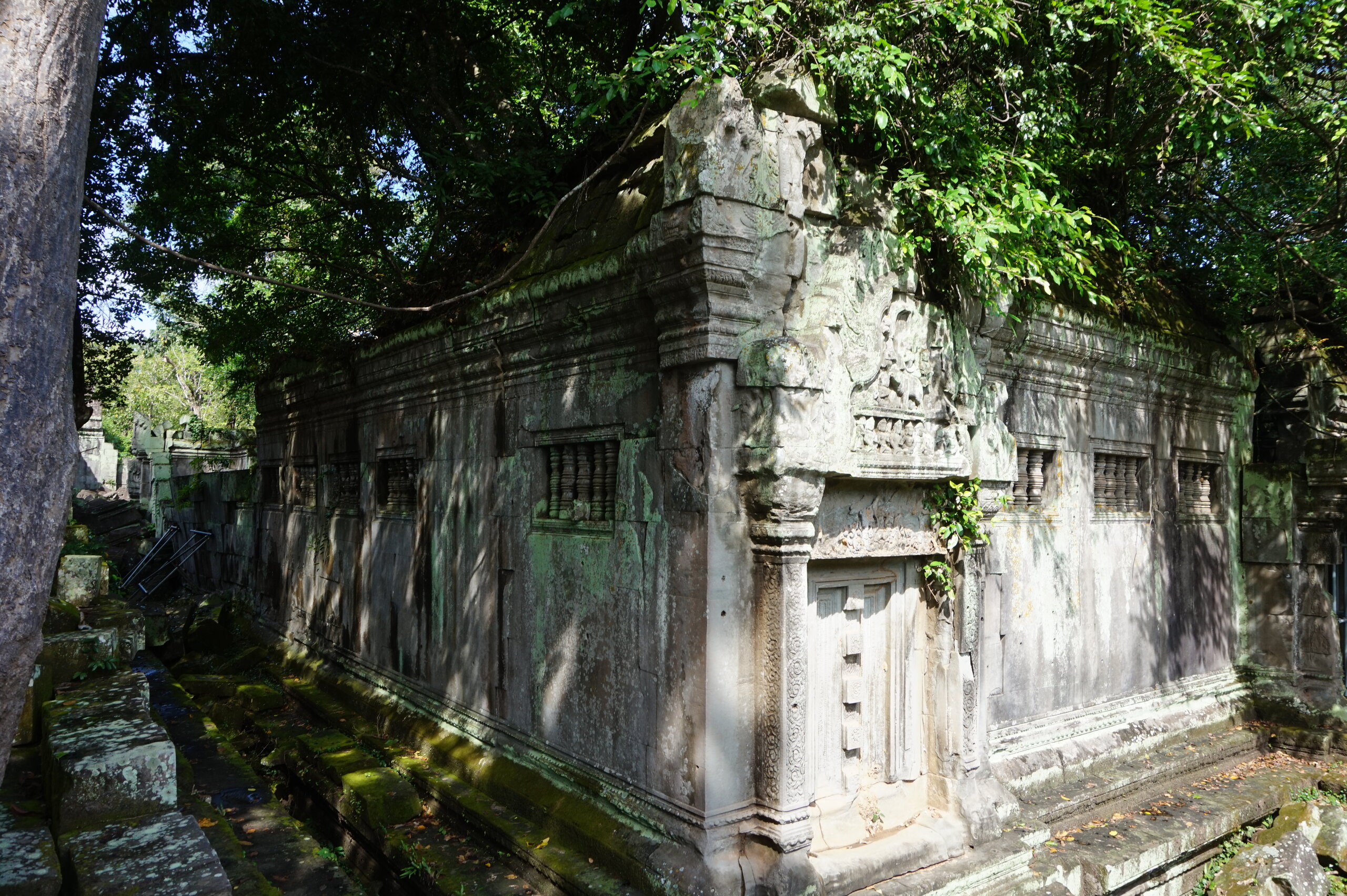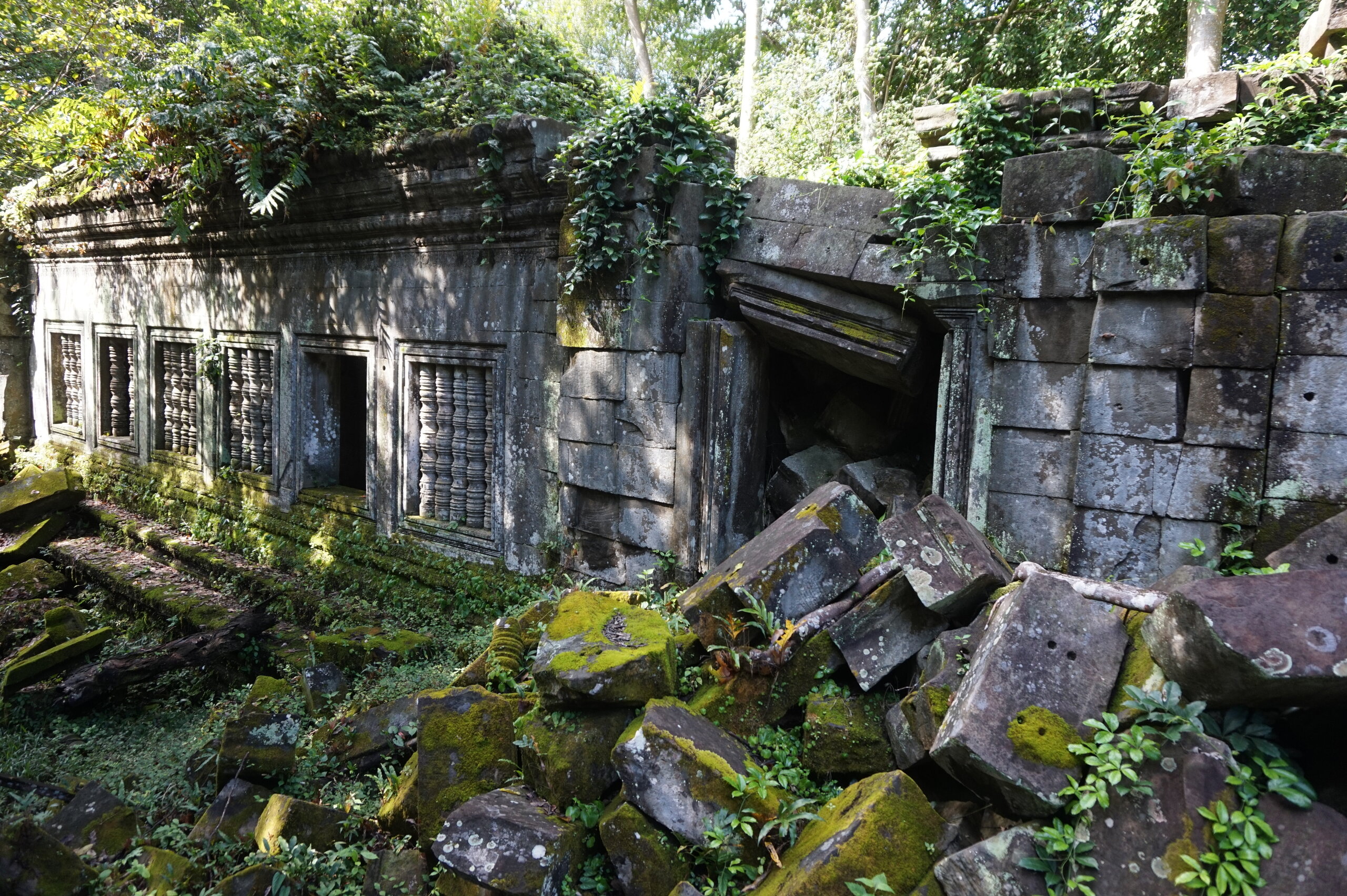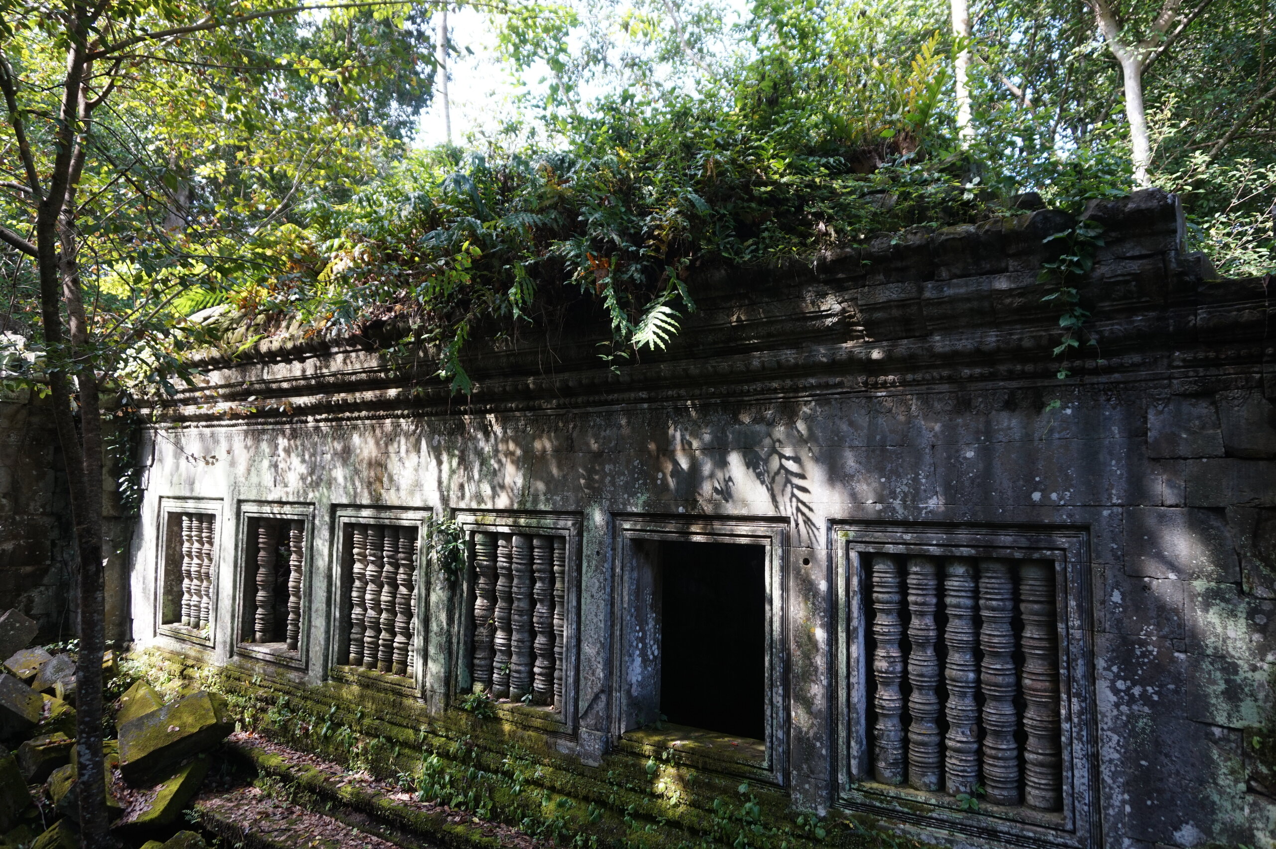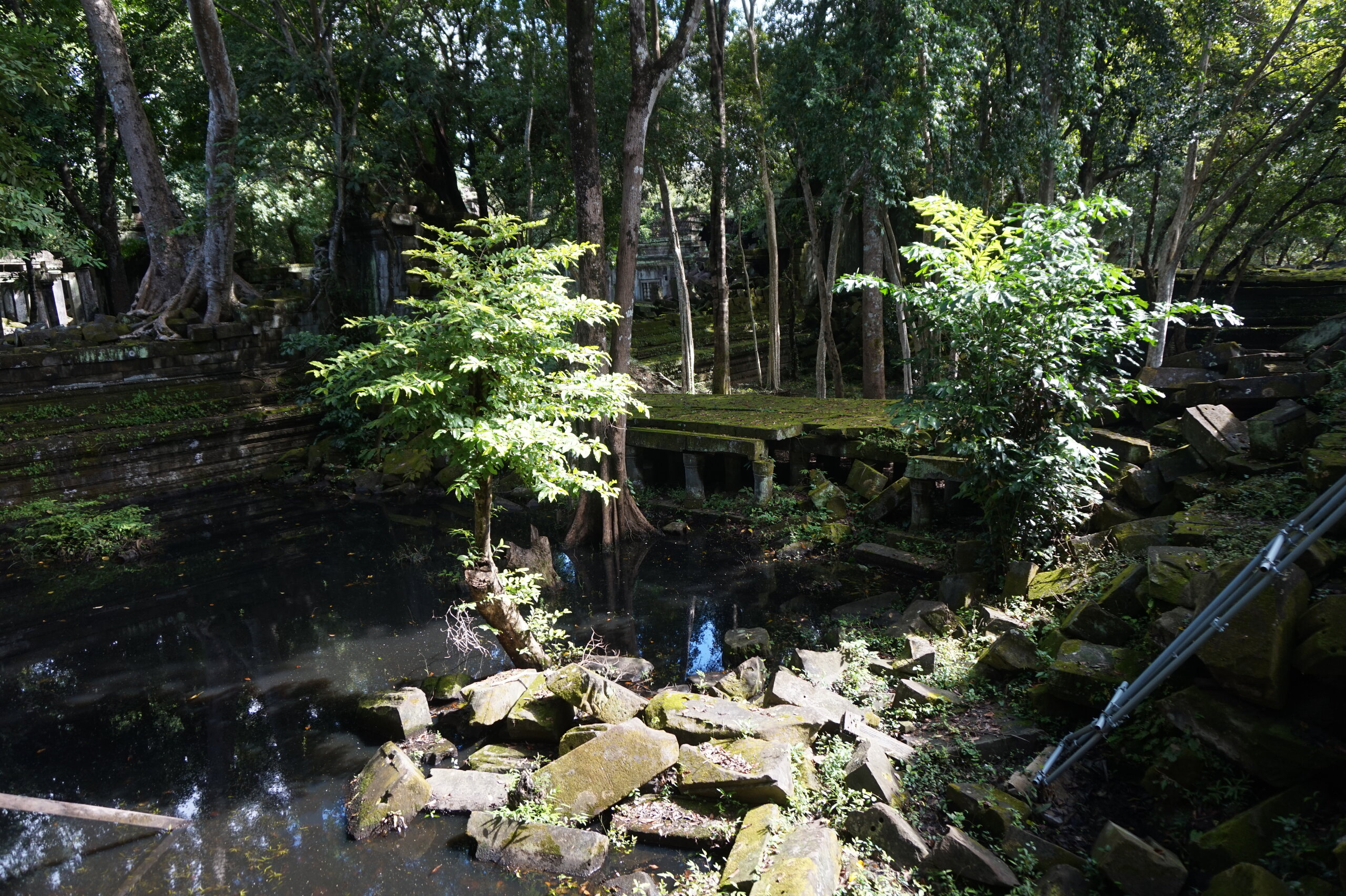 День 8. Храмы Большого круга Ангкора. Озеро Тонлесап. Продолжаем знакомиться с храмами Камбоджи. И первый на сегодня- Бенг Мелеа, что в переводе- озеро лотосов. Уже на подступах нас встречают наги-охранники, большущие семиглавые змеи, тела которых образуют балюстрады, окаймляющие по обе стороны дорогу, ведущую ко входу в храм. Наги отлично сохранились. А дальше- первая мысль- какой же это храм, просто большая груда камней. Обнаружен храм совсем недавно-в 1990 г, а разминирован и открыт для туристов только в 2007г. С 1992 года Бенг Мелеа находится в листе ожидания на включение этого объекта в лист Всемирного наследия ЮНЕСКО. Территория расчищена от зарослей, но сам храм не восстанавливался, в чем и состоит его особая прелесть. И в этом храме мы были одни- только наша группа, и можно почувствовать себя первооткрывателями. В некоторых местах проложены мостки для туристов, идём за гидом, но как же хотелось полазить по этим развалинам, заглянуть в места, которые плохо видно с мостков. История храма неизвестна, и дата постройки тоже. Предположительно начало 12 века, т к архитектура схожа с Ангкор Ватом. Возможно, когда Бенг Мелиа будет восстанавливаться, найдутся и камни с надписями, которые прольют свет на историю этого города. Считается, что Бенг Мелиа был посвящен Вишну, однако в декоре присутствуют как индуистские, так и буддистские мотивы. Очень сложно представить структуру храма, может быть я не очень внимательно слушала Александра, но руины очень живописны и впечатляют не меньше Анкора. Камни покрыты мхом, только кончился сезон дождей, и поэтому цвет такой яркий, изумрудный. Известно, что здесь бывал известный английский писатель Редъярд Киплинг. По слухам, именно Бенг Мелиа послужил прообразом «Заброшенного города» из истории о Маугли. На осмотр храма у нас было около полутора часов, немного, но мы едем дальше.