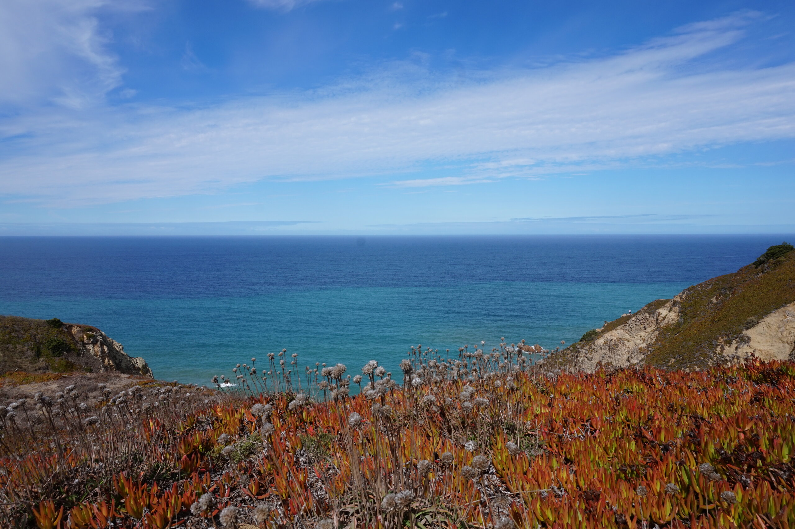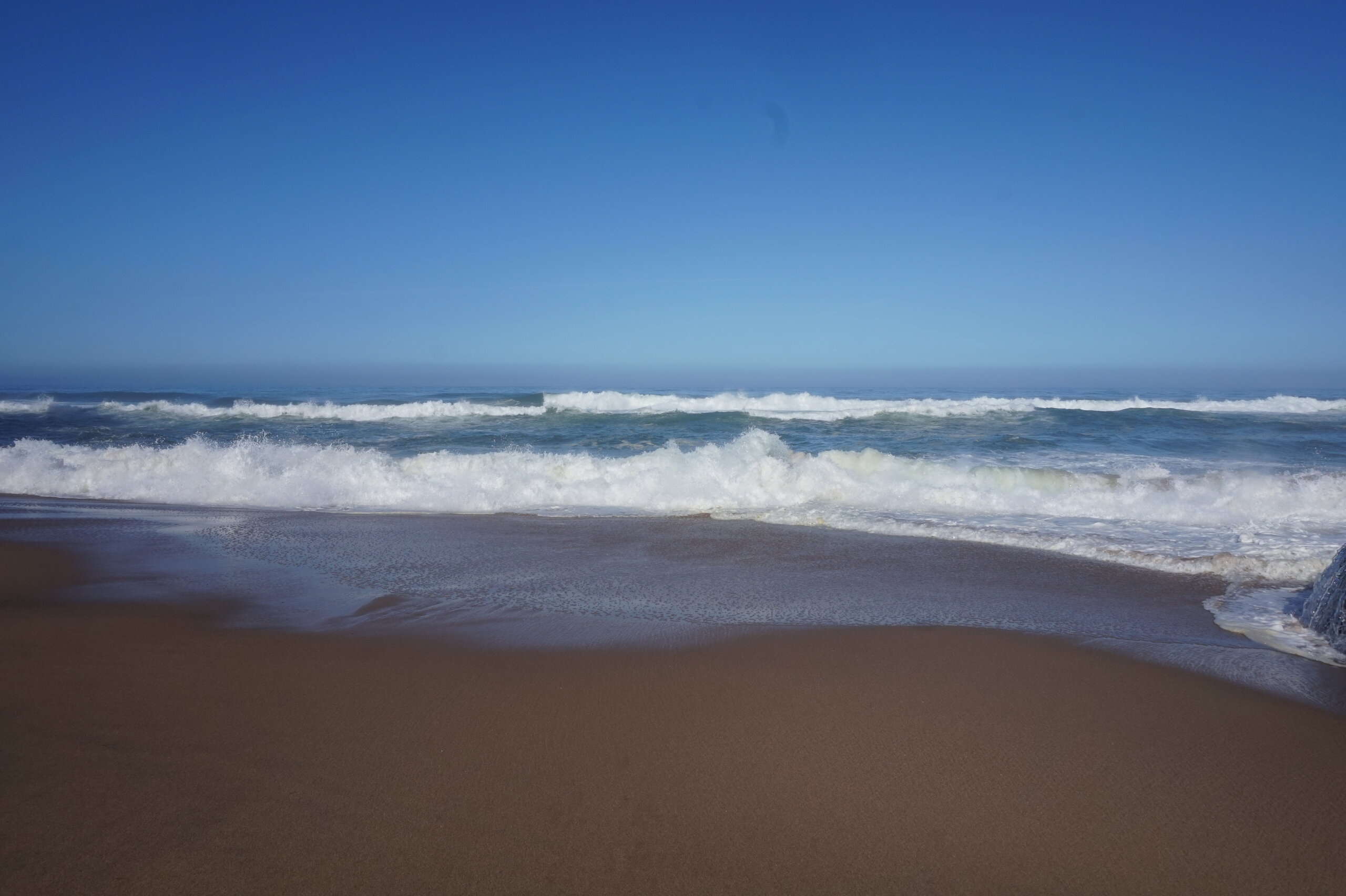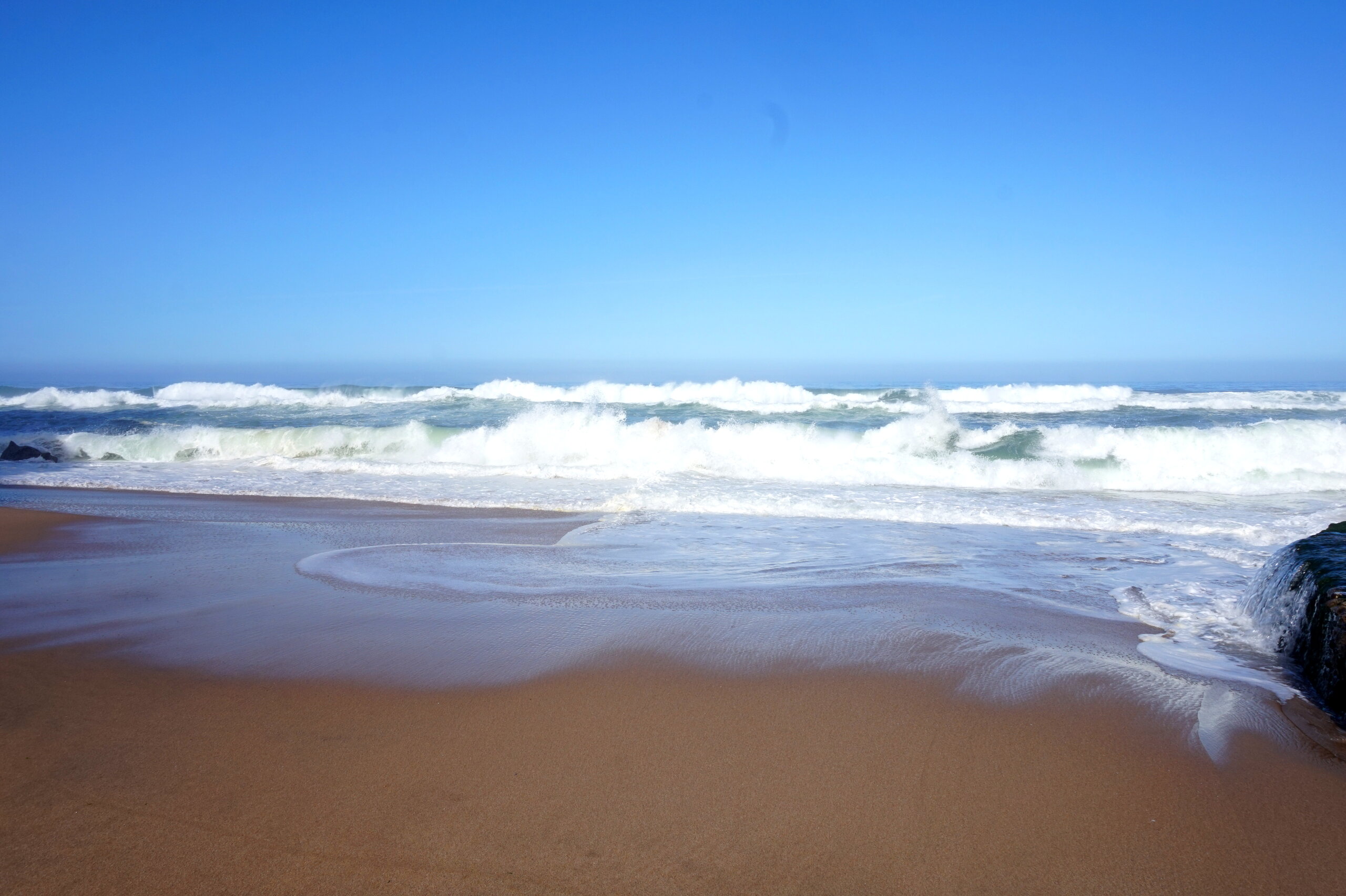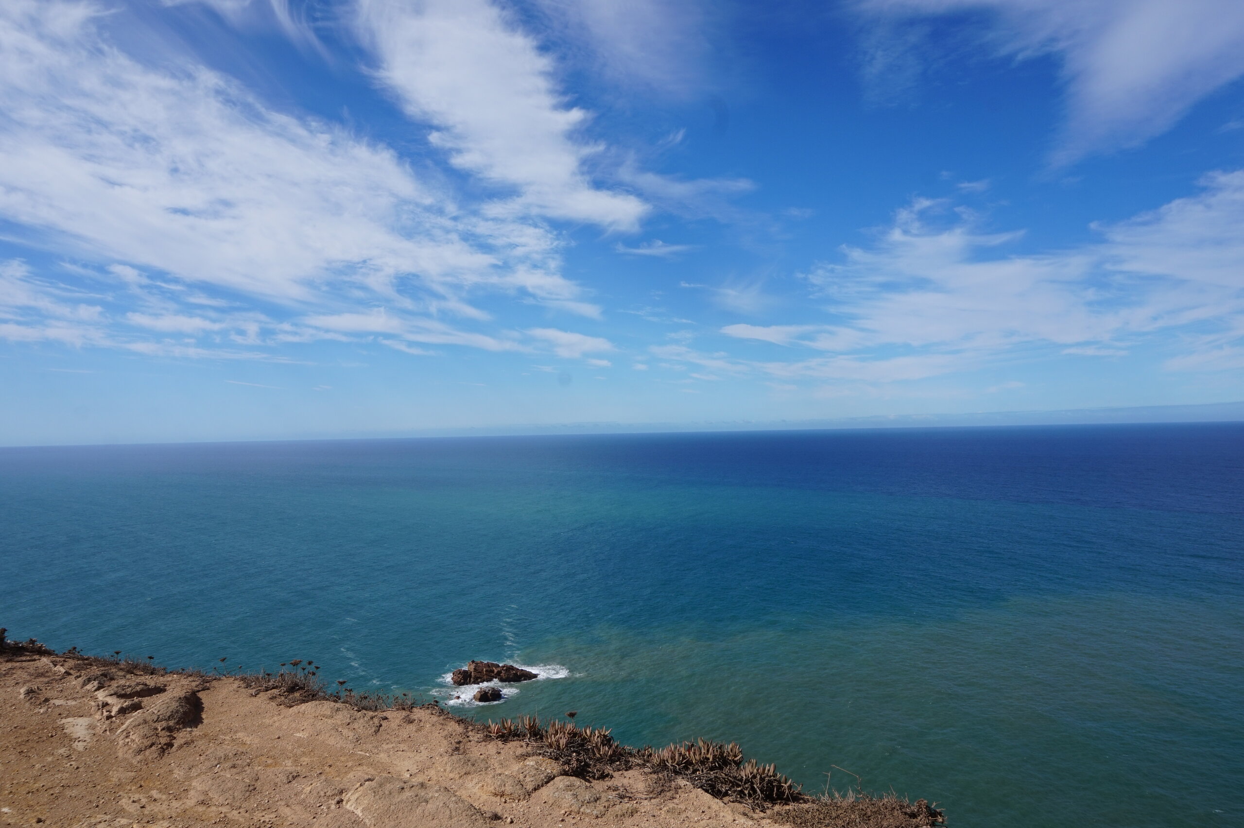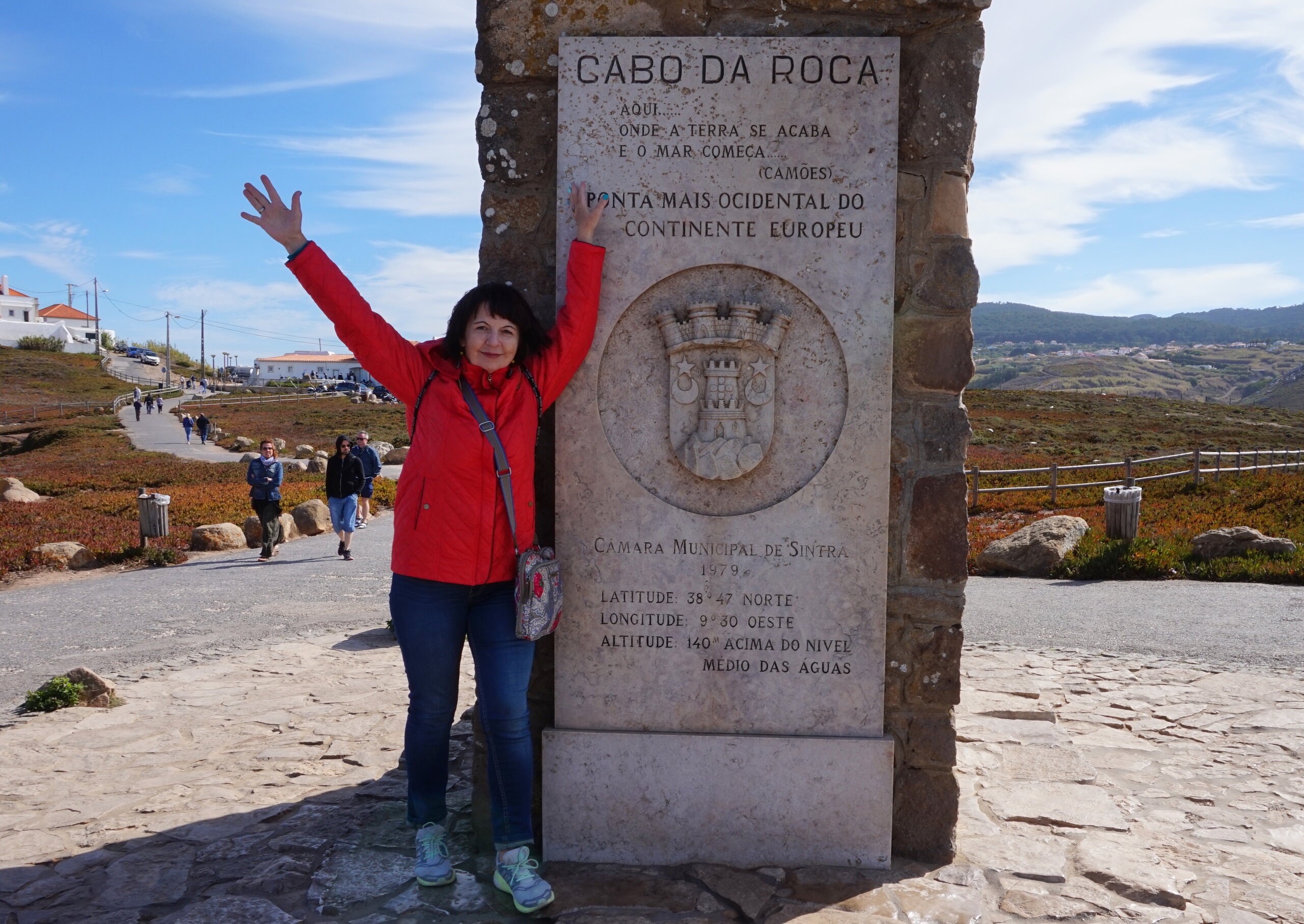 Добавлю немного фото мыса Рока. Галина подробно рассказала, но у нас был такой необыкновенный цвет океана, больше в поездке такого цвета не было. Непередаваемые ощущения, когда стоишь на краю земли. Недалеко от мыса Рока один из красивейших пляжей Португалии- пляж медведицы(прайя да урса) и мы решили до него дойти. Сначала было идти легко по тропинке, потом вот такая горка, с неё мы спутились. Вот уже и скалы пляжа вроде бы близко, но очень крутой спуск, а мы торопились ещё попасть в этот день в прекрасный замок Монсератт. И к сожалению дальше не пошли.