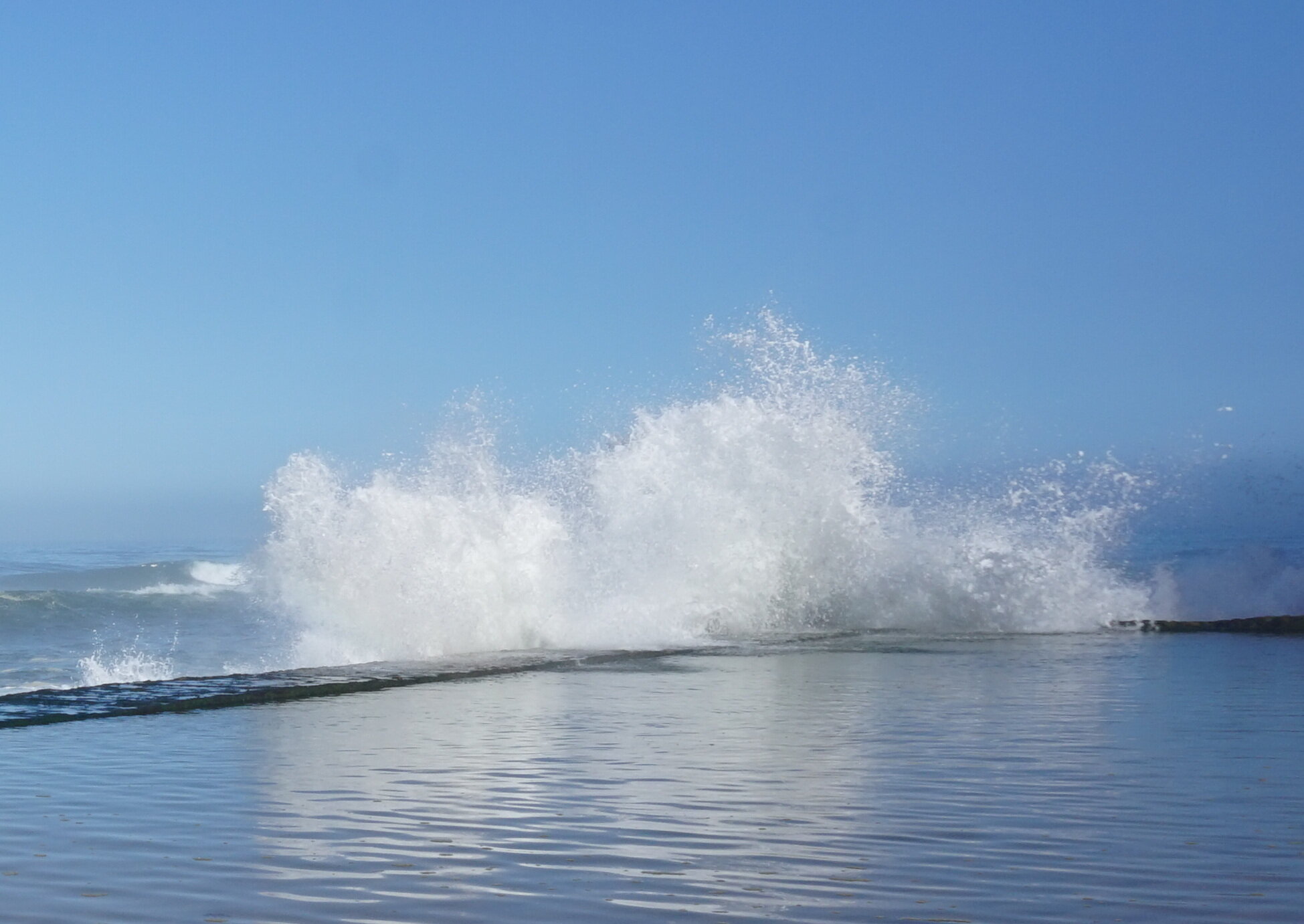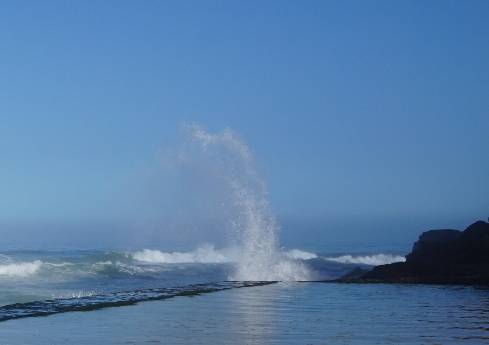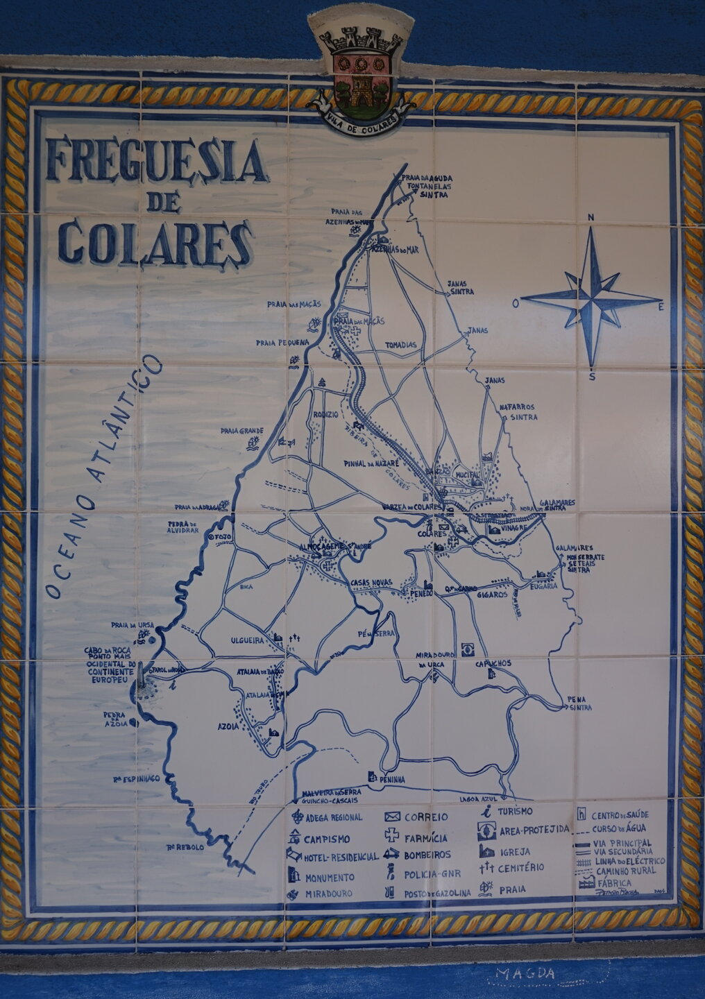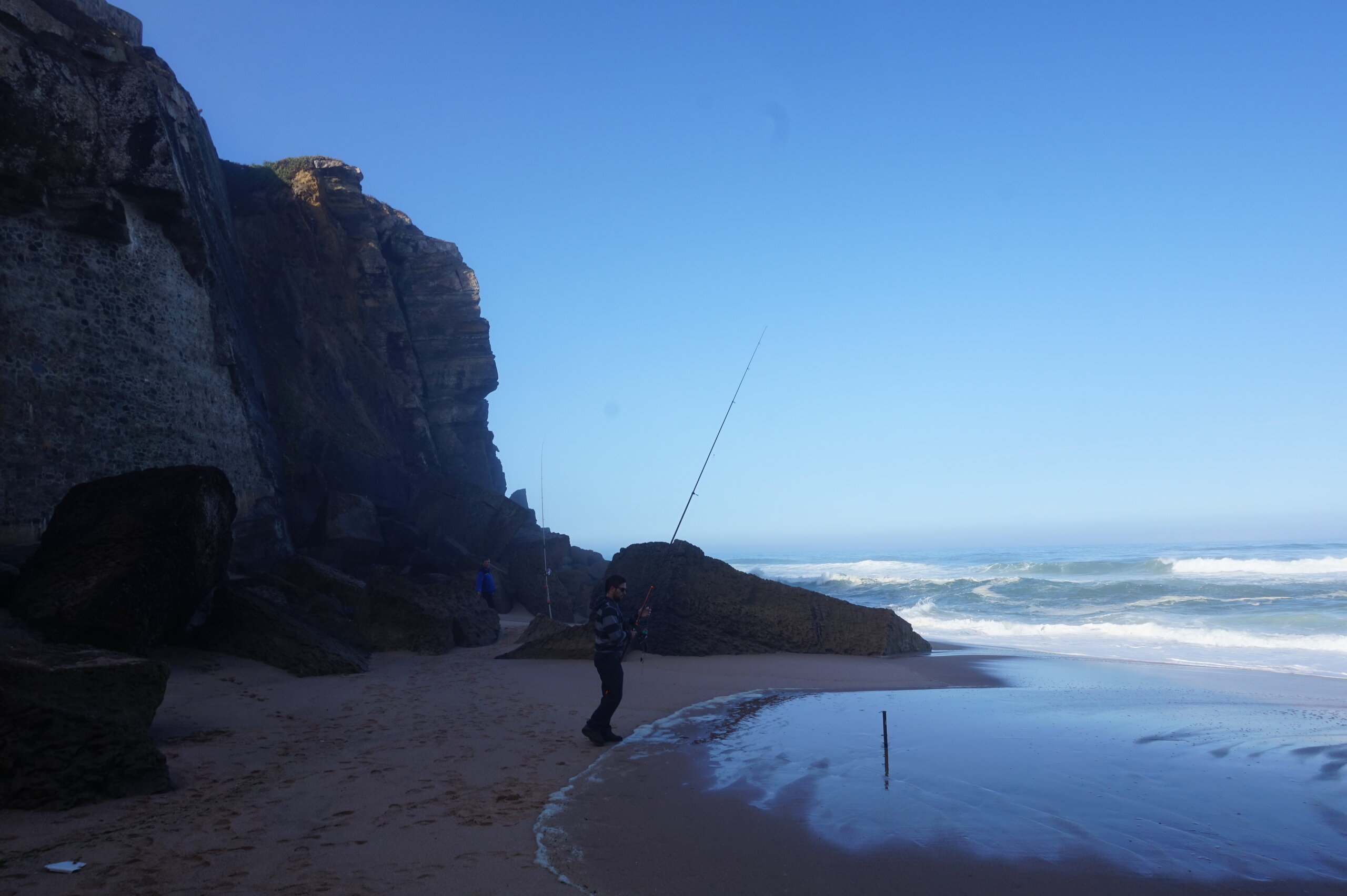 Каламбака- Азенхас-ду-Мар. Всего лишь одна фотография этого городка в путеводителе заставила нас включить его в наш план. Из Лиссабона на электричке, потом на автобусе, и вот мы в Азенхас-ду-Мар. Остановка автобуса. Название города переводится как «морская мельница». Постоянное население составляет всего 800 человек. Место славится своими виноградниками, здесь растет сорт винограда Ramisco. Жители этого небольшого города так же занимаются ловлей рыбы и моллюсков. Город расположен на скале, внизу раскинулся океан, и со стороны кажется, что город как бы влит в скалу, а некоторые дома как бы балансируют на краю пропасти. Спускаемся к океану, и мы почти одни, наедине с ним. Только пара рыбаков недалеко. Запах рыбы, солёные брызги воды, пена волн- эта картинка до сих пор передо мной. Счастливые мгновения, часто вспоминаю. Планировала искупаться в этом бассейне, но что-то не решилась. И очень хотелось выпить кофе в этом ресторане, но до открытия было ещё несколько часов, не судьба. Поднимаемся, и вот перед нами та картинка из путеводителя, которая привела нас сюда.