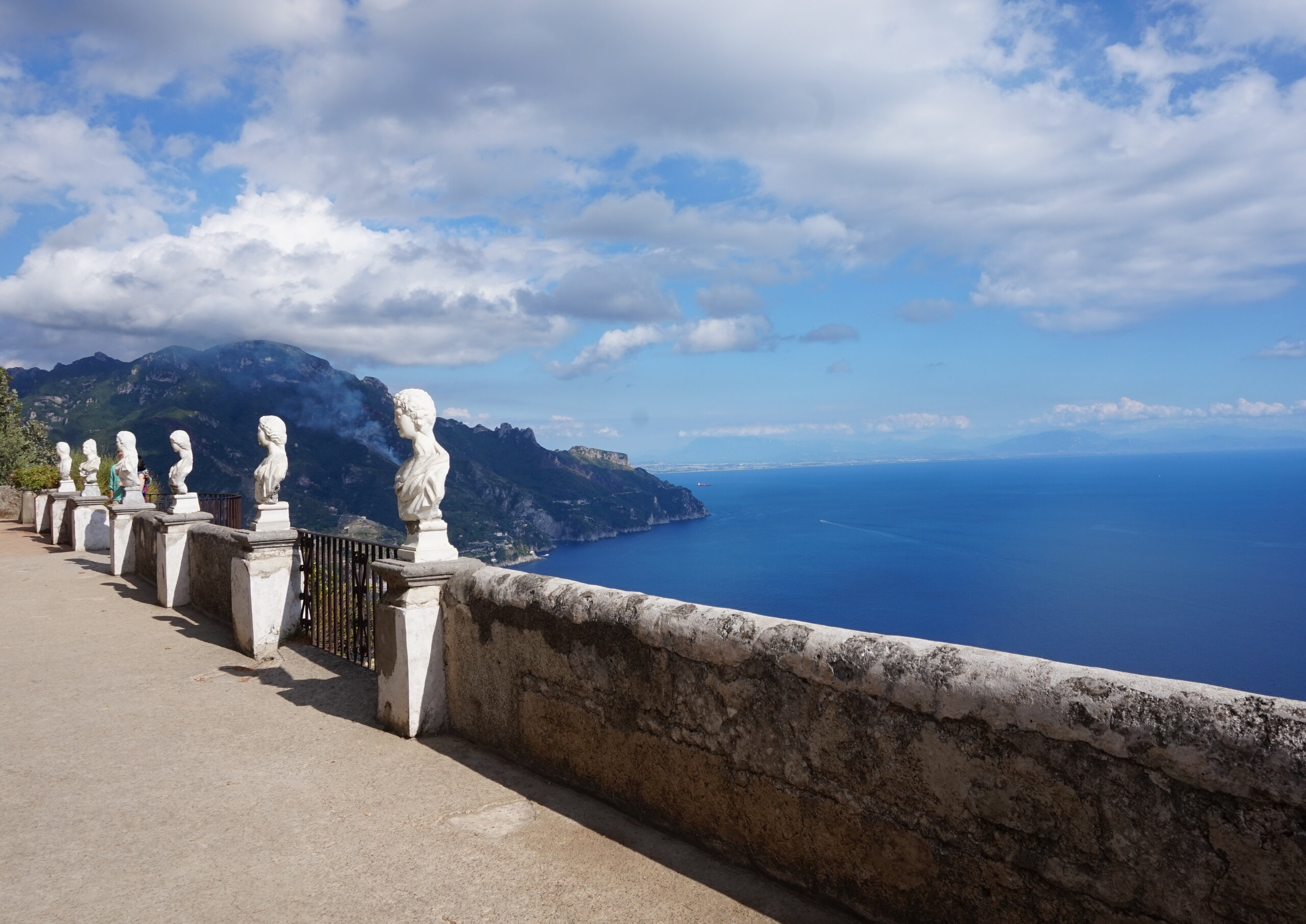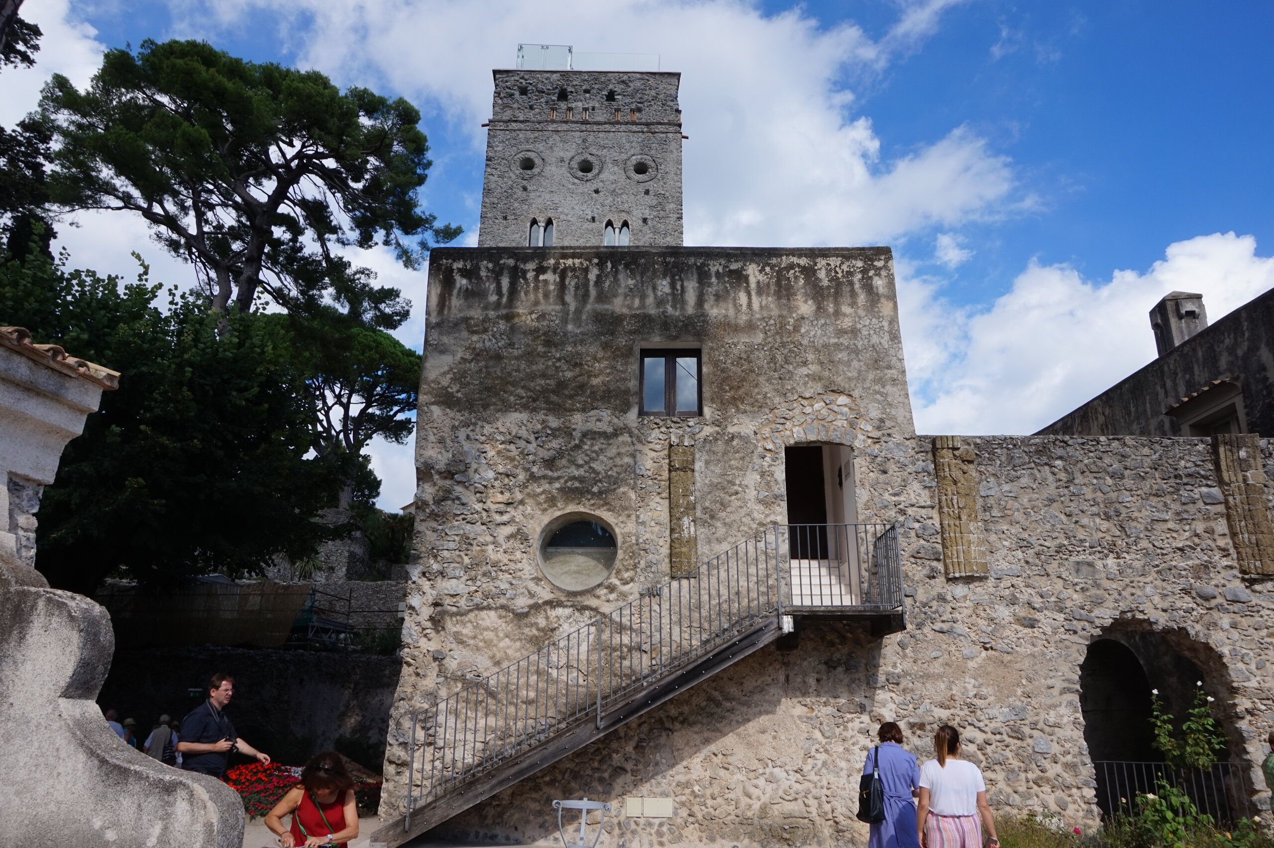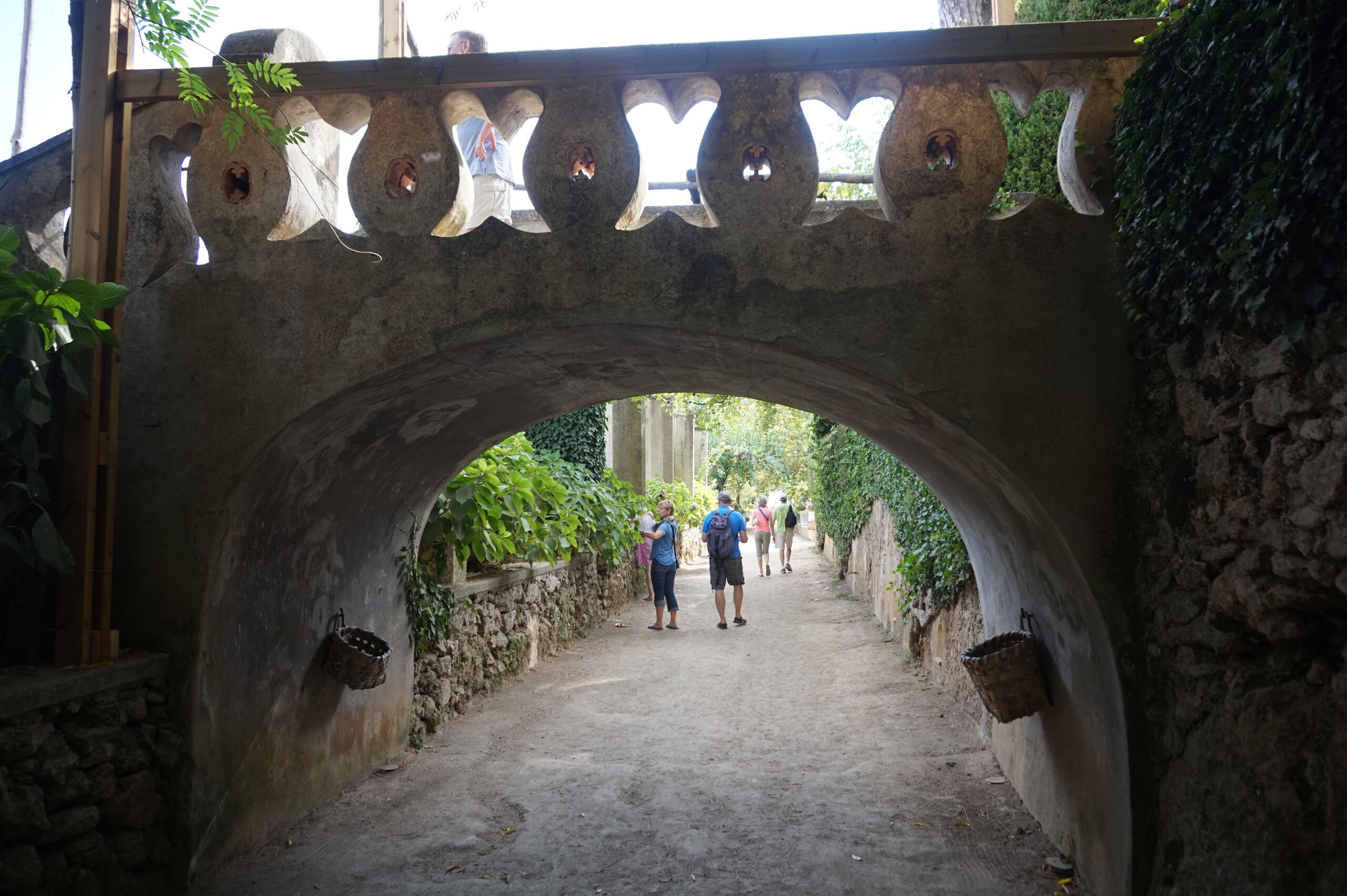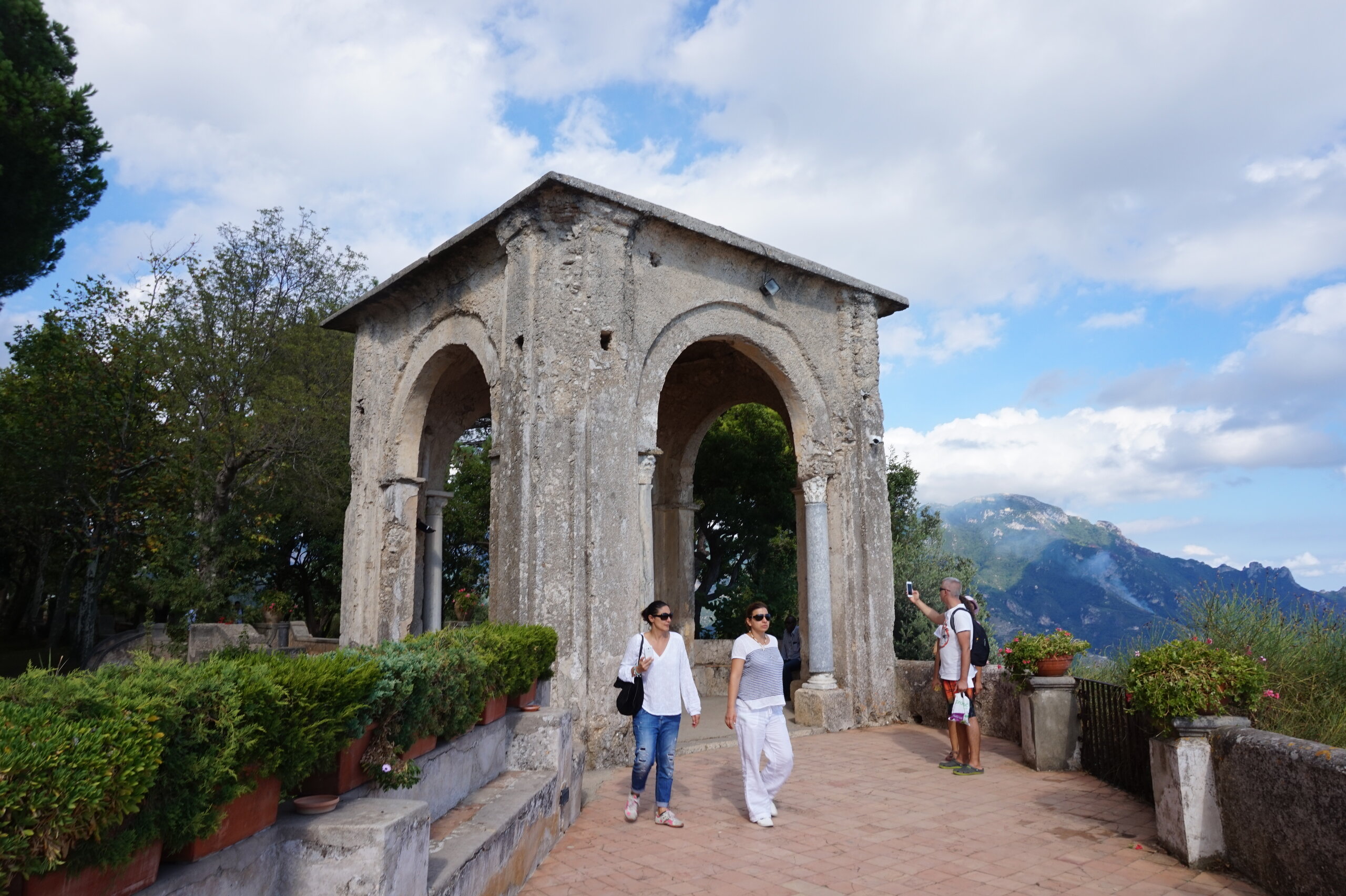 Р-Равелло. Это для меня одно из самых красивых мест в Италии. Высоко в горах над Амальфи, защищенный неприступными скалами и мощными стенами, в зарослях лимонных рощ, кроется небольшой городок. Когда-то здесь жили местные богачи, нажившие состояния на морской торговле. Они покинули шумные прибрежные поселения и забрались в поднебесье подальше от суеты и опасностей пиратского промысла. Ездили в Равелло с одногрупницей из Амальфи. Думали поехать на такси, с нас запросили 130 евро( с ожиданием 1,5 часа). Решили, что очень дорого и пошли на остановку автобуса. Итого туда-обратно-2,40 с человека. Автобусы ходят часто, иногда интервал5-15 минут. И 15 минут в дороге, любуемся сногсшибательными видами Амальфитаны. Мы вышли вот из этого тонеля, что посередине. Идём мы на Виллу Руфоло вот в эту арку справа. Тридцатиметровая трёхъярусная башня Торре Маджоре. На неё можно подняться, но я об этом не знала, да и времени у нас очень мало. Руфоло – знатное и богатое итальянское семейство, на протяжении многих лет игравшее большое значение в жизни Равелло. Во второй половине XIII века Руфоло построили прекрасную виллу на естественной террасе на высоте 350 метров над уровнем моря. Теперь Вилла Руфоло - один из главных символов Равелло. Почти двести лет до середины XIX века вилла была заброшена и находилась в полном запустении, пока в 1851 году её не приобрел коллекционер, искусствовед и любитель природы Френсис Невилл Рид, шотландец по происхождению. Благодаря Риду близ виллы появился прекрасный сад, в котором владелец постарался отразить суть эпохи романтизма. Открыточный вид Амальфитаны И ещё одна вилла Вилла Чимброне расположилась на скалистом утесе Чимброниум, от которого она и получила свое имя. Первичный особняк был построен в 11 веке, в период расцвета Равелло, и позднее был несколько раз перестроен. Вилла переходила из рук в руки . В 1904 году английский политик Эрнест Беккетт выкупил виллу и приступил к проекту масштабной реконструкции здания и сада. Он тяжело переживал смерть любимой жены и по совету друзей уехал лечить душевную травму в Италию (неплохой совет, а?) Амальфитанское побережье сразило своей красотой англичанина, и он остался здесь навсегда. Именно по его инициативе здесь были сооружены бойницы, террасы и крытая галерея. Особняк сочетает в себе элементы готической, норманнской, мавританской и венецианской архитектуры. Сегодня это фешенебельный отель , однако вход в сад открыт для всех желающих за 7 евро Но все едут на виллу Чимброне не за архитектурными изысками, а за великолепными видами, которые открываются из ее сада. Можно сказать безо всякого преувеличения, что эти виды – одни из самых лучших на всем Амальфитанском побережье. Через аллею Изобилия мы попадаем на Террасу Бесконечности. Не смогу описать лучше, чем автор книги «Я люблю Капри» Дж. Белинда -«… Церера, богиня плодородия встречает меня в конце аллеи и направляет в арку, откуда открывается самая потрясающая панорама, какую только доводилось мне видеть: длинный широкий балкон, где в ряд гордо выстроились 7 бюстов, и их силуэты четко выделяются на фоне царственных гор и моря цвета индиго…» И вот эти захватывающие дух виды! Скала нависает над резко спускающимся побережьем, где на террасах растут самые ароматнные и крупные лимоны в мире. Как хотелось всё это запомнить, впитать в себя, 