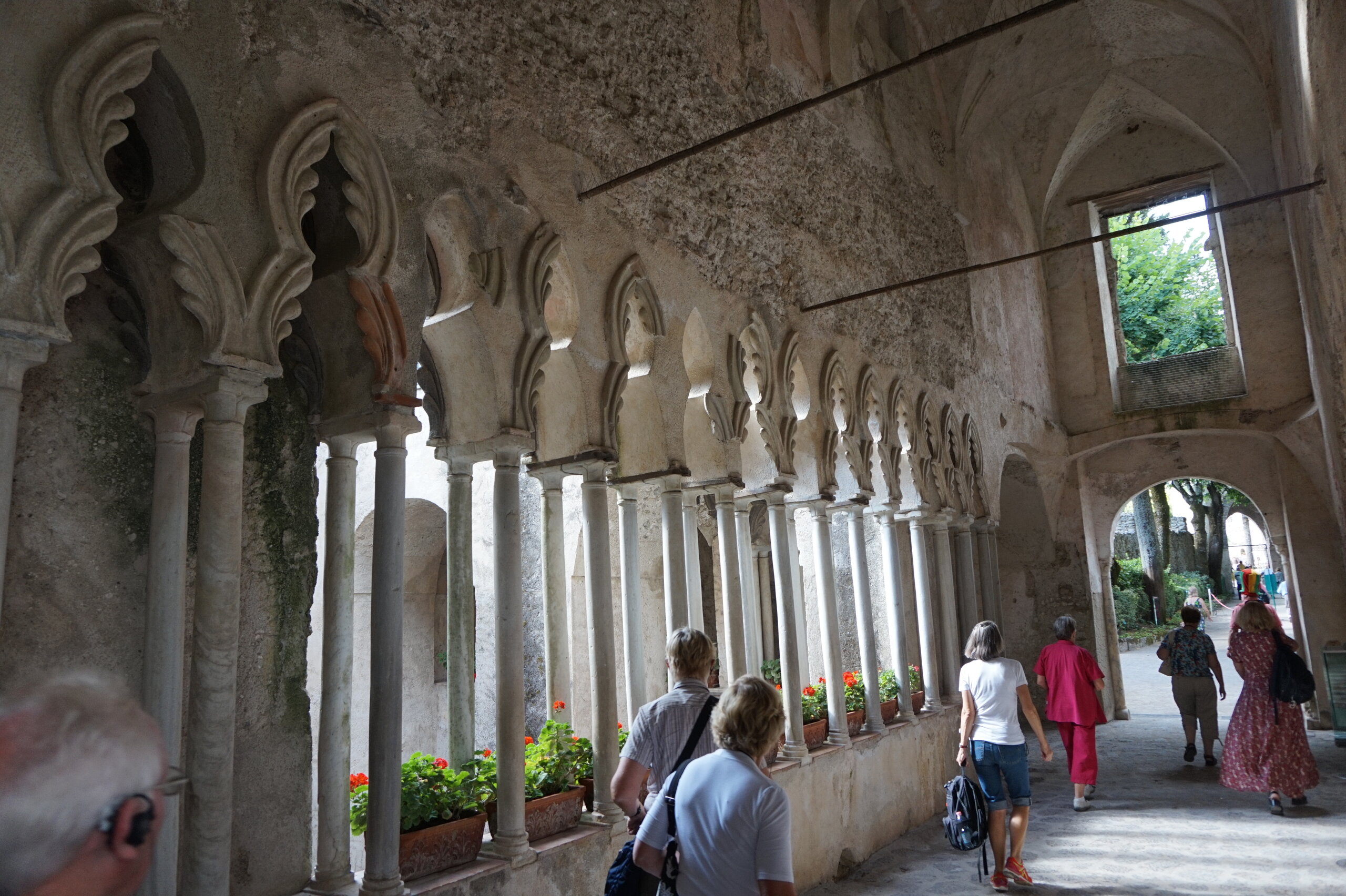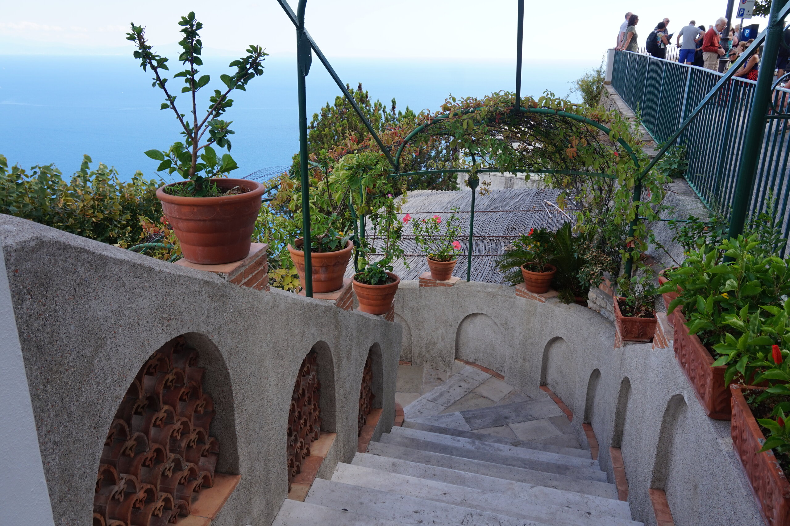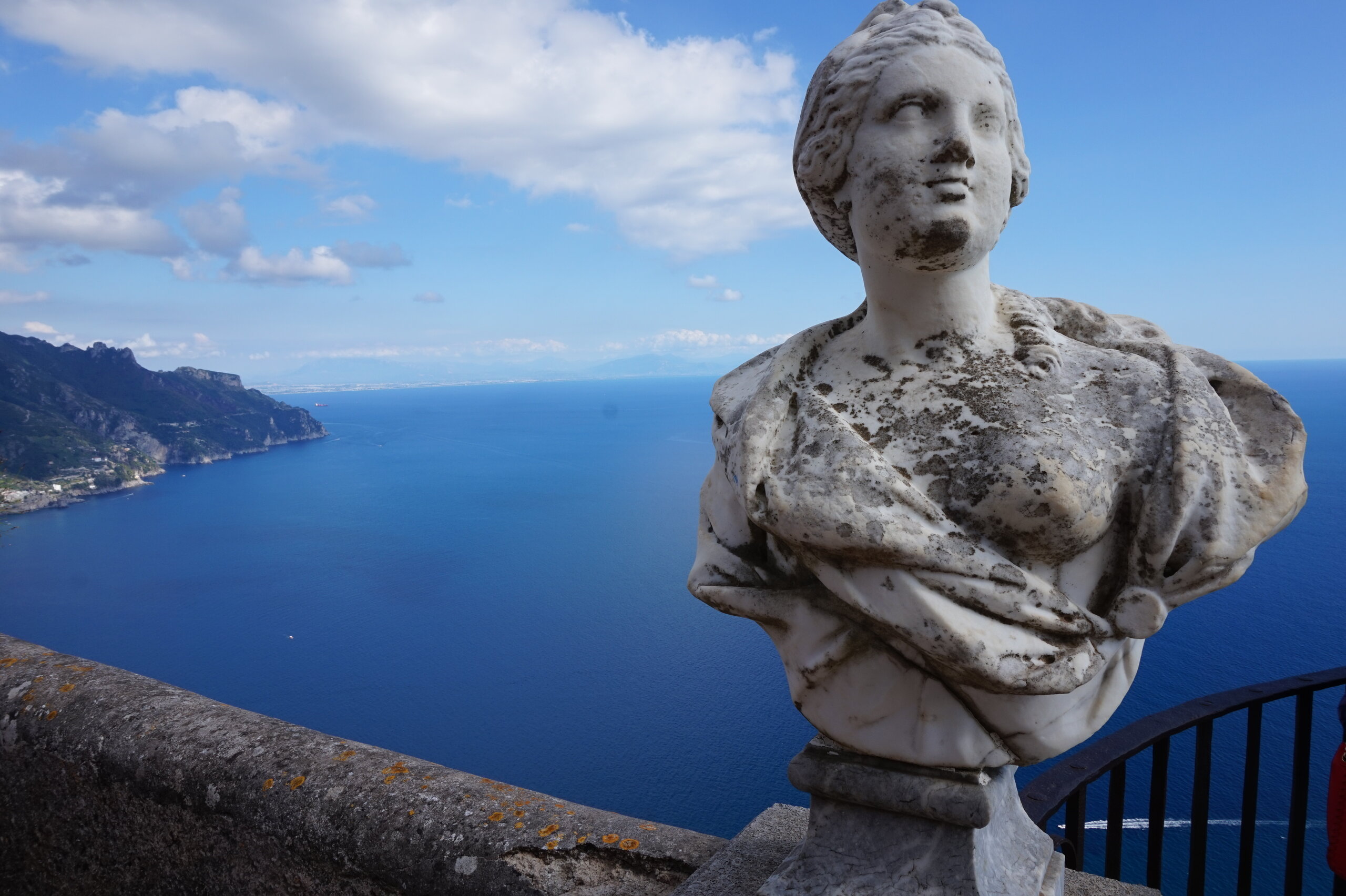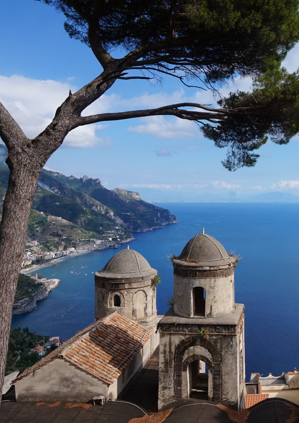 Р-Равелло. Это для меня одно из самых красивых мест в Италии. Высоко в горах над Амальфи, защищенный неприступными скалами и мощными стенами, в зарослях лимонных рощ, кроется небольшой городок. Когда-то здесь жили местные богачи, нажившие состояния на морской торговле. Они покинули шумные прибрежные поселения и забрались в поднебесье подальше от суеты и опасностей пиратского промысла. Ездили в Равелло с одногрупницей из Амальфи. Думали поехать на такси, с нас запросили 130 евро( с ожиданием 1,5 часа). Решили, что очень дорого и пошли на остановку автобуса. Итого туда-обратно-2,40 с человека. Автобусы ходят часто, иногда интервал5-15 минут. И 15 минут в дороге, любуемся сногсшибательными видами Амальфитаны. Мы вышли вот из этого тонеля, что посередине. Идём мы на Виллу Руфоло вот в эту арку справа. Тридцатиметровая трёхъярусная башня Торре Маджоре. На неё можно подняться, но я об этом не знала, да и времени у нас очень мало. Руфоло – знатное и богатое итальянское семейство, на протяжении многих лет игравшее большое значение в жизни Равелло. Во второй половине XIII века Руфоло построили прекрасную виллу на естественной террасе на высоте 350 метров над уровнем моря. Теперь Вилла Руфоло - один из главных символов Равелло. Почти двести лет до середины XIX века вилла была заброшена и находилась в полном запустении, пока в 1851 году её не приобрел коллекционер, искусствовед и любитель природы Френсис Невилл Рид, шотландец по происхождению. Благодаря Риду близ виллы появился прекрасный сад, в котором владелец постарался отразить суть эпохи романтизма. Открыточный вид Амальфитаны И ещё одна вилла Вилла Чимброне расположилась на скалистом утесе Чимброниум, от которого она и получила свое имя. Первичный особняк был построен в 11 веке, в период расцвета Равелло, и позднее был несколько раз перестроен. Вилла переходила из рук в руки . В 1904 году английский политик Эрнест Беккетт выкупил виллу и приступил к проекту масштабной реконструкции здания и сада. Он тяжело переживал смерть любимой жены и по совету друзей уехал лечить душевную травму в Италию (неплохой совет, а?) Амальфитанское побережье сразило своей красотой англичанина, и он остался здесь навсегда. Именно по его инициативе здесь были сооружены бойницы, террасы и крытая галерея. Особняк сочетает в себе элементы готической, норманнской, мавританской и венецианской архитектуры. Сегодня это фешенебельный отель , однако вход в сад открыт для всех желающих за 7 евро Но все едут на виллу Чимброне не за архитектурными изысками, а за великолепными видами, которые открываются из ее сада. Можно сказать безо всякого преувеличения, что эти виды – одни из самых лучших на всем Амальфитанском побережье. Через аллею Изобилия мы попадаем на Террасу Бесконечности. Не смогу описать лучше, чем автор книги «Я люблю Капри» Дж. Белинда -«… Церера, богиня плодородия встречает меня в конце аллеи и направляет в арку, откуда открывается самая потрясающая панорама, какую только доводилось мне видеть: длинный широкий балкон, где в ряд гордо выстроились 7 бюстов, и их силуэты четко выделяются на фоне царственных гор и моря цвета индиго…» И вот эти захватывающие дух виды! Скала нависает над резко спускающимся побережьем, где на террасах растут самые ароматнные и крупные лимоны в мире. Как хотелось всё это запомнить, впитать в себя, 