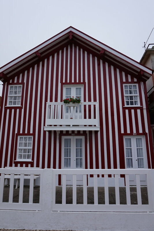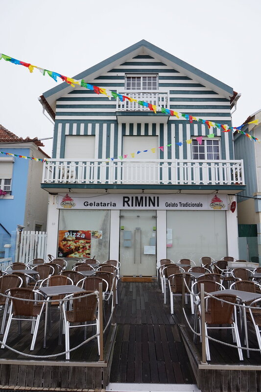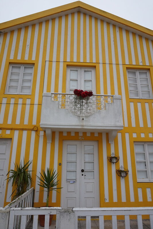 Хндзореск-Кошта-Нова. Португальский приморский городок с разноцветными полосатыми домиками. Домики выкрашены вертикальными полосками двумя цветами, один из которых белый. Остановка в виде волны Погуляли вдоль залива. Приезжали сюда из Авейру. Очень живописный городок