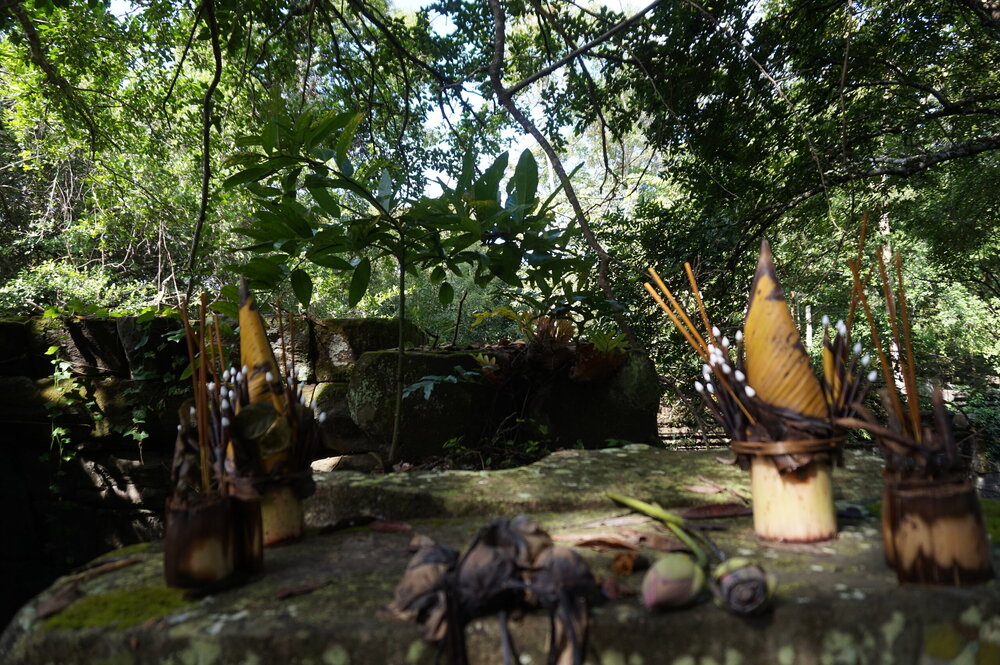 А после обеда(С обеда фото нет, только одно фото ресторана. Но все обеды в Камбодже были вкусные) нас ждет ещё один храм, который входит в Большой круг Ангкора-миниатюрный Бантей Срей. Он отличается от всех других храмов Ангкора, и как по мне- это самый красивый храм. Бантей Срей построен в десятом веке, несколько столетий здесь происходили богослужения, а в 15 веке Кхмерская империя распалась, и храмы были заброшены. А обнаружен этот храм позже остальных, лишь в 1914 году. Строение посвящено индуистскому богу Шиве, в честь которого строили храм и возводили лингу в центральном святилище. Позже название поменяли на Banteay Srei, дословно — «Цитадель женщины». Бантей-Срей построен в основном из твердого красного песчаника. У этого материала есть преимущество: он легко поддается обработке, поэтому на нем можно делать резьбу, как по дереву. Этим и воспользовались архитекторы при создании украшений и детализированной резьбы на стенах. Глубокий розоватый оттенок камня выделяет его среди остальных храмов Ангкора. Для стен ограждения и некоторых элементов использовались кирпич и латерит. Изысканная резьба покрывает стены словно гобелены. Бантей Срей - единственный из ангкорских храмов, построенный не монархом, а царским сановником Яджнявараха в своей личной вотчине городе Ишварапура. На найденной на территории храма стеле написано, что Яджнявараха был учёным и филантропом, который помогал нищим, страждущим, больным и невинным. Также с ее помощью удалось установить точную дату постройки храма - 967 год Вместе с традиционным, тонко выполненным декоративным орнаментом, включающим изображения божеств, мифологических существ, апсар, животных и растительные узоры, здесь присутствуют и сюжетные рельефы, воспроизводящие сцены из «Махабхараты» и «Рамаяны».