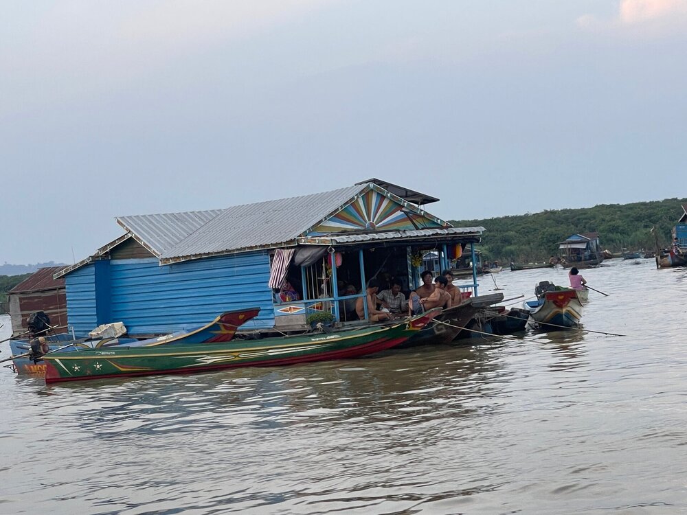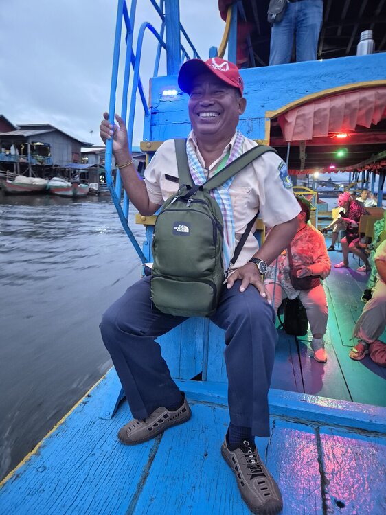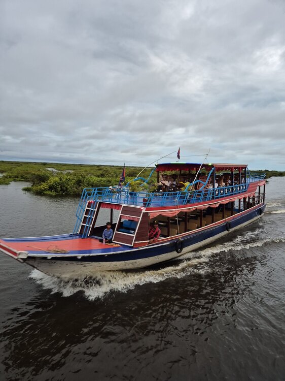 И последний объект в Камбодже-озеро Тонлесап. Это крупнейшее озеро Юго-Восточной Азии. Во время сезона дождей, с июня по октябрь, озеро увеличивается в 5 раз, что делает его важнейшим источником пресной воды и природных ресурсов. 27 тысяч кв.км в сезон дождей, и называют его внутренним морем. Озеро и прилегающие территории- часть биосферного заповедника, объект ЮНЕСКО. Более 100 видов водоплавающих птиц, пресноводных рыб и других животных водятся на озере Тонлесап. Местные жители адаптировались к жизни на воде, создавая плавучие деревни. Люди живут в домах на сваях или на плавучих платформах и перемещают свои жилища от уровня воды. Мы посетим деревню Кампонг Плук(жители деревни кампонг плукане). Основным занятием жителей является рыболовство. В деревне есть школы, храмы и магазины, работающие на воде. Наш гид Александр –очень интересный человек и отличный гид. Когда слышала отзывы о нём, говорили, что чересчур увлекающийся. Вот это и проявилось в последний день. Слишком много времени мы провели в экскурсии по храмам Кох Кер, что к озеру Тонлесап мы приехали на закате. А ещё должны были поплавать на каноэ через природные тоннели мангровых зарослей. Уже не успели, хорошо на кораблик не опоздали. Я всю прогулку просидела на носу, но фотографии в темноте получились не очень. 20251101_133636.mp420251101_133707.mp420251101_133812.mp420251101_134027.mp420251101_134222.mp4 20251101_134509.mp420251101_134706.mp4 Вернулись в Сиемреап под дождём. Беру зонт и иду на рынок, так как я ещё не купила главный сувенир из Камбоджи- перец из провинции Компот. Пишут, что в его аромате нотки эвкалипта и цитруса. Чёрный- самый популярный, сушится на солнце, имеет интенсивный пряный вкус и густой аромат. Белый- менее острый, с тонким ароматом. Дома часто беру мельничку просто понюхать- очень нравится запах. И ещё Александр рассказал про аутлет Zando и даже дал мне свою бонусную карту, сказал, что сам там одевается. В темноте, под дождём иду туда. Кое что купила, но ожидала от магазина большего. Выбор мужской одежды был неплохой, а вот женской так себе. Утром следующего дня покидаем Камбоджу. Поначалу мы должны были пересекать границу на автобусе, но очередной конфликт с Таиландом и сухопутная граница закрыта. Едем в аэропорт в Сиемреапе, его построили китайцы, как и дорогу к нему, и деньги ещё 8 лет будут идти в Китай. Аэропорт современный, просторный. Всего час в небе и мы в Бангкоке.