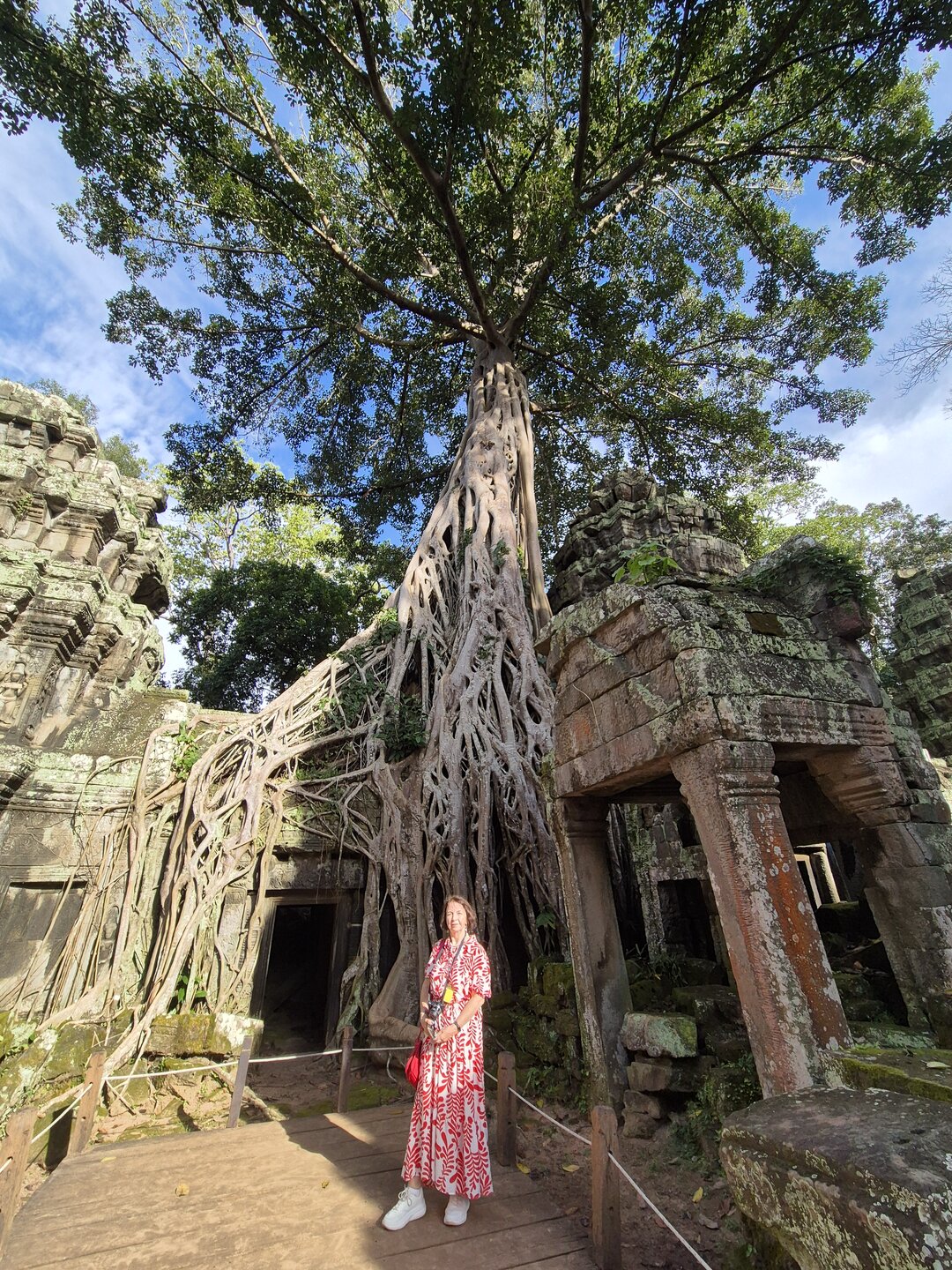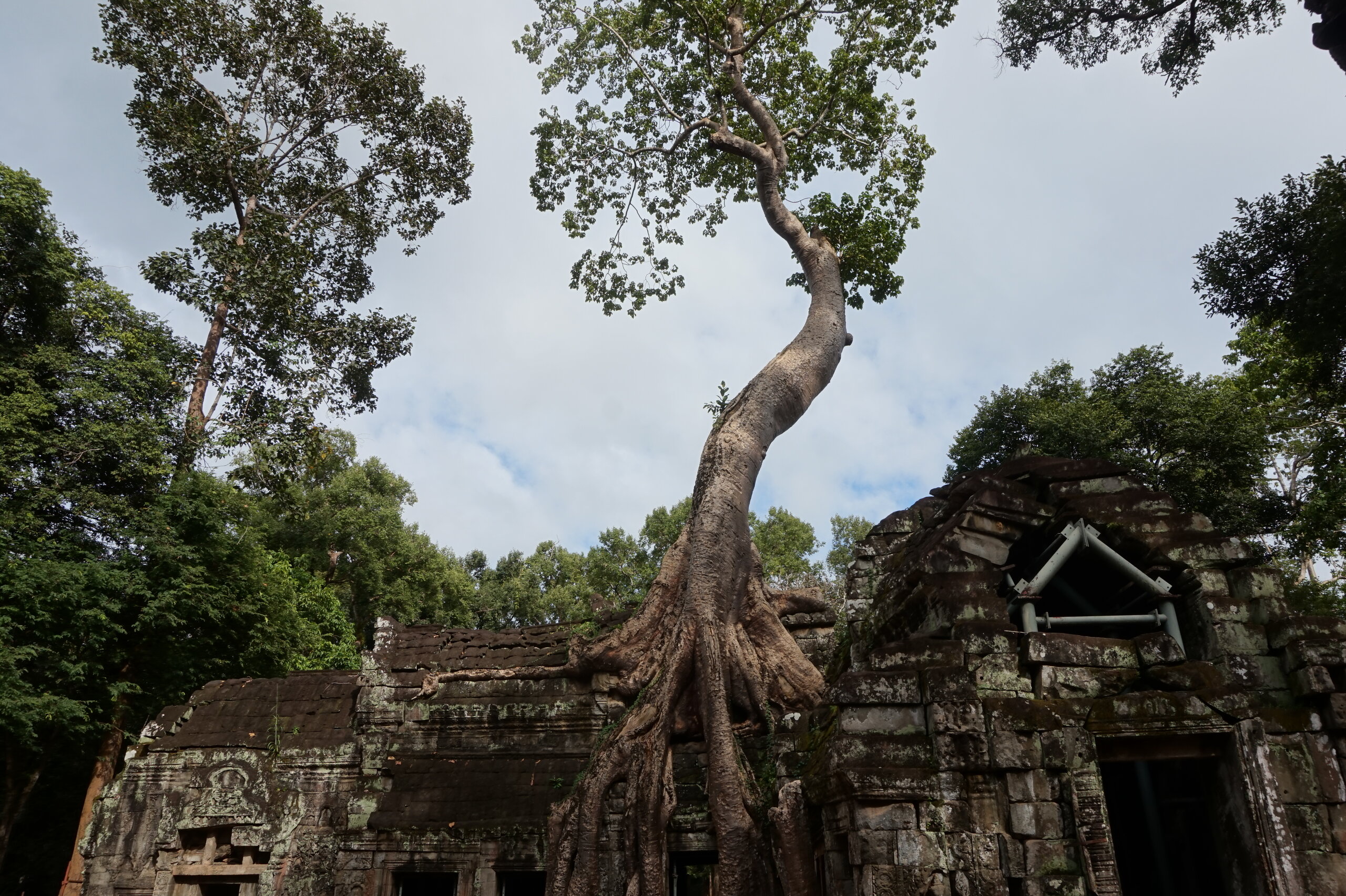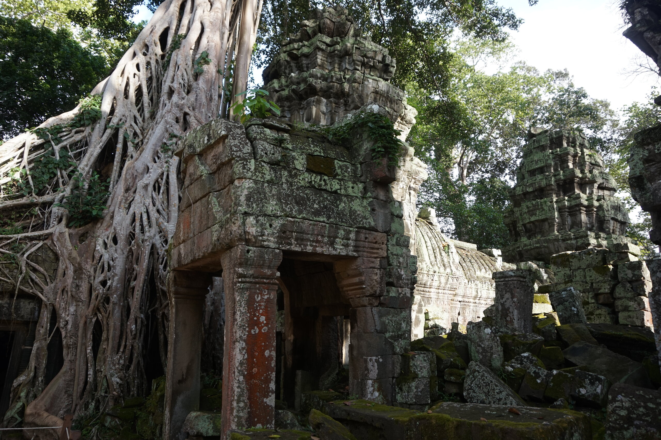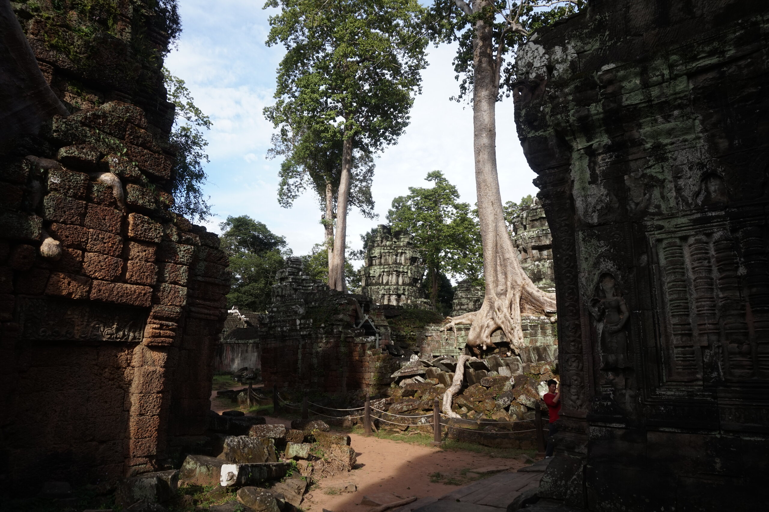 Дальше у нас обед, опять много блюд, сфотографировала только первые. А после обеда идём в джунгли. А в джунглях храм, который многие видели в фильме: Лара Крофт: расхитительница гробниц. Это Та Пром. Храм-монастырь построен ДжаваярманомVll в честь своей матери и освящен им лично в 1186 году. Идем за Александром, без него бы точно заплутали в этом лабиринте построек.