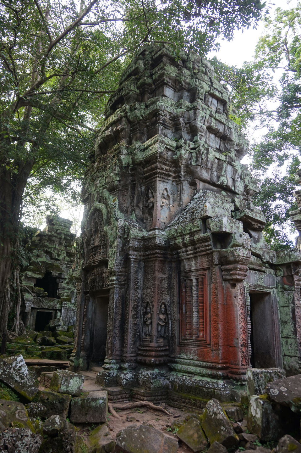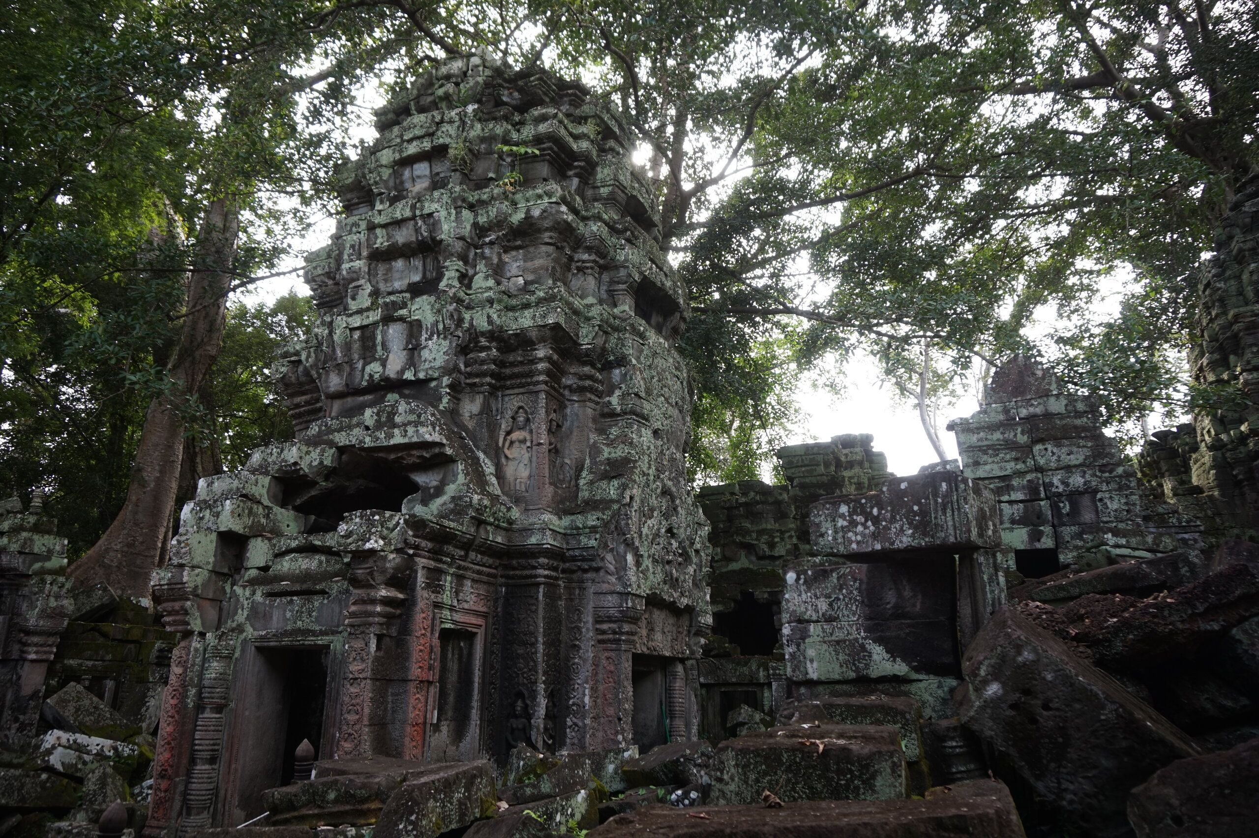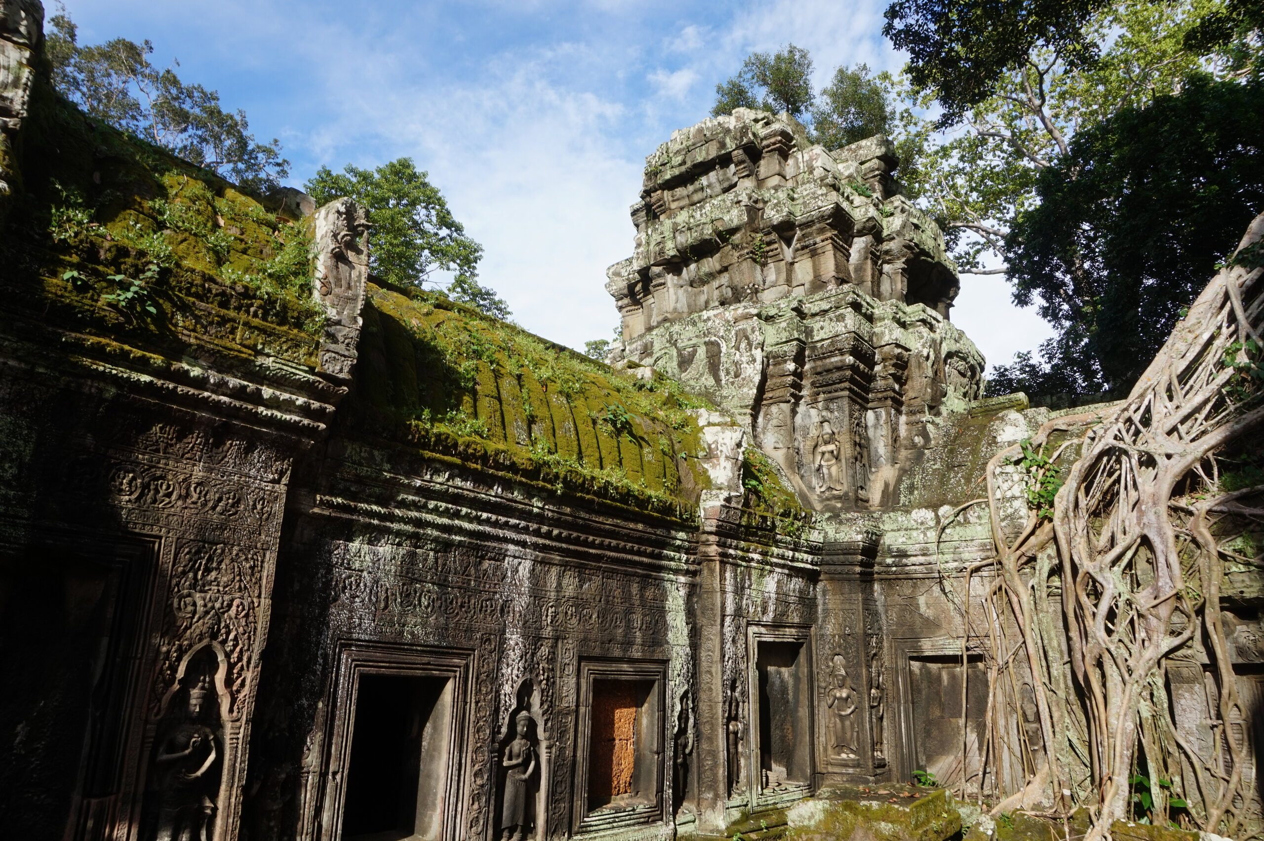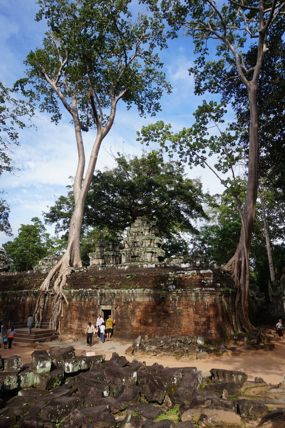 Дальше у нас обед, опять много блюд, сфотографировала только первые. А после обеда идём в джунгли. А в джунглях храм, который многие видели в фильме: Лара Крофт: расхитительница гробниц. Это Та Пром. Храм-монастырь построен ДжаваярманомVll в честь своей матери и освящен им лично в 1186 году. Идем за Александром, без него бы точно заплутали в этом лабиринте построек.