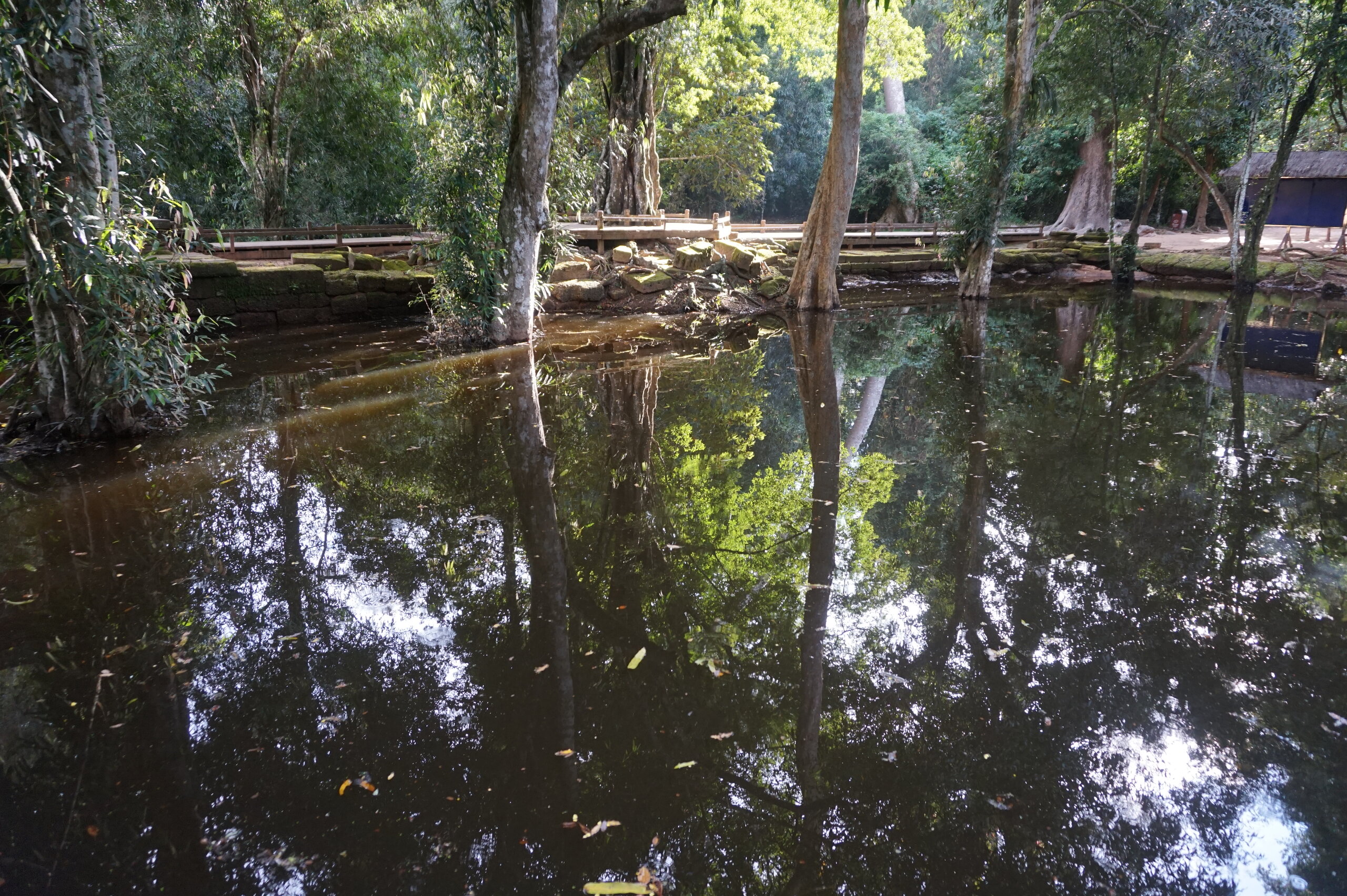 Мы продолжаем прогулку по Ангкору. Следующий храм Бапуон. Он представляет собой пятиступенчатую пирамиду. Построен в середине 11 века, за 100 лет до Ангкор Вата. В него не поднимались. И вот уже скоро увидим самое большое религиозное сооружение в мире. На пути к нему. Храм окружен рвом с водой. По обе стороны от главной аллеи два симметричных каменных здания- это библиотеки. Использовались для медитации и хранения священных рукописей. И отсюда уже открывается самый лучший вид на Ангкор Ват.