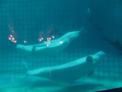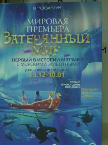 Немного обещанных фото из Москвариума: Перед входом стоит замечательная елка: Зона, где можно погладить проплывающих мимо тебя морских обитателей: Если зайти внутрь этого сооружения, то можно почувствовать себя так, будто находишься внутри косяка рыб: Часть экскурсии проходит в тоннеле внутри аквариума. Вот тут-то и можно увидеть проплывающую над тобой акулу во всей ее красе: Очень много аквариумов с экзотическими рыбками и морскими обитателями: Если немного подождать, то получится увидеть белух и касатку (на заднем плане (за сеткой) плавают дельфины (фотографировать можно только без вспышки, чтобы не нанести вред здоровью рыб и млекопитающих) А еще на новогодние праздники можно посмотреть новое шоу. Сфотографировала афишу, вдруг кому-то пригодится:
