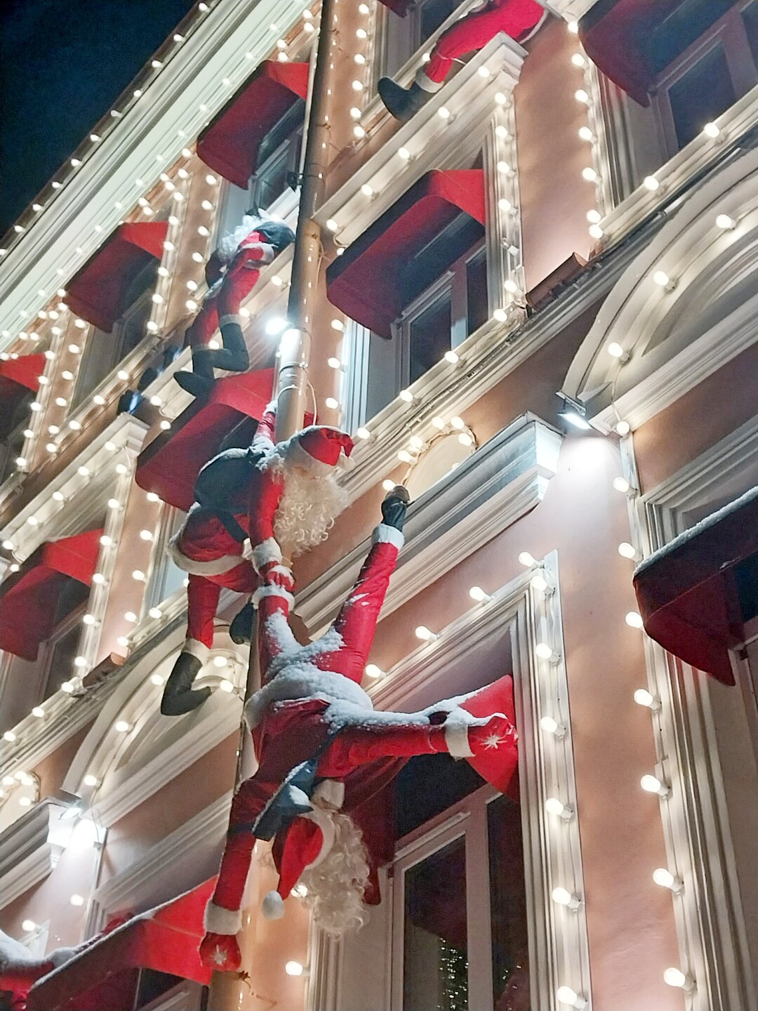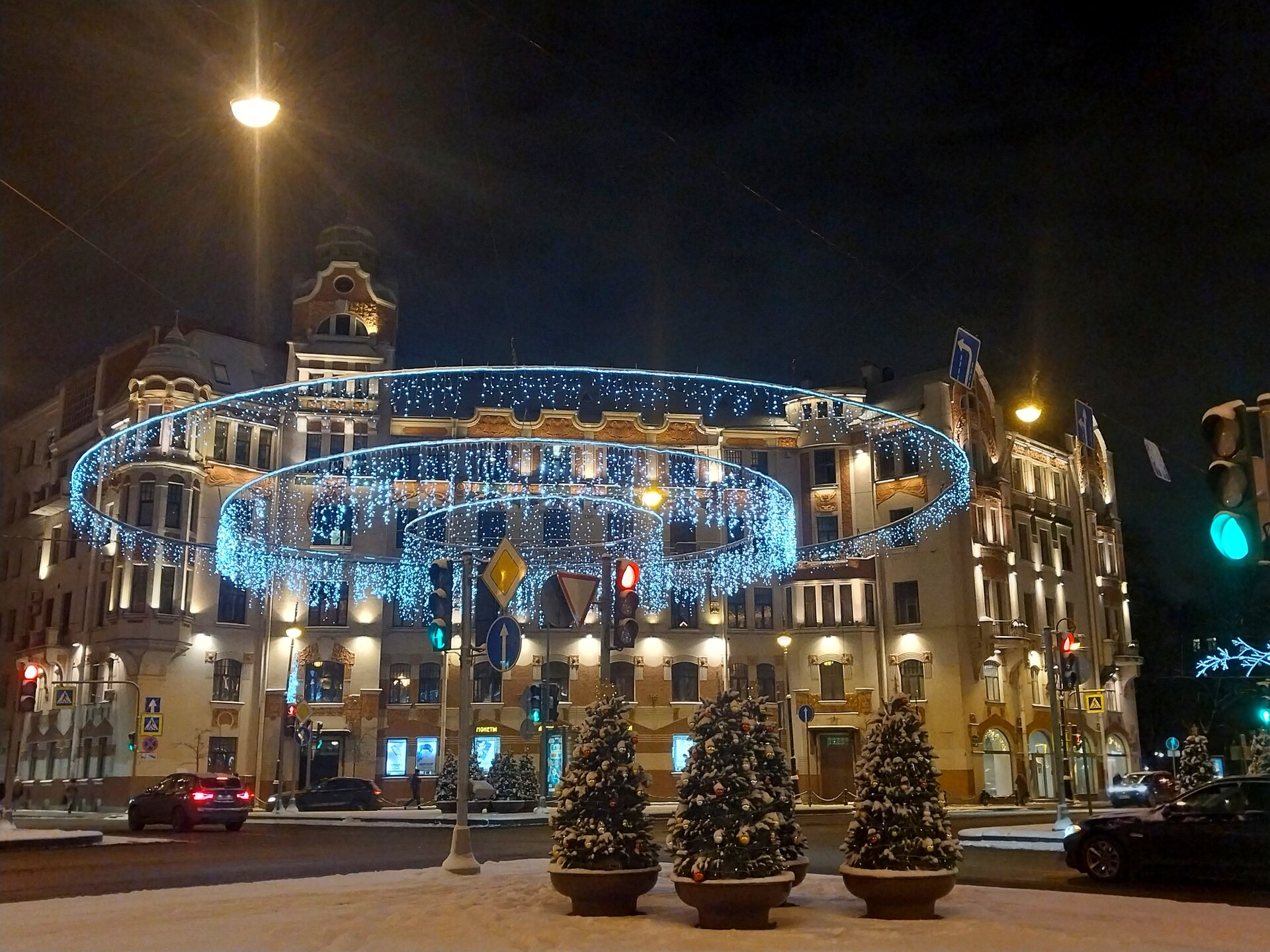 Немного праздничного дневного и вечернего города. Несмотря на полное отсутствие снега, дождь и плюсовые температуры атмосфера праздника всё равно витает в воздухе.