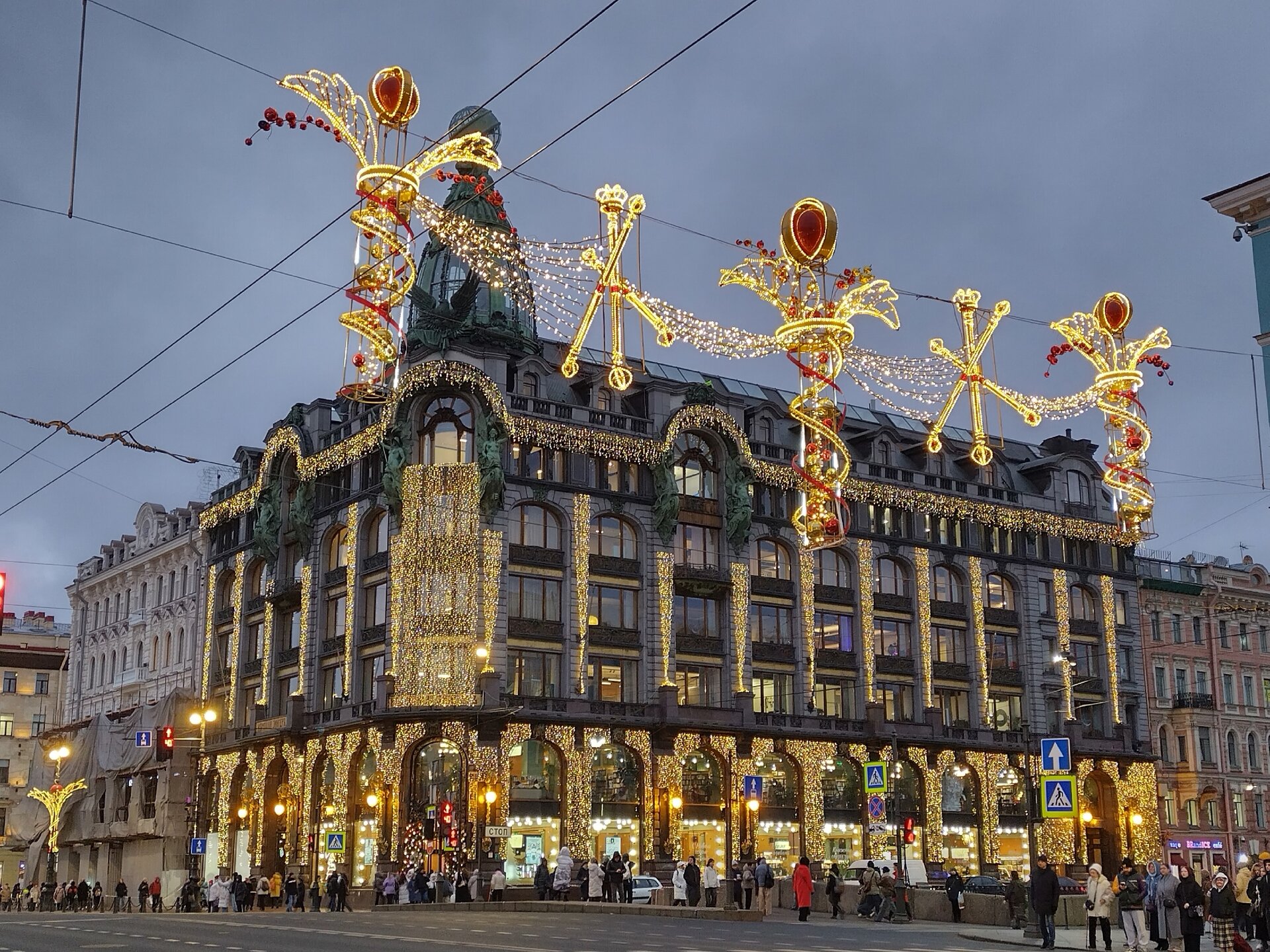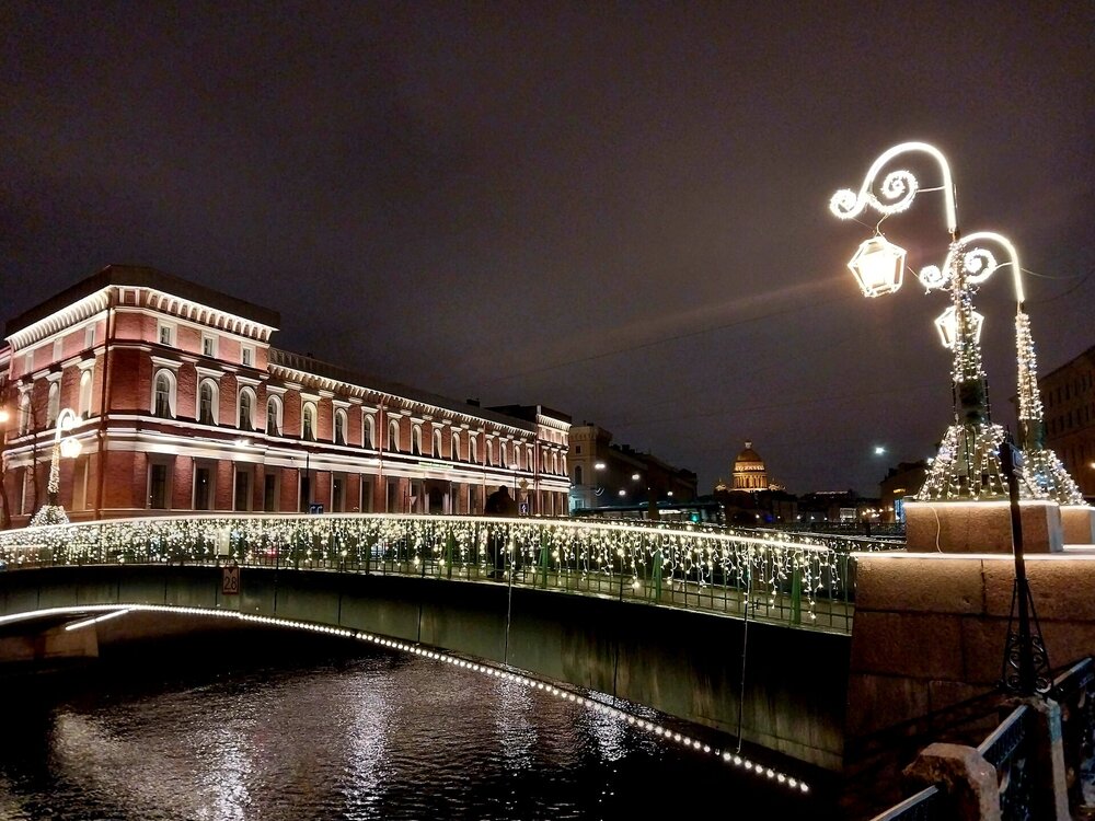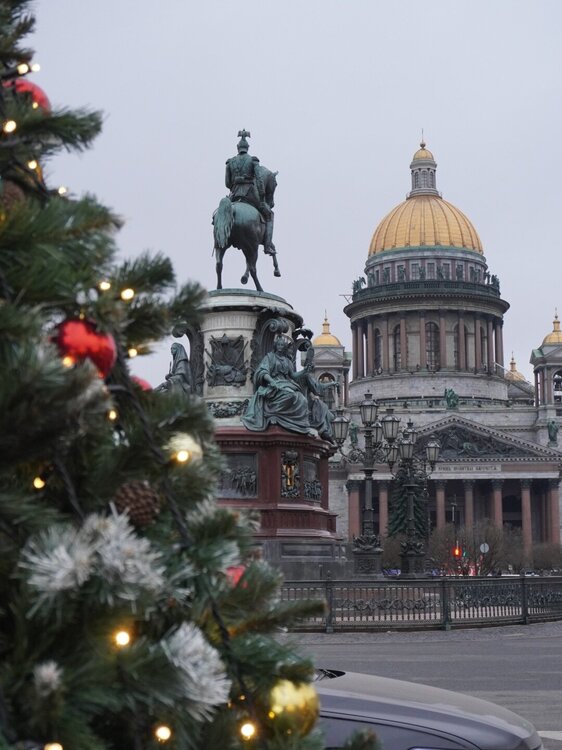 На связи Северная столица💮🤩🤩 В этом году похоже снова не сильно разнообразно с украшением главного проспекта Санкт -Петербурга. Вот только ёлка у Гостиного двора украшена шарами с надписью "ВТБ". Традиционный Зимний сад у Мариинского дворца тоже без особых изменений в этом году. Но нашлась креативная ёлка во дворе Музея искусства Санкт-Петербурга XX-XXI веков на канале Грибоедова. И конечно мосты у Мариинского театра😍