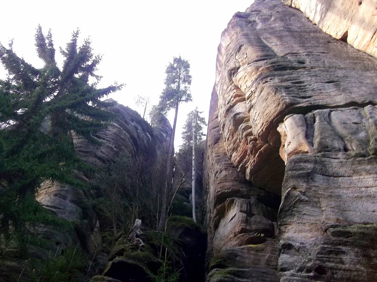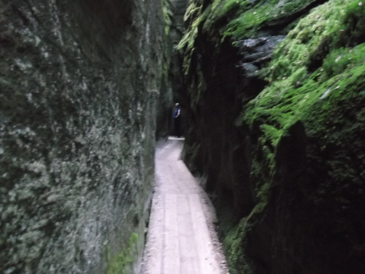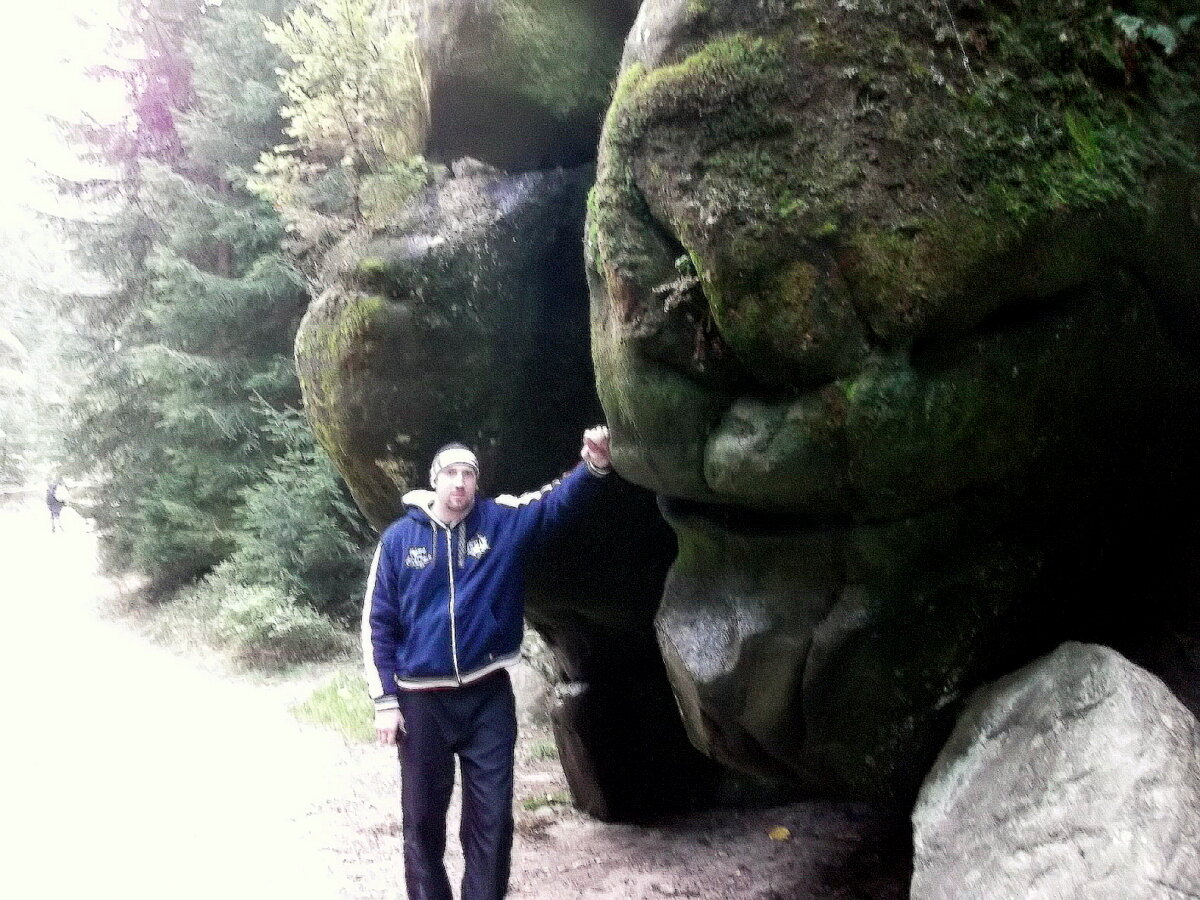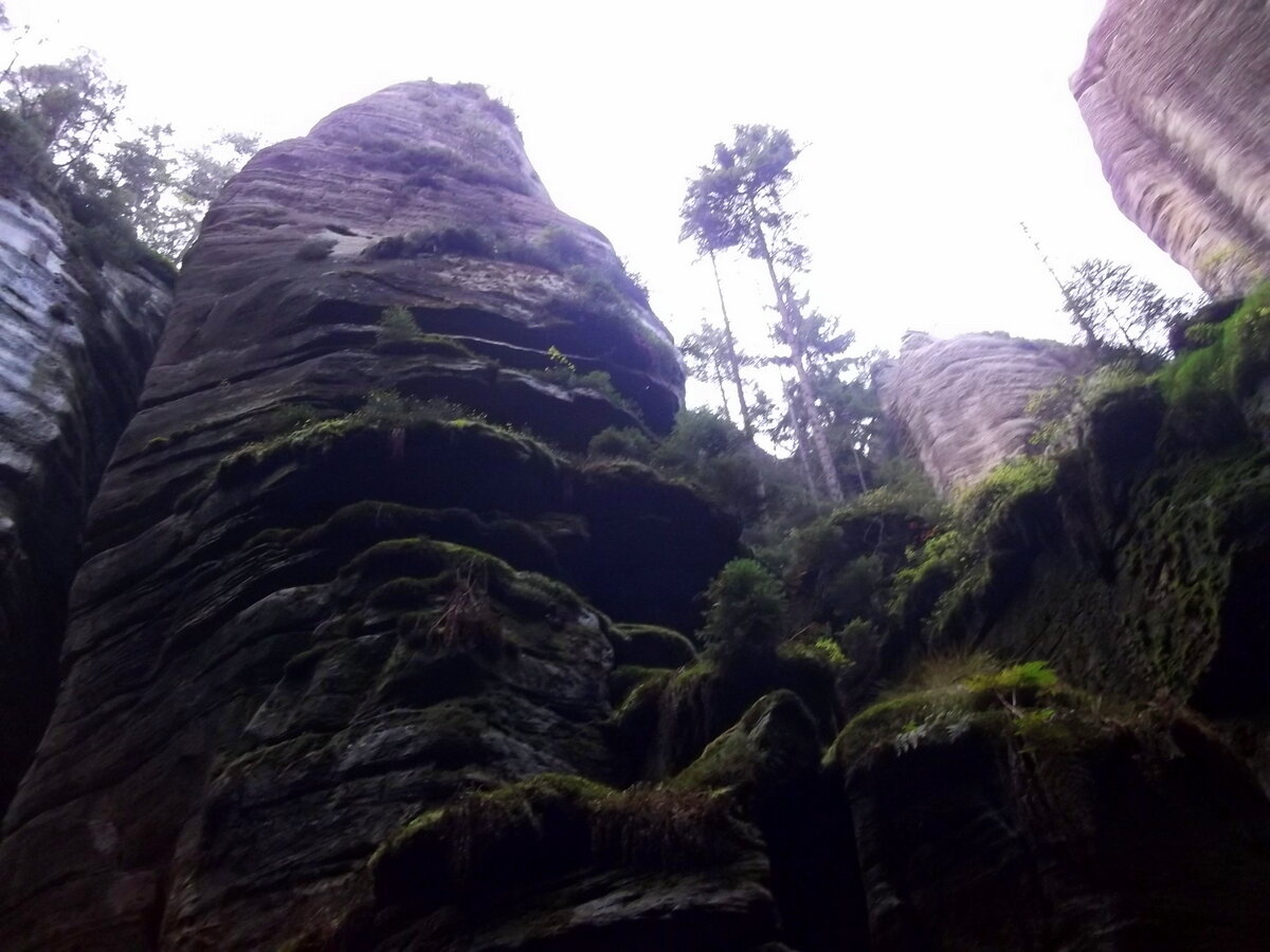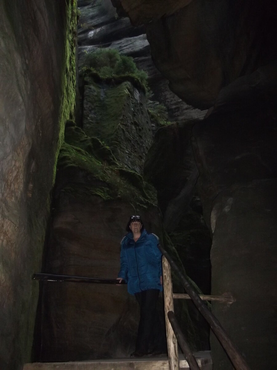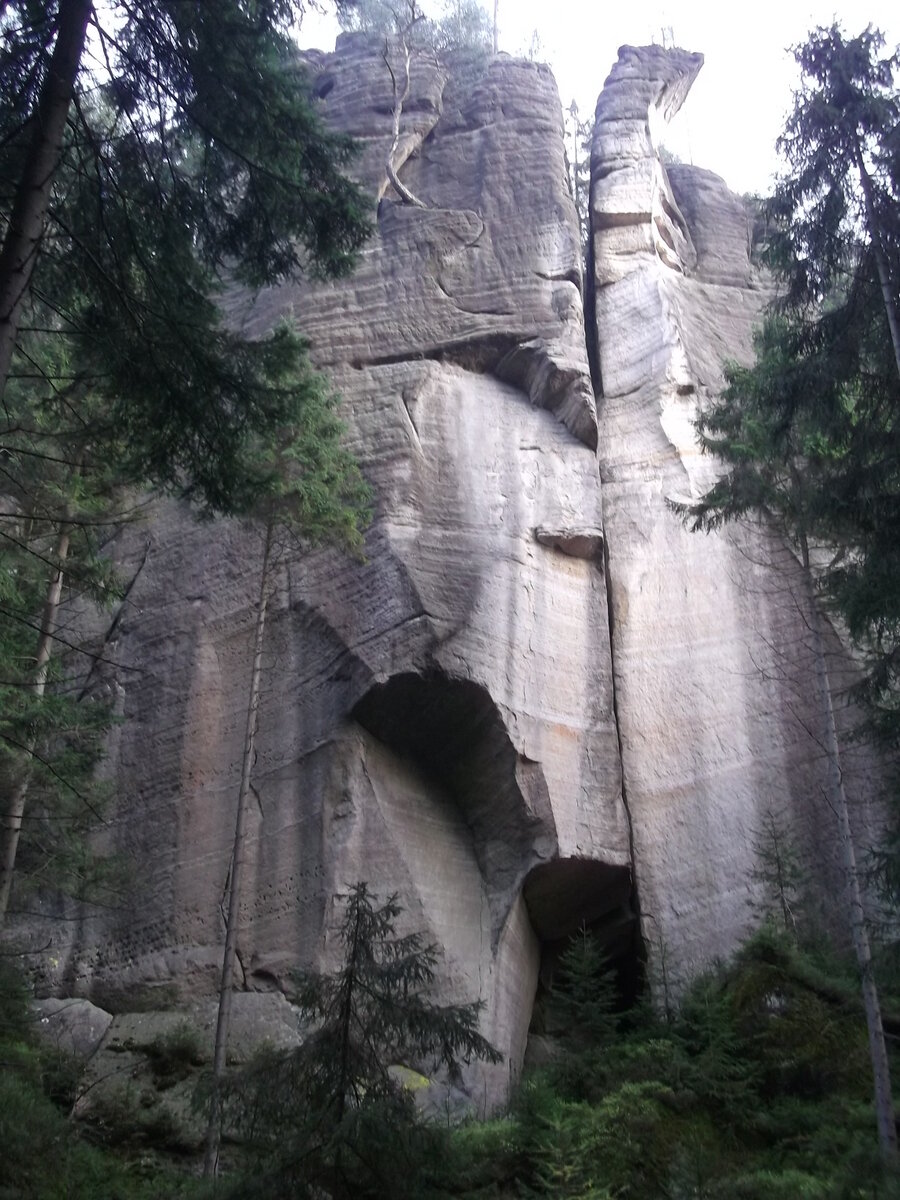 ТЕПЛИЦКИЕ СКАЛЫ - Teplické Rok město. Окончание. Обе части этого каменного заповедника соединяет Волчье ущелье с пешей тропой, однако пользуются ею в основном знатоки пешего туризма, и даже проводники лишний раз не рискуют по ней водить своих клиентов, предпочитая в основном переезжать на транспорте между входами, и следовать только лишь обозначенными в путеводителе маршрутами. После обеда Влад снова спросил - едем ли мы дальше? Впору было сказать, что устала, но жажда приключений не отпускала. Уйти с полпути было не по правилам игры. Световой день был практически на излете, и очень скоро заповедник и всех на его дорожках, ждала кромешная мгла. Огромные деревья не пропускали ни луча света на песчаные дорожки. Это было заметно в Адршпахе на отдельных участках и каньоне Сибирь со скалами-великанами. Та же история повторилась в Теплице на Метуи, причем с самого начала пешеходной тропы. Оставив машину на парковке на входе в Теплицкую часть, Влад взял с собой фонарик из машины и сразу предупредил, что возвращаться мы будем в полной темноте, весь трек не пройдем-не успеем и вернемся сразу же, как только начнут сгущаться сумерки, чтобы успеть спустится по влажным и мшистым булыжникам скалистого склона. Естественно, ходить в лес и скалы на ночь глядя, мне не приходилось. И смутно представлялась эта самая грядущая темнота, когда еще и намека на вечер не было. Да, время для меня остановилось и больше не работало в этом отдаленном от цивилизации регионе. Я была счастлива, что получилось добраться из Праги, и просила его только об одном - чтобы ни случилось на прогулке - донести и вернуть меня обратно, в пансион к пану Ярославу. Только представьте себе, что первые посетители пришли в этот заповедник в 1739 году!!!, и с тех самых пор не зарастает народная тропа в Адршпах и Теплице. По ней гуляли разбойники и авантюристы, поэты и художники, императоры и конечно же ТУРИСТЫ, которые всякий раз, оставляли на стенах скального города свои автографы. Приезжали неоднократно и киношники, ибо на мой субъективный взгляд, лучшей локации для натурных съемок сказок не найти во всей Европе. В ареале заповедника разрешен лицензированный альпинизм. Но судите сами, коли каждый год увеличивается количество памятных табличек в мемориальной часовне, кто будет покорять вершины комплекса? Не гранитного, и не каменного, на минуточку, а песчаного. Когда каждый уступ на высоте может стать последней секундой жизни? Одну такую семью скалолазов я встретила под скалой в Аршпахе. Они готовились к восхождению, имея рядом с собой маленьких детей. Отчаянные люди. Сказочность здесь действительно уступает место реальности, и не потому, что наступает вечер. Первозданности природы больше, и гораздо меньше чувствуется присутствие человека, вот как-то туда он не слишком проник, хотя все это рядом и очень близко буквально три-пять километров. Выглядки-смотровые площадки в скалах тоже были, но на такие подъемы уже не оставалось ни единого шанса. Чем дальше тем сказочней становилась местность, усыпанная гигантскими валунами на склонах среди высоченных деревьев. Один из главных теплицких порталов стал завершающим в осмотре и стоило поторапливаться, чтобы выбраться из каменного лабиринта Обнимашки на прощание и пора бежать в настоящее. Так интересно, что же там было дальше? До чего дойти не удалось??