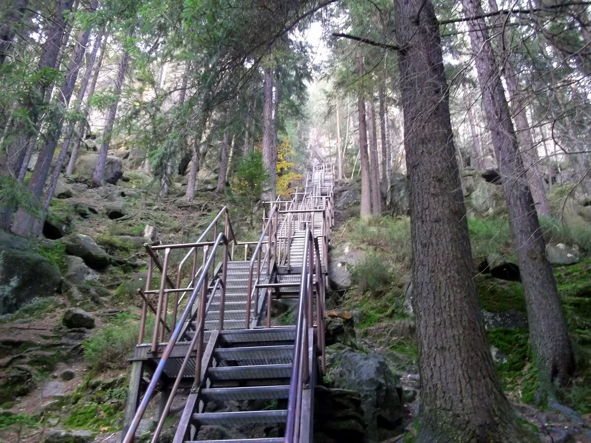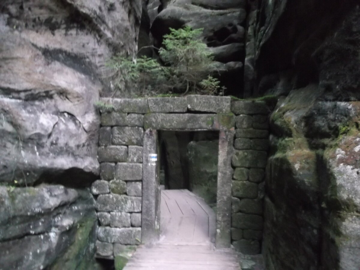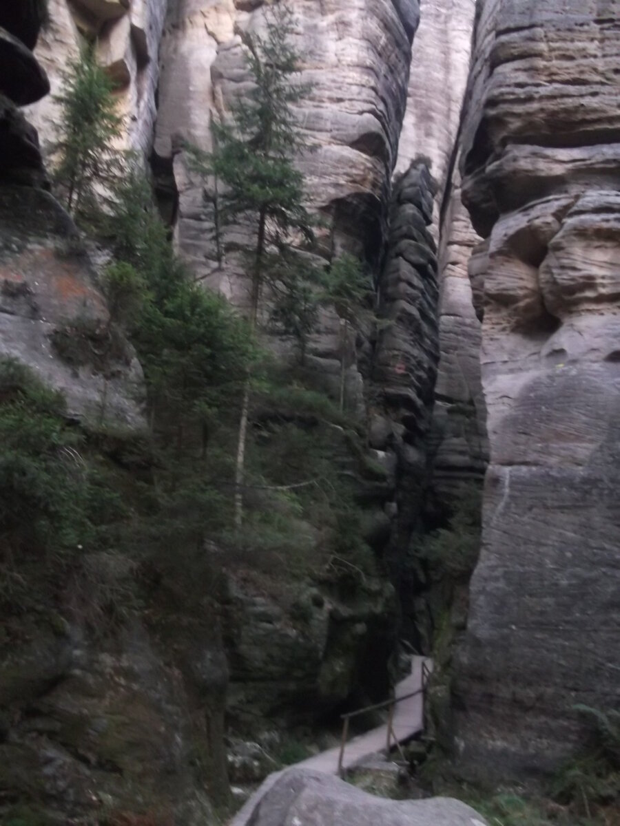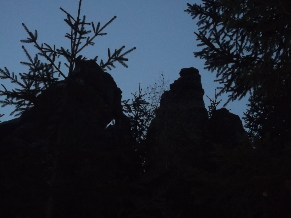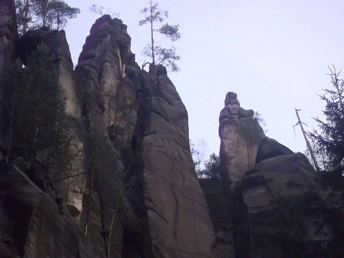 ТЕПЛИЦКИЕ СКАЛЫ - Teplické Rok město. Окончание. Обе части этого каменного заповедника соединяет Волчье ущелье с пешей тропой, однако пользуются ею в основном знатоки пешего туризма, и даже проводники лишний раз не рискуют по ней водить своих клиентов, предпочитая в основном переезжать на транспорте между входами, и следовать только лишь обозначенными в путеводителе маршрутами. После обеда Влад снова спросил - едем ли мы дальше? Впору было сказать, что устала, но жажда приключений не отпускала. Уйти с полпути было не по правилам игры. Световой день был практически на излете, и очень скоро заповедник и всех на его дорожках, ждала кромешная мгла. Огромные деревья не пропускали ни луча света на песчаные дорожки. Это было заметно в Адршпахе на отдельных участках и каньоне Сибирь со скалами-великанами. Та же история повторилась в Теплице на Метуи, причем с самого начала пешеходной тропы. Оставив машину на парковке на входе в Теплицкую часть, Влад взял с собой фонарик из машины и сразу предупредил, что возвращаться мы будем в полной темноте, весь трек не пройдем-не успеем и вернемся сразу же, как только начнут сгущаться сумерки, чтобы успеть спустится по влажным и мшистым булыжникам скалистого склона. Естественно, ходить в лес и скалы на ночь глядя, мне не приходилось. И смутно представлялась эта самая грядущая темнота, когда еще и намека на вечер не было. Да, время для меня остановилось и больше не работало в этом отдаленном от цивилизации регионе. Я была счастлива, что получилось добраться из Праги, и просила его только об одном - чтобы ни случилось на прогулке - донести и вернуть меня обратно, в пансион к пану Ярославу. Только представьте себе, что первые посетители пришли в этот заповедник в 1739 году!!!, и с тех самых пор не зарастает народная тропа в Адршпах и Теплице. По ней гуляли разбойники и авантюристы, поэты и художники, императоры и конечно же ТУРИСТЫ, которые всякий раз, оставляли на стенах скального города свои автографы. Приезжали неоднократно и киношники, ибо на мой субъективный взгляд, лучшей локации для натурных съемок сказок не найти во всей Европе. В ареале заповедника разрешен лицензированный альпинизм. Но судите сами, коли каждый год увеличивается количество памятных табличек в мемориальной часовне, кто будет покорять вершины комплекса? Не гранитного, и не каменного, на минуточку, а песчаного. Когда каждый уступ на высоте может стать последней секундой жизни? Одну такую семью скалолазов я встретила под скалой в Аршпахе. Они готовились к восхождению, имея рядом с собой маленьких детей. Отчаянные люди. Сказочность здесь действительно уступает место реальности, и не потому, что наступает вечер. Первозданности природы больше, и гораздо меньше чувствуется присутствие человека, вот как-то туда он не слишком проник, хотя все это рядом и очень близко буквально три-пять километров. Выглядки-смотровые площадки в скалах тоже были, но на такие подъемы уже не оставалось ни единого шанса. Чем дальше тем сказочней становилась местность, усыпанная гигантскими валунами на склонах среди высоченных деревьев. Один из главных теплицких порталов стал завершающим в осмотре и стоило поторапливаться, чтобы выбраться из каменного лабиринта Обнимашки на прощание и пора бежать в настоящее. Так интересно, что же там было дальше? До чего дойти не удалось??