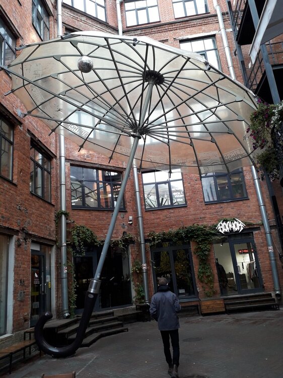 А сегодня день начался с визита к голове. С Балтийского вокзала до платформы "Университет". Далее лесом. Встретил двух очень позитивных дедов со скандинавскими палками, они меня поздравили с тем что я нахожусь в парке Сергиевка, где находится дворец Лейхтенбергских и голова. Парк выглядит заброшеным да и дворец тоже. Четыре фасада дворца разные Смотровая площадка, вид на залив От дворца тропинка влево, к ручью ну вот и она, голова. Лежит полторы сотни лет. Она упомянута в " Дневнике путешествия по России" Льюиса Кэролла в августе 1867 года. Есть версия что Александр Сергеевич писал поэму " Руслан и Людмила" под впечатлением от этой головы. В парке Вернулся на Балтийский и решил на 100 автобусе доехать до Синагоги и посмотреть шо там внутри, но меня не пустил охранник. Не знаю что смутило стража, или рюкзак, или рожа моя, но сказал что вокруг могу ходить а внутрь ни-ни. Зашёл в магазин Импровизированая стена плача Вернулся на остановку автобуса и укатил к идолам, во двор кунсткамеры. А здесь идёт ремонт и подойти к идолам нельзя. Это копии колумбийских идолов, изготовлены в 1913 году в Германии и привезены в Россию. Но началась 1- ая Мировая, затем революция, гражданская, блокада и достали их на свет Божий только в середине 60- х, а так- как они копии решили разместить во дворе. Ну а я покатил дальше, в Александровский парк. Апостол Пётр с ключами, а бывает что вандалы их крадут. 8 архитекторов жили в разное время, но автор скульптуры собрал их за одним столом и один стул свободный. Каждый желающий может составить им компонию. Палец натёрли, аж сияет Ну а дальше по Каменноостровскому пр. до Петроградской. Несколько фото. Самый узнаваемый болельщик "Зенита". Просто собачка. Следующие фотки подарков Питеру на юбилей от Франции и Азербайджана. Фантан назавается "Лебединое озеро",