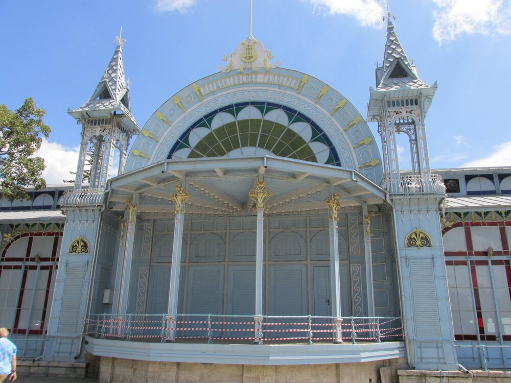 Ажурная Лермонтовская галерея Со стороны проспекта Кирова устало вытянула ножки одна из туристок Парк удивительно красив!!! Жалко, что не работал знаменитый фонтан (что-то не складывается у нас с фонтанами в этом туре 😂) Хочется посидеть в расслабленном состоянии, отдохнуть… Но мы сюда не отдыхать приехали! Поэтому собрались и побежали дальше, в Питьевую галерею, которая в нашем распоряжении на целых полчаса. Помимо воды (мало кто пил) там есть куча сувенирных лавочек, вот туда то все и кинулись. Брали всякие полезности на основе тамбуканской грязи, говорят, что только здесь ее и можно купить. Ничего не могу сказать про пользу масок и мазей, не брала, не знаю. Много серебра, тарелочек и магнитов, все как везде.