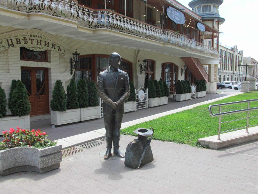 Следующим городом в нашей программе был Пятигорск. Сопровождала нас в поездке все та же Валерия. Ехать порядка часа. Сначала мы подъехали к месту дуэли Лермонтова и Мартынова Место это указано приблизительно (как я поняла из рассказа гида), но опирается на показания участников этой дуэли. Красивый ландшафтный дизайн, потрясающие виды и толпы народа (бич всех раскрученных туристических мест) Затем мы отправились к другому легендарному месту: пещере-колодцу Провал К сожалению, он был закрыт. То ли всегда по понедельникам, то ли мы просто такие «везучие», не знаю. Удалось только полюбоваться на гениального Остапа а вот природные красоты ожидают следующего визита.