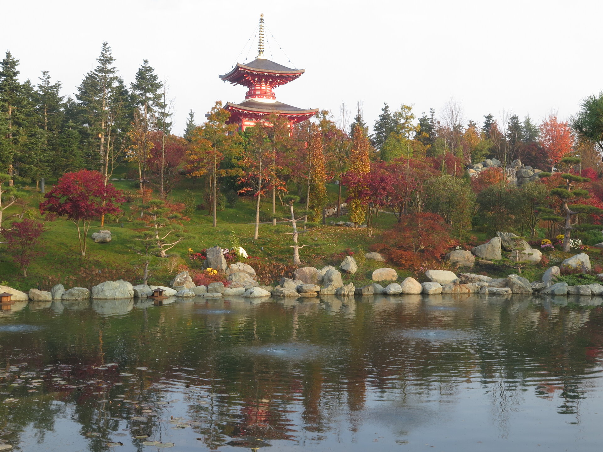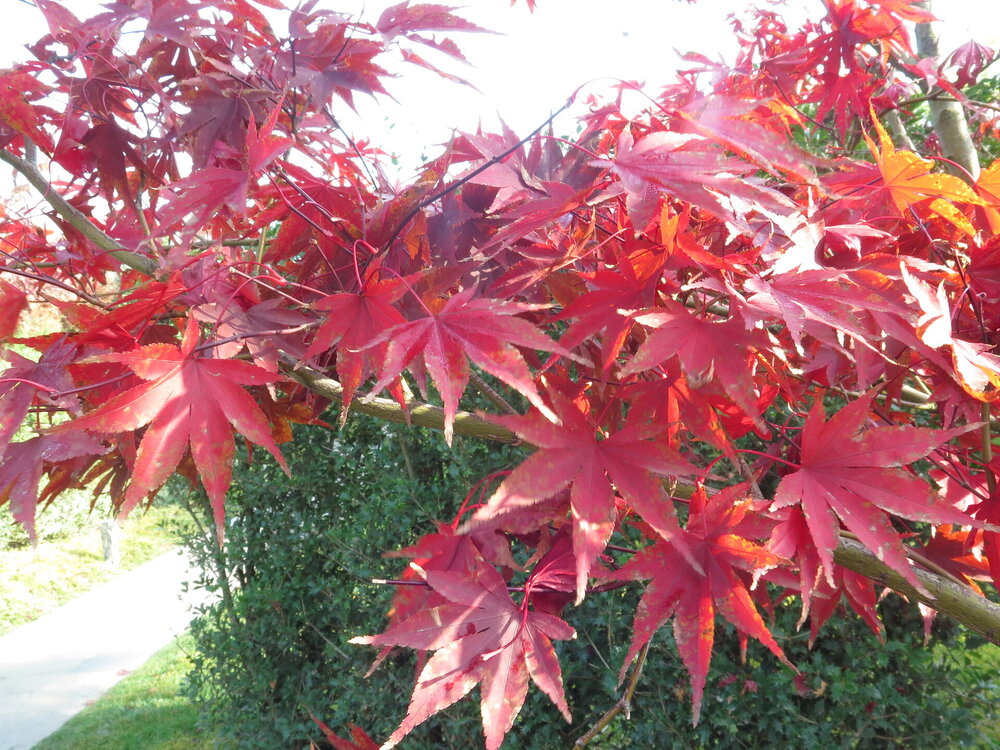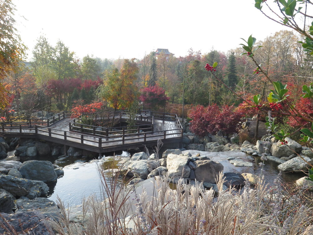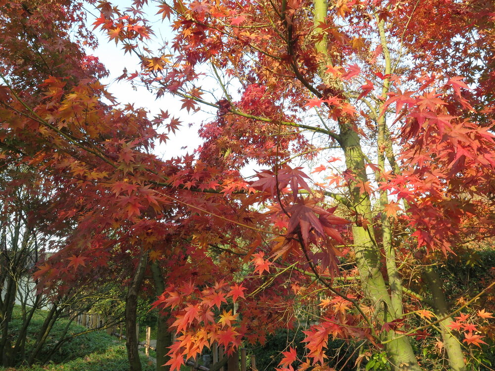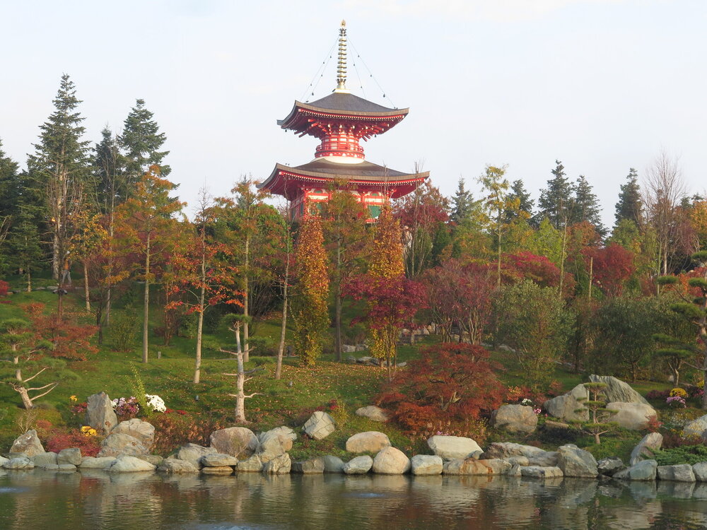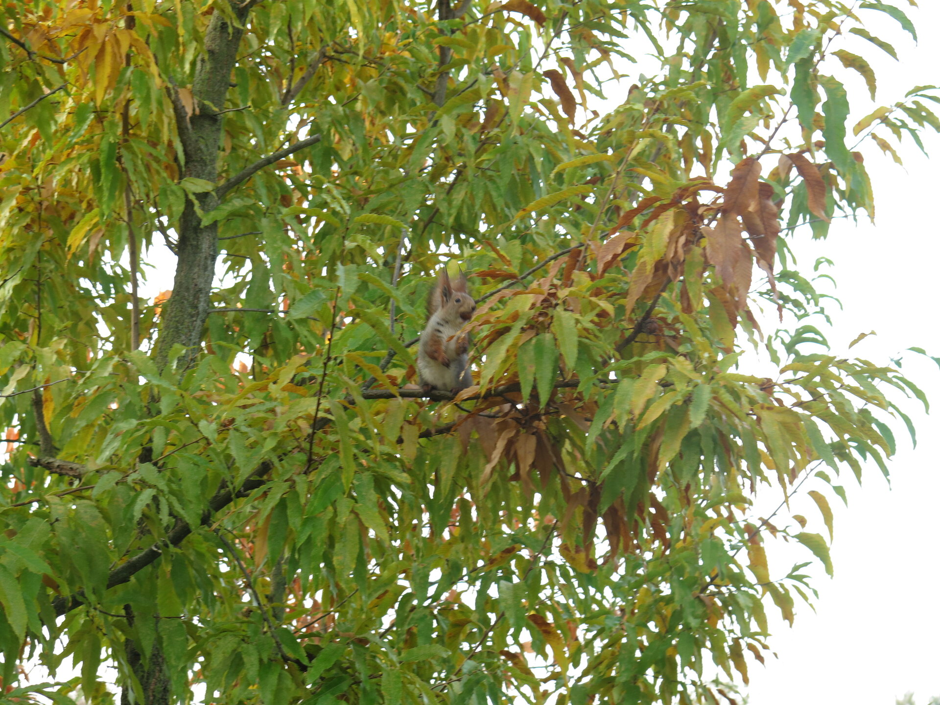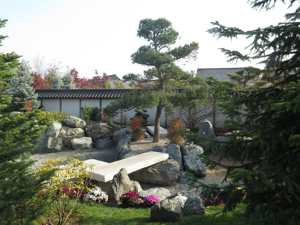 В саду очень много белок. Их не трогают и они здесь ходят пешком и никого не боятся. Но сфотографировать их сложно, они очень быстрые и юркие. Осень время хризантем и дубков. Не могу сказать , что их высажено много, но то что есть смотрится эффектно.