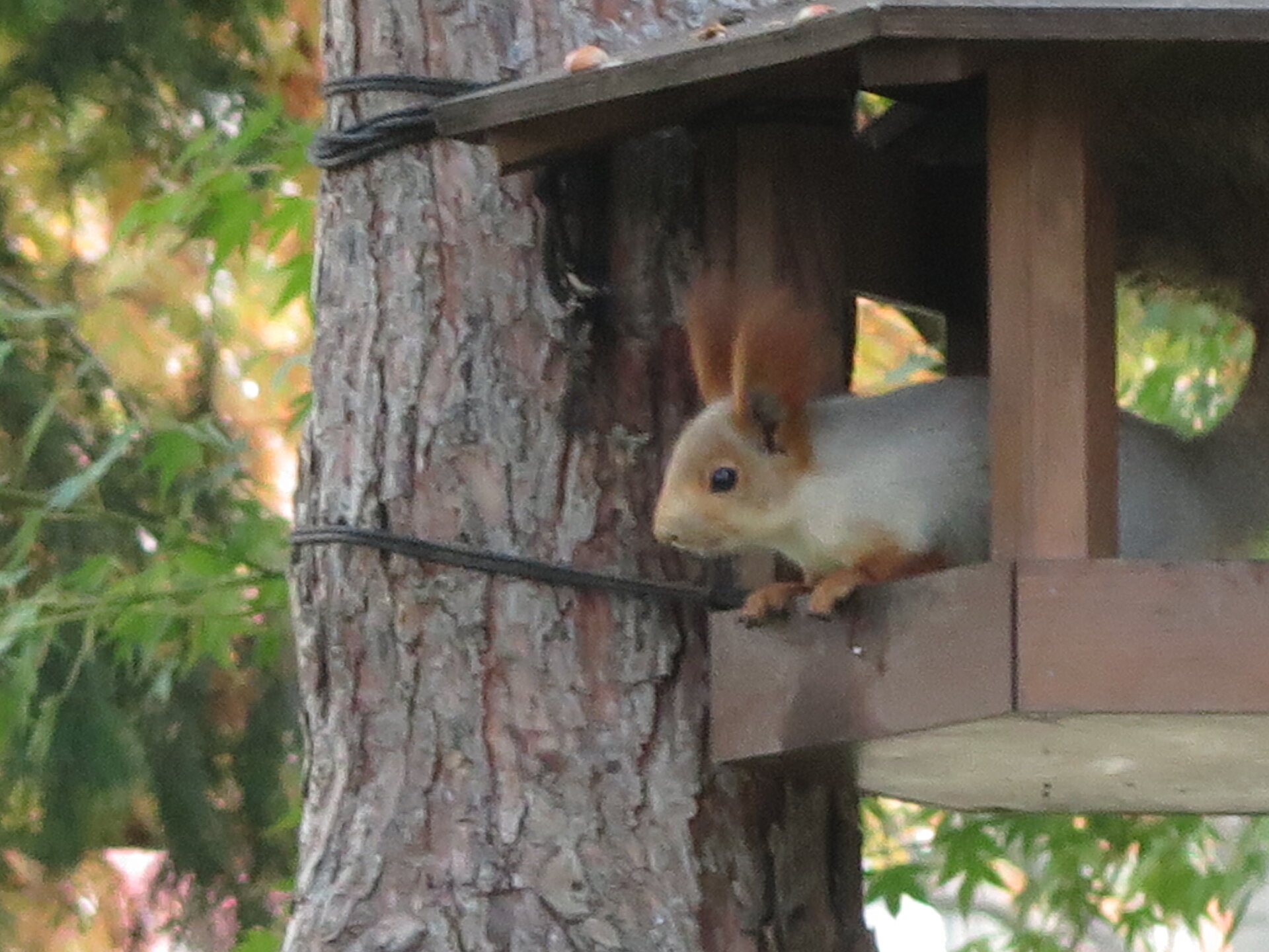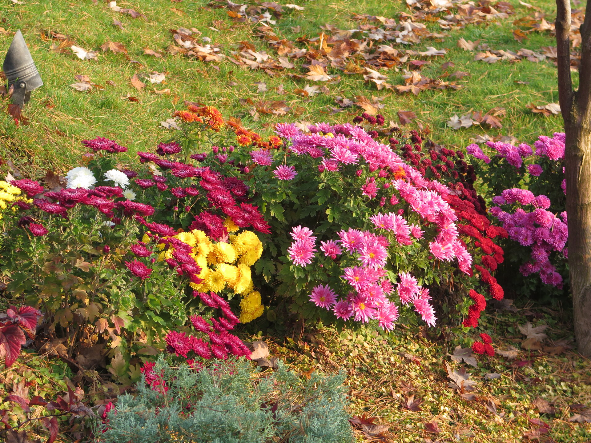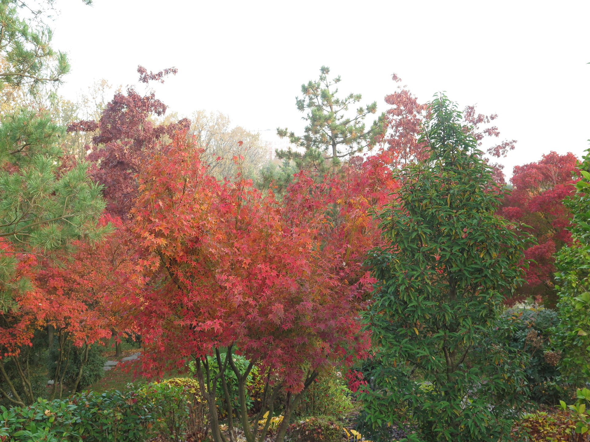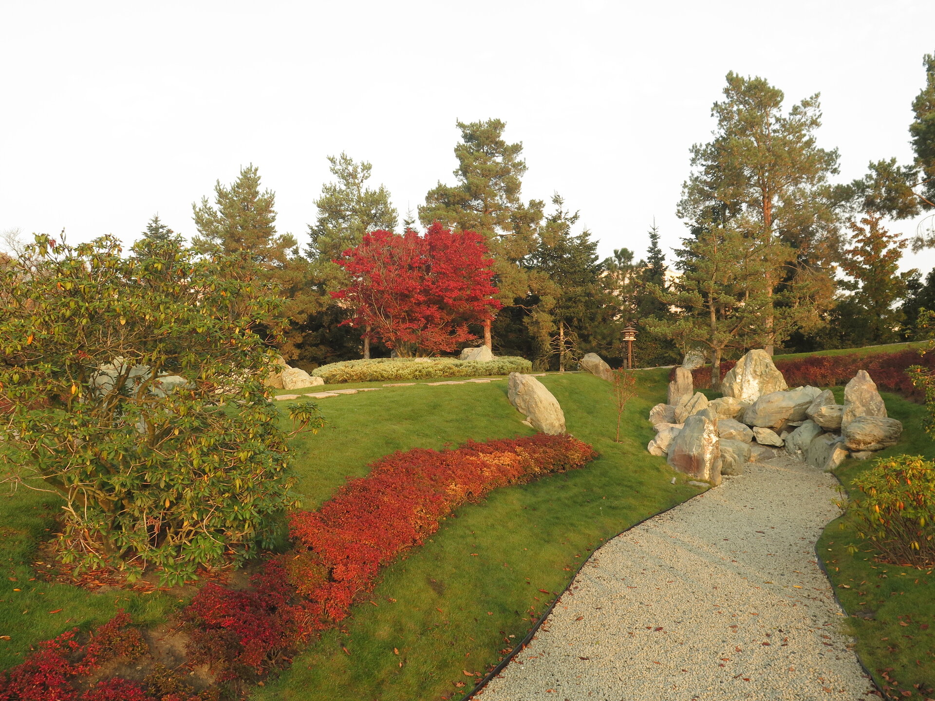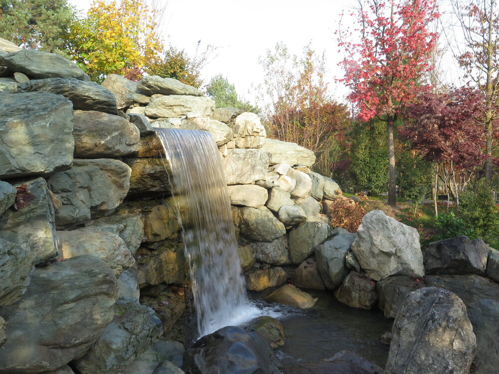 В саду очень много белок. Их не трогают и они здесь ходят пешком и никого не боятся. Но сфотографировать их сложно, они очень быстрые и юркие. Осень время хризантем и дубков. Не могу сказать , что их высажено много, но то что есть смотрится эффектно.