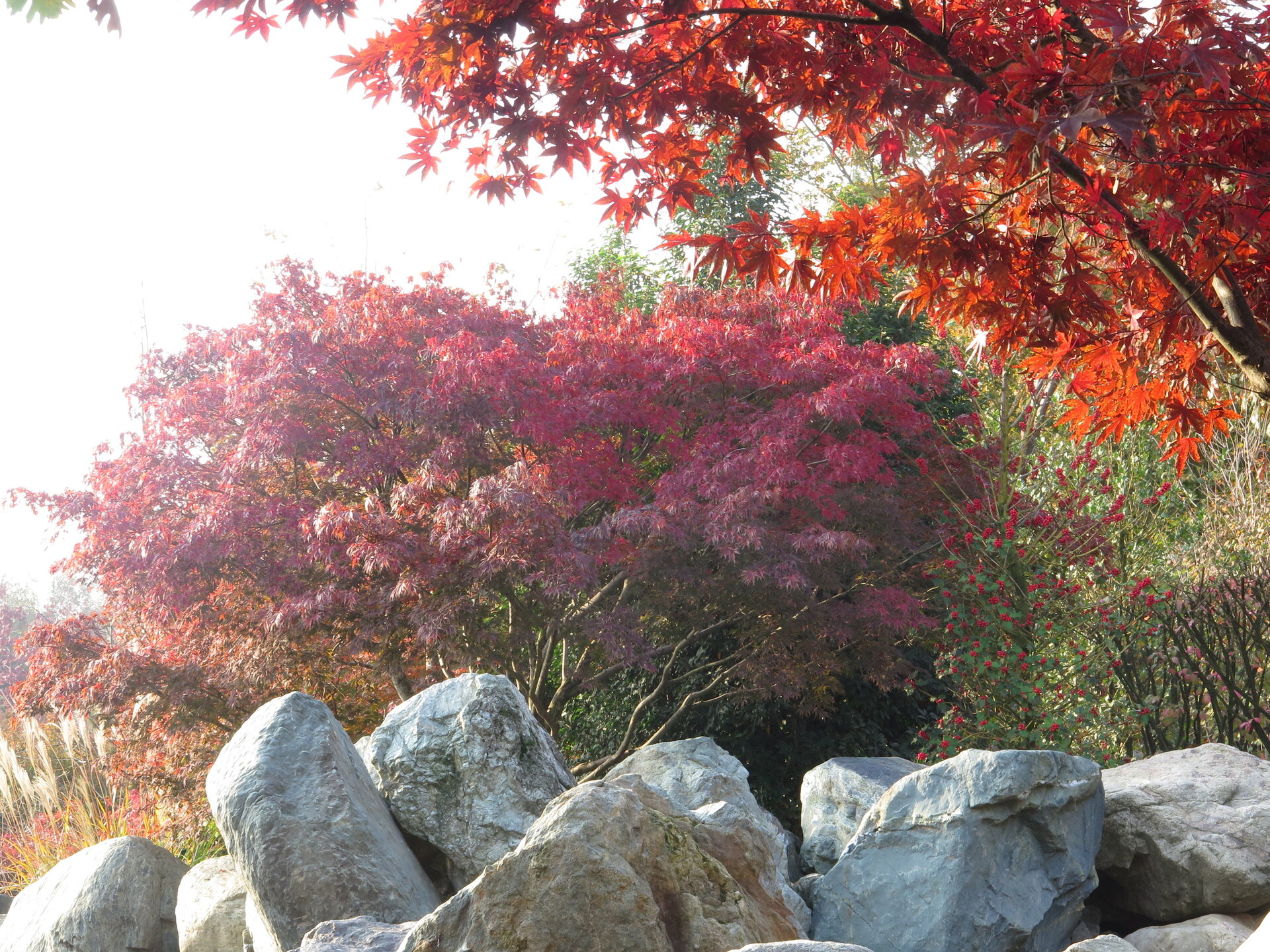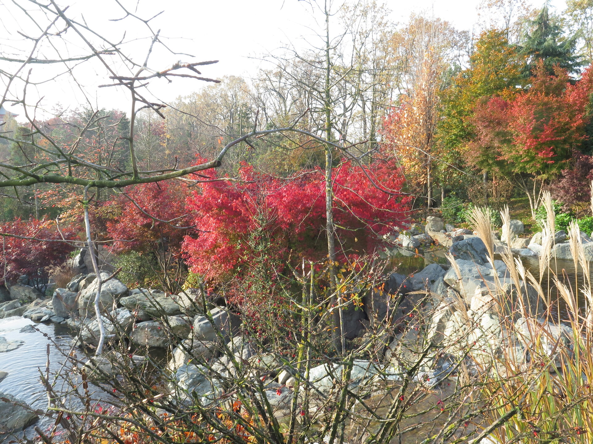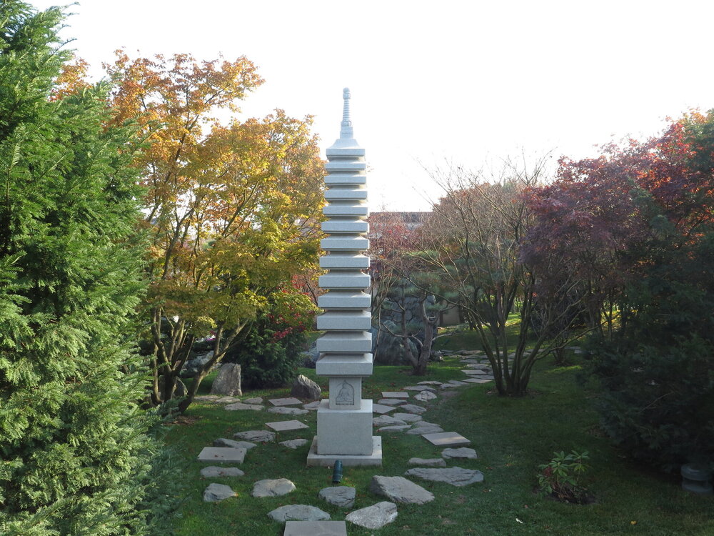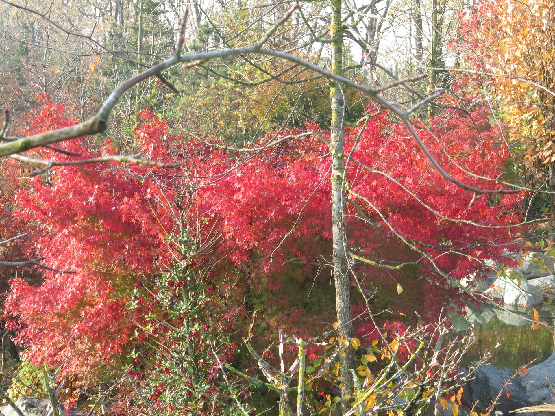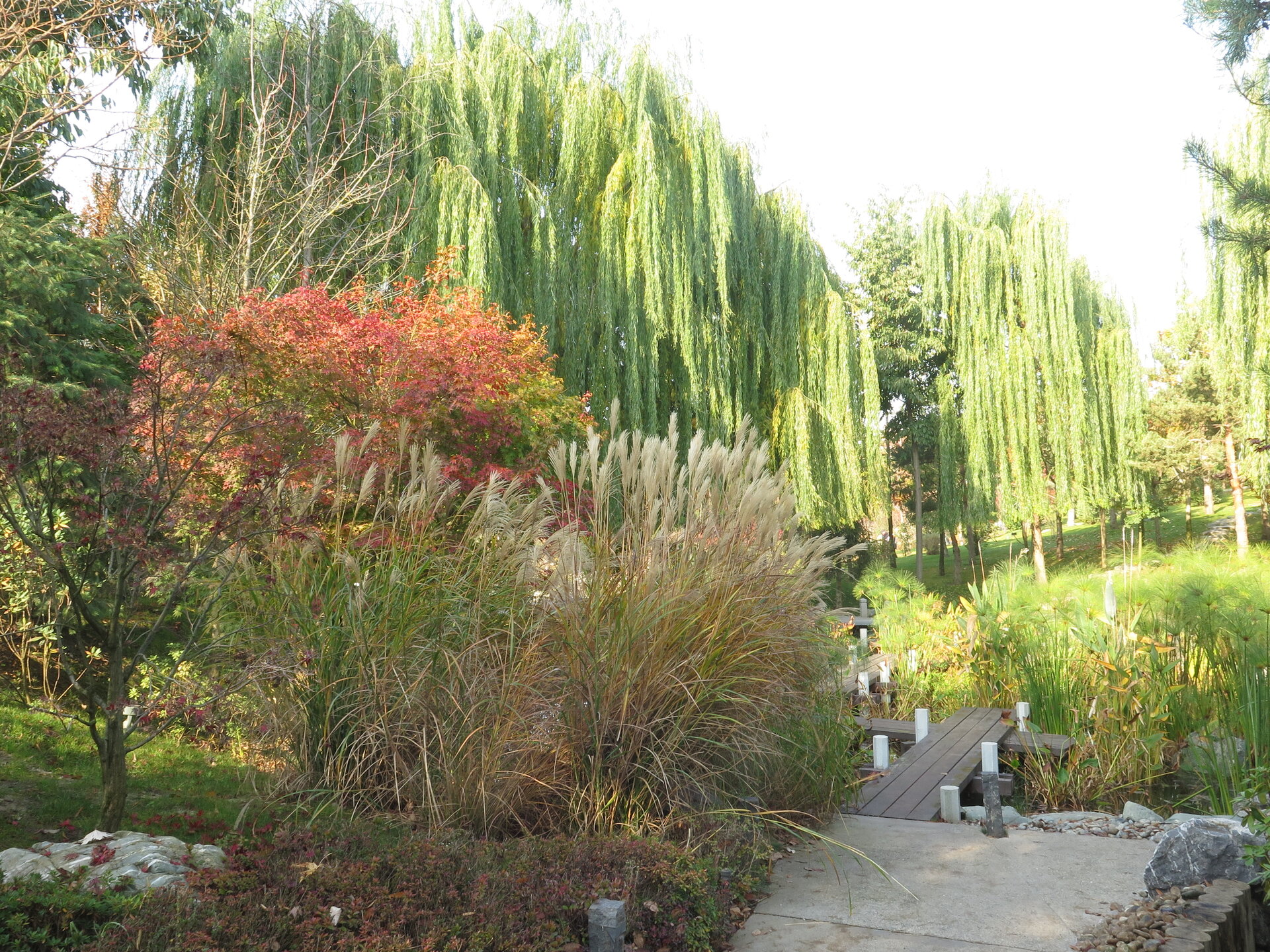 В саду очень много белок. Их не трогают и они здесь ходят пешком и никого не боятся. Но сфотографировать их сложно, они очень быстрые и юркие. Осень время хризантем и дубков. Не могу сказать , что их высажено много, но то что есть смотрится эффектно.
