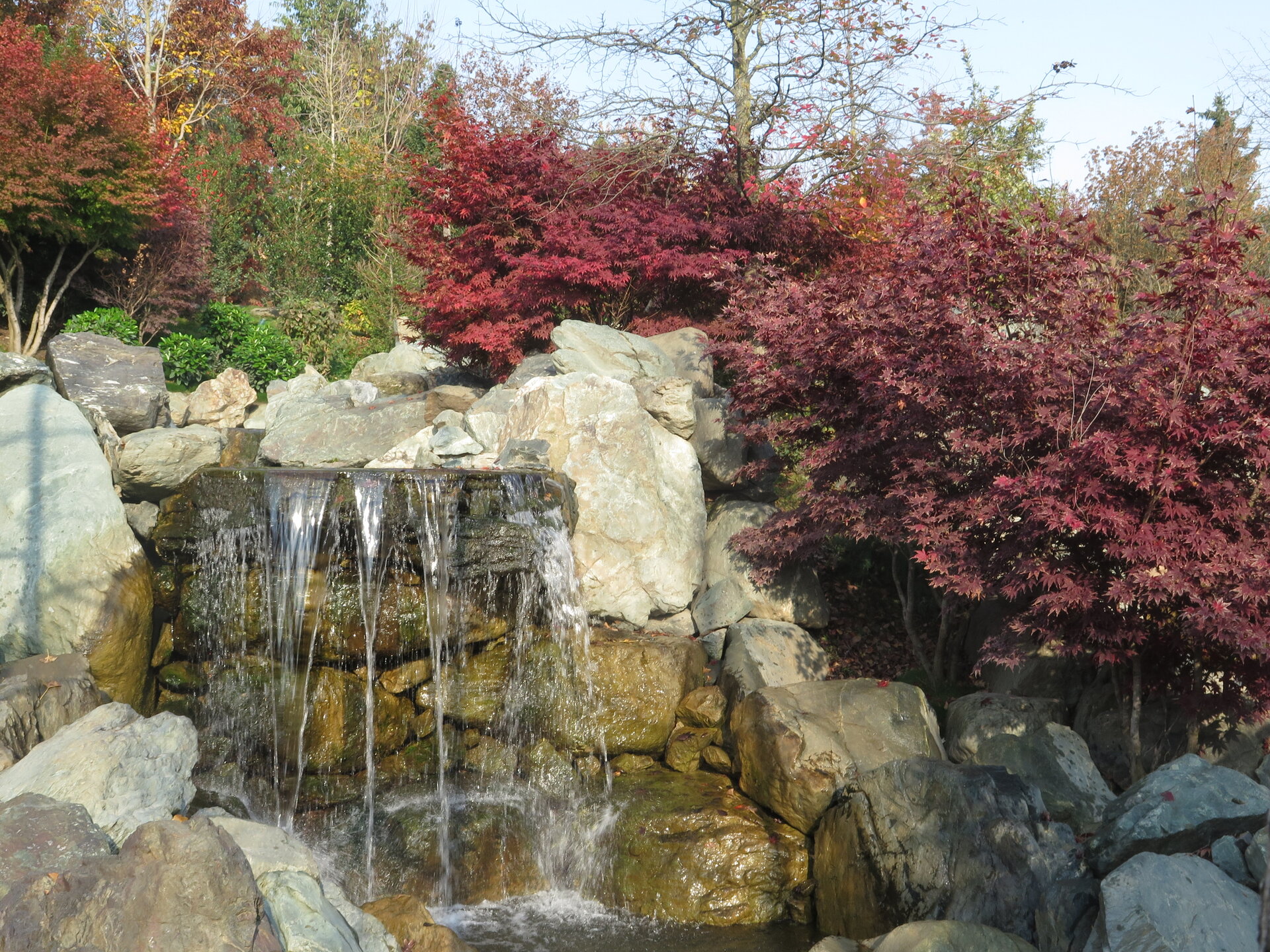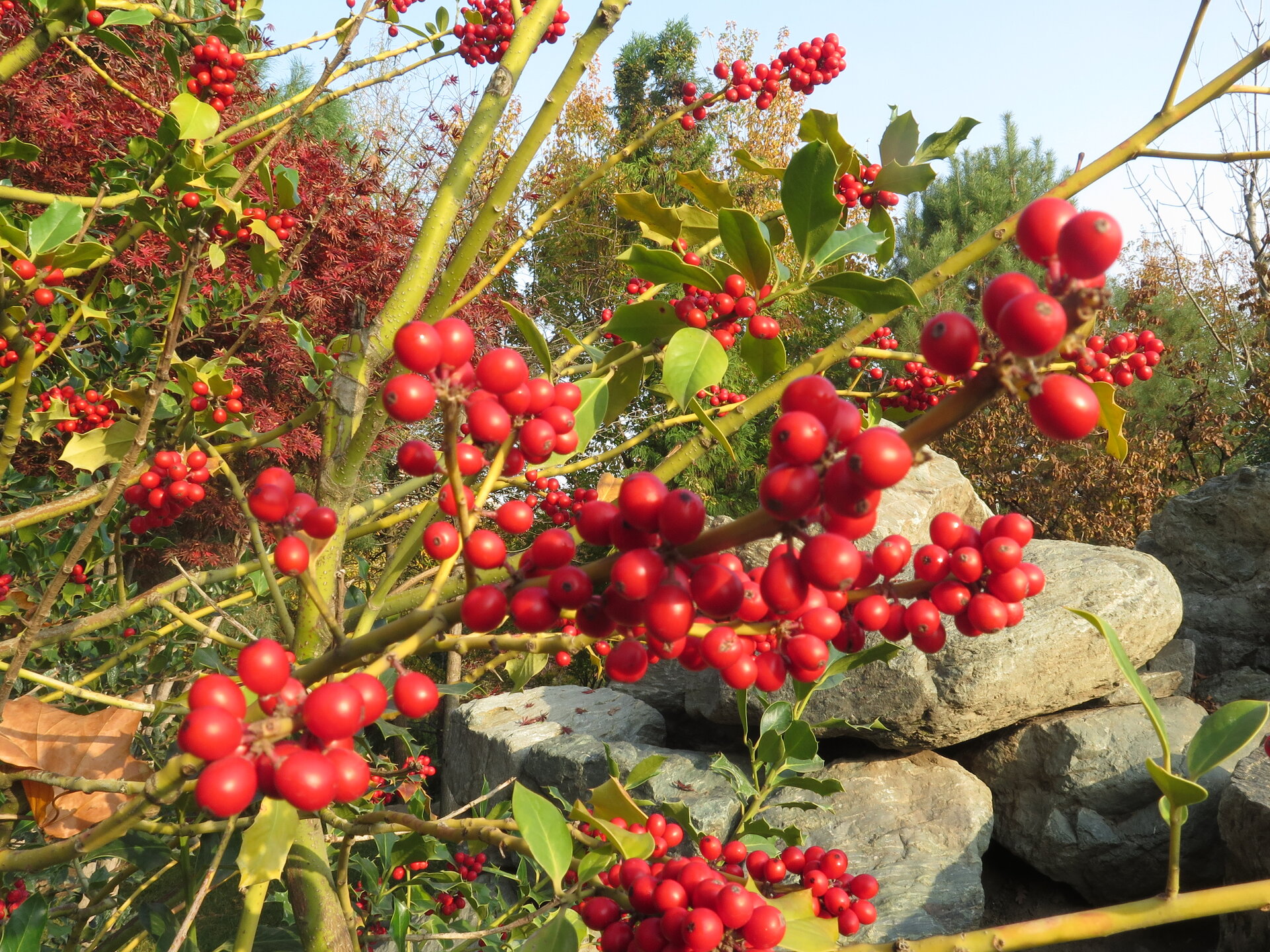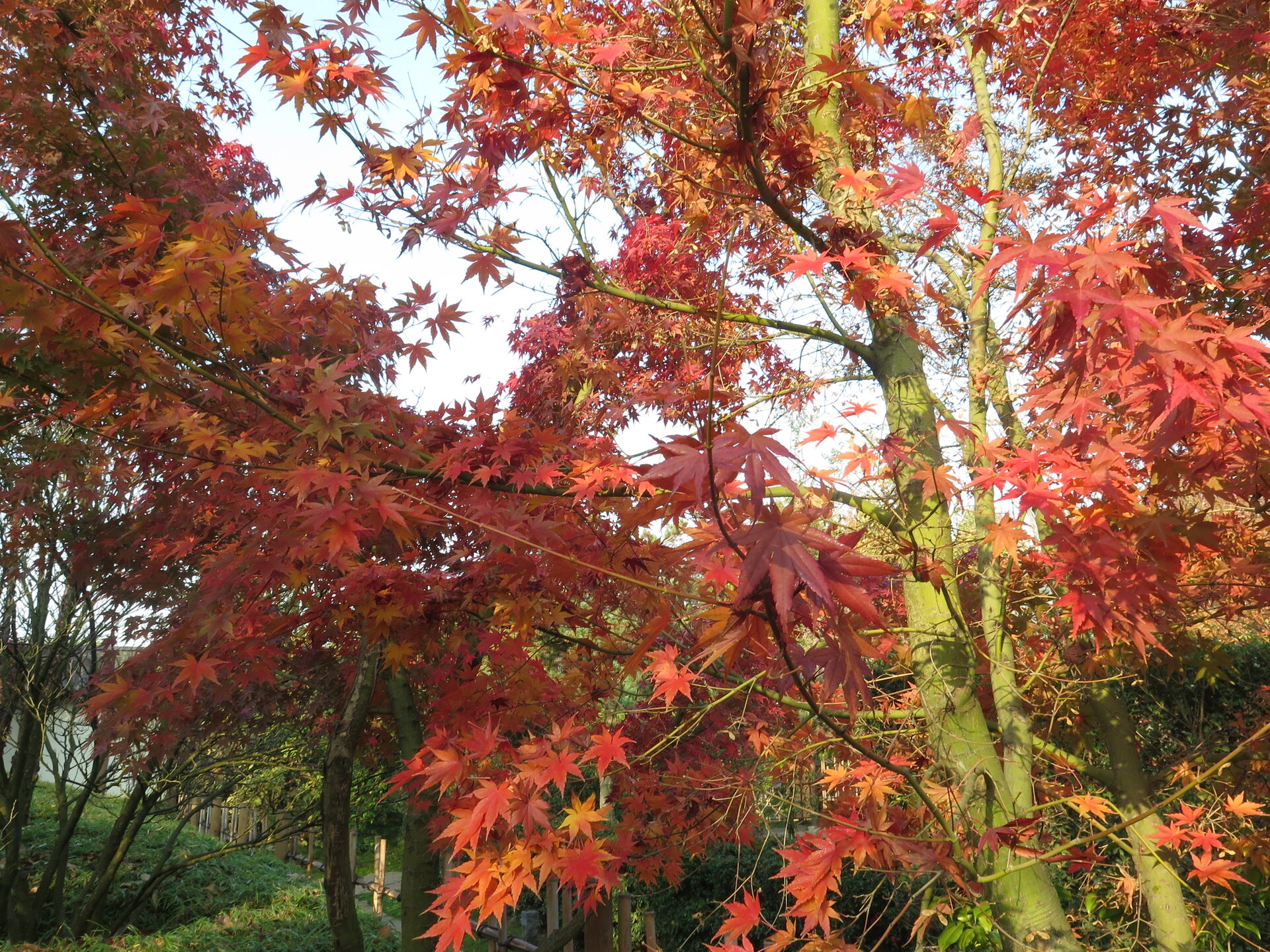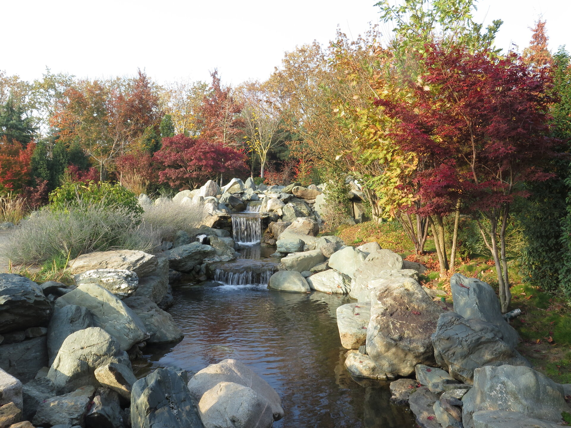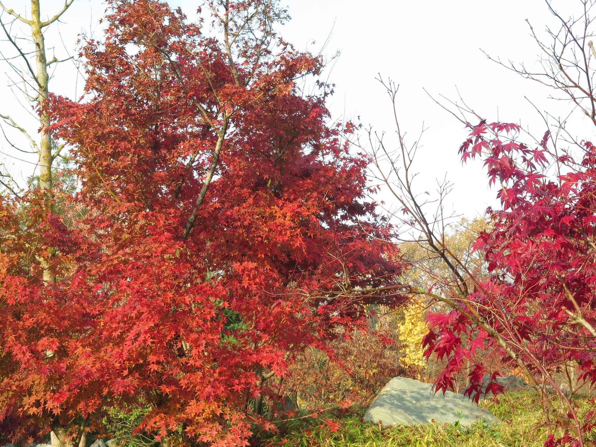 В саду очень много белок. Их не трогают и они здесь ходят пешком и никого не боятся. Но сфотографировать их сложно, они очень быстрые и юркие. Осень время хризантем и дубков. Не могу сказать , что их высажено много, но то что есть смотрится эффектно.