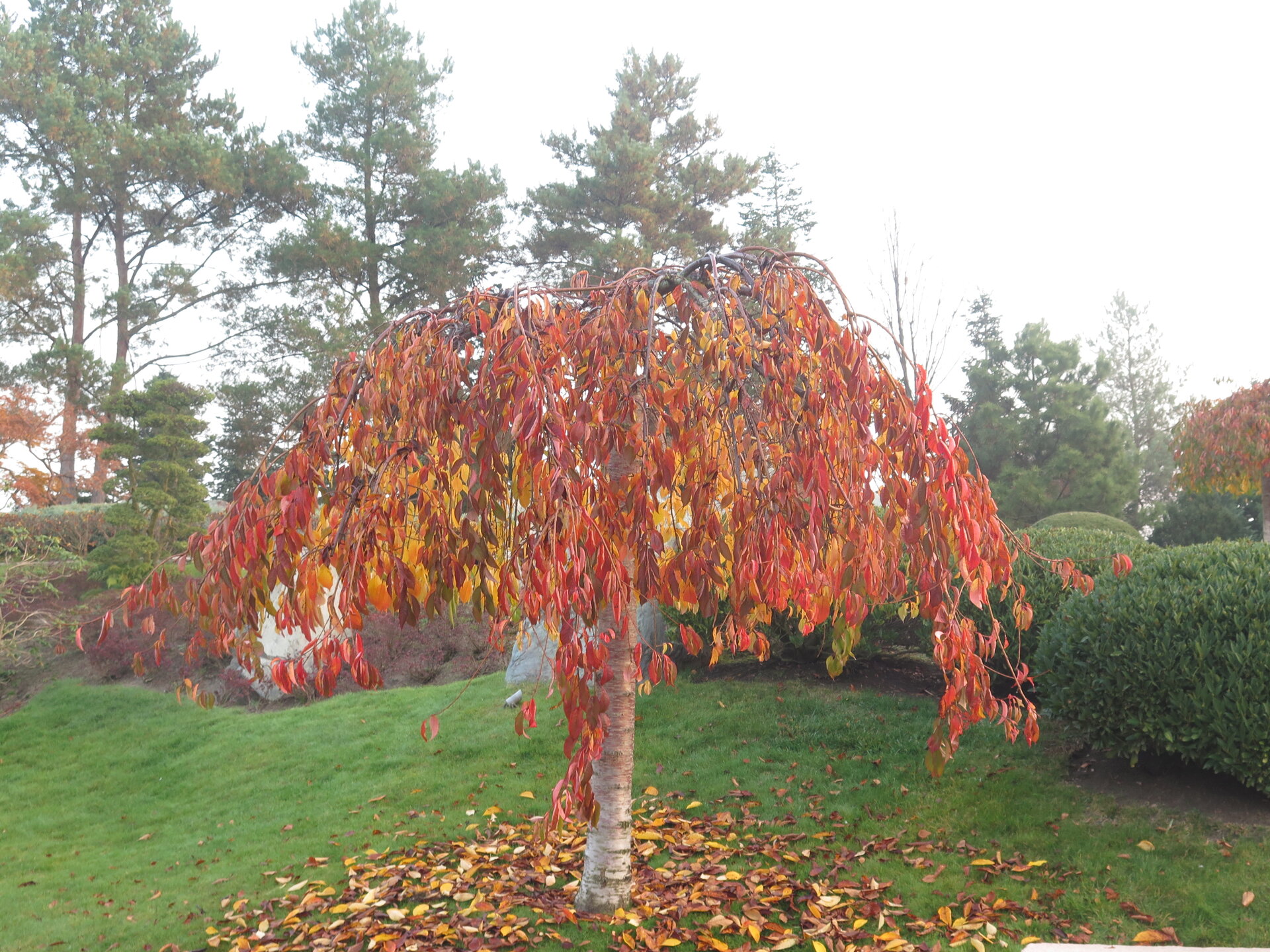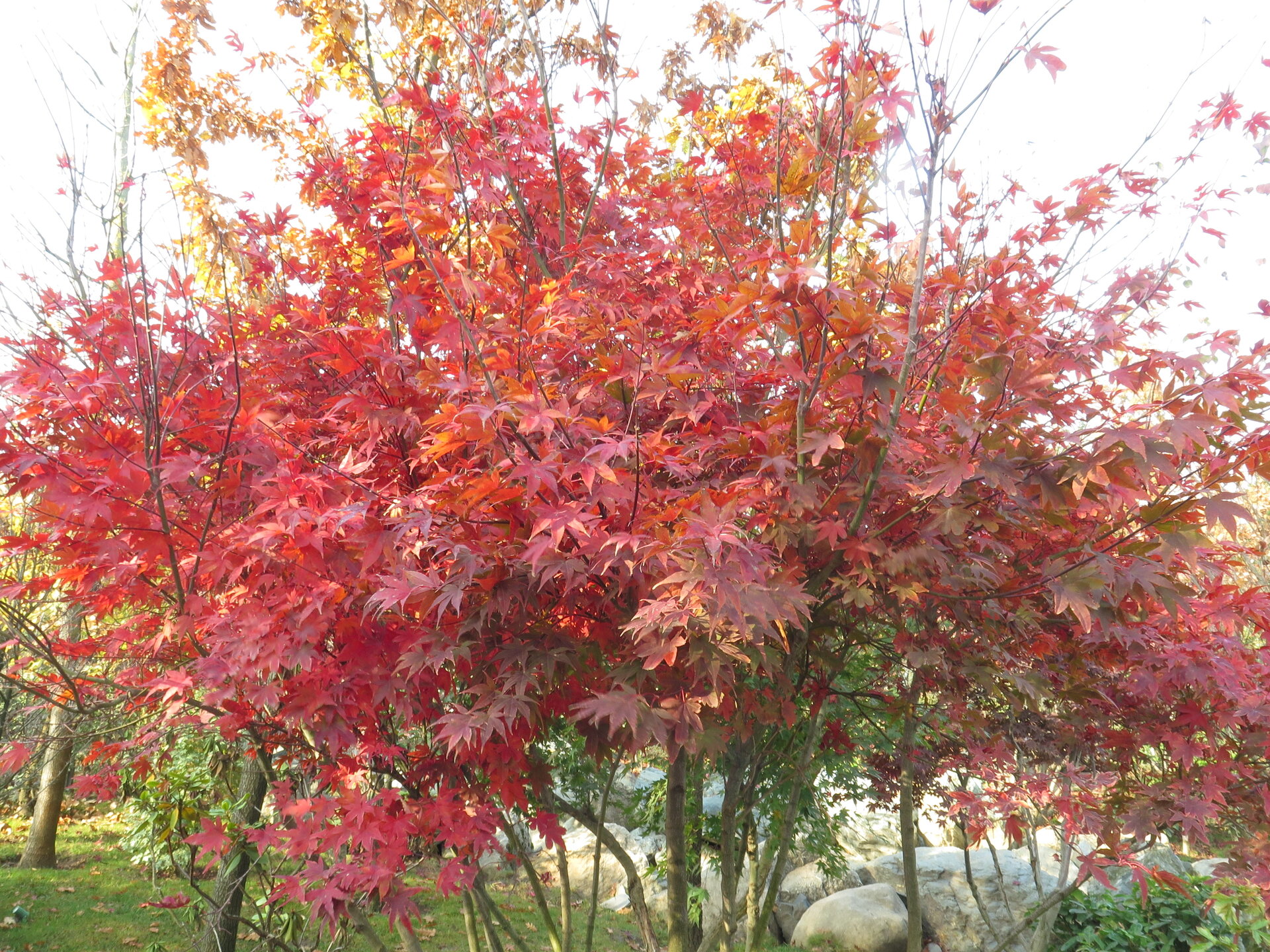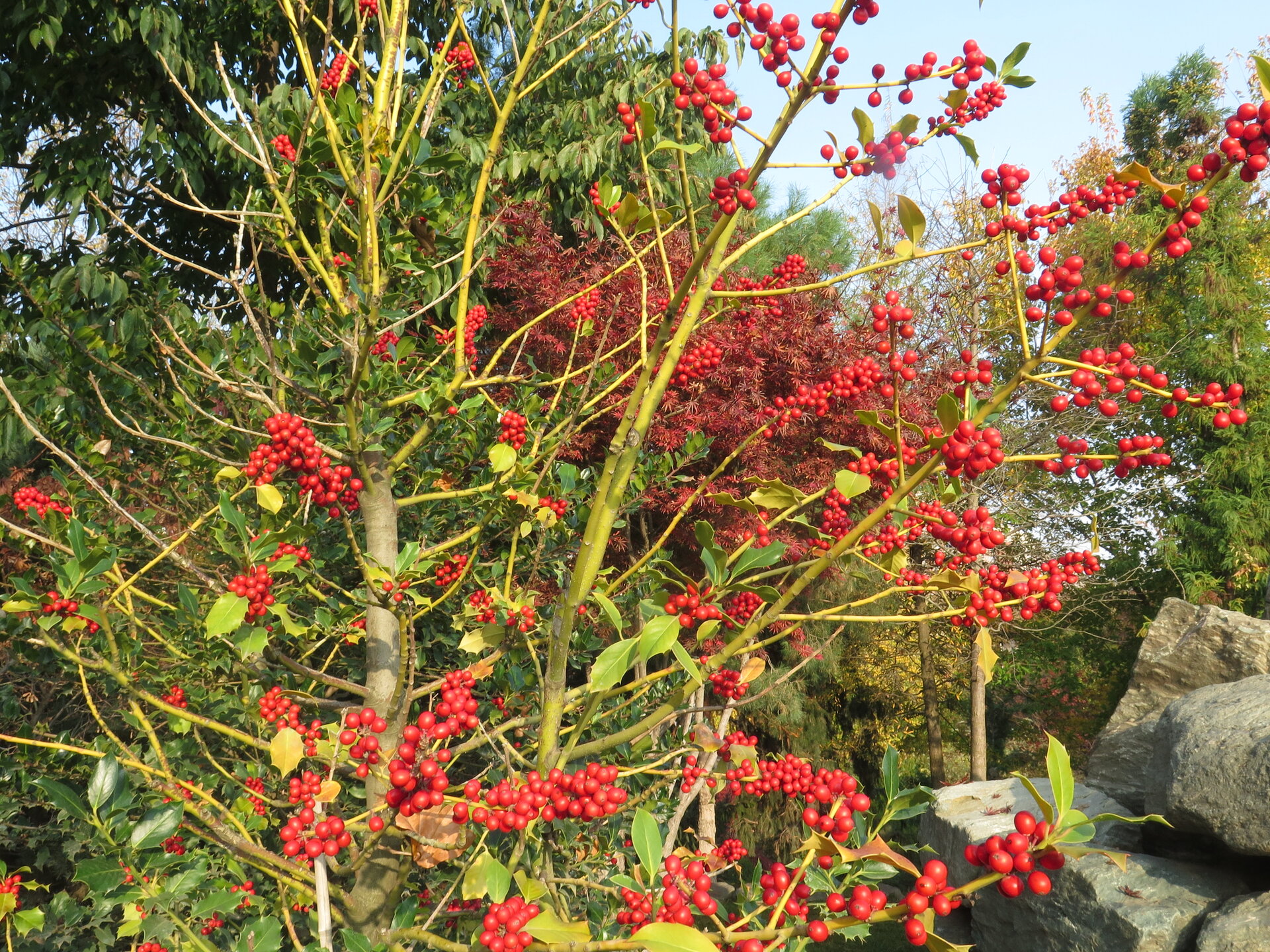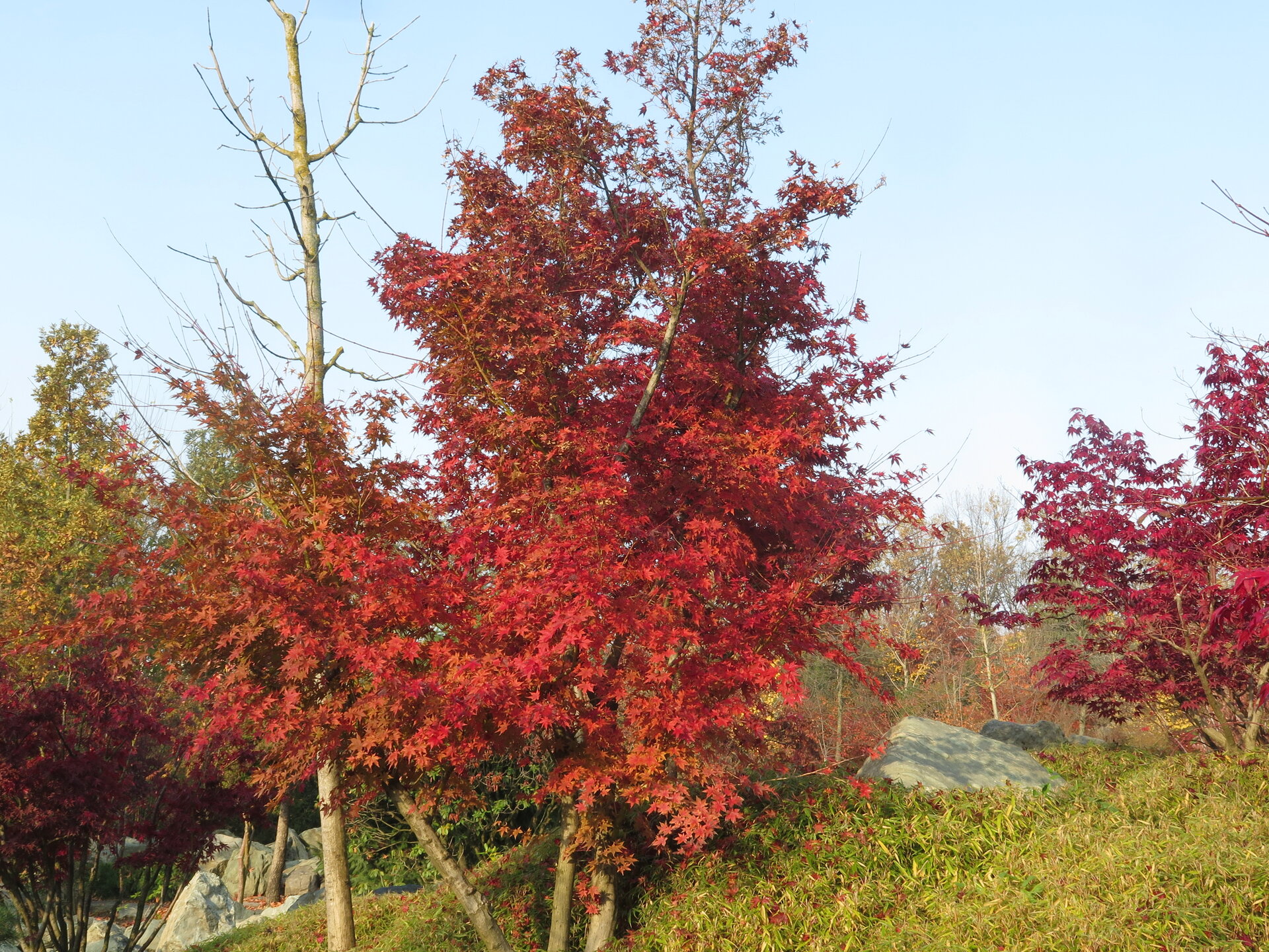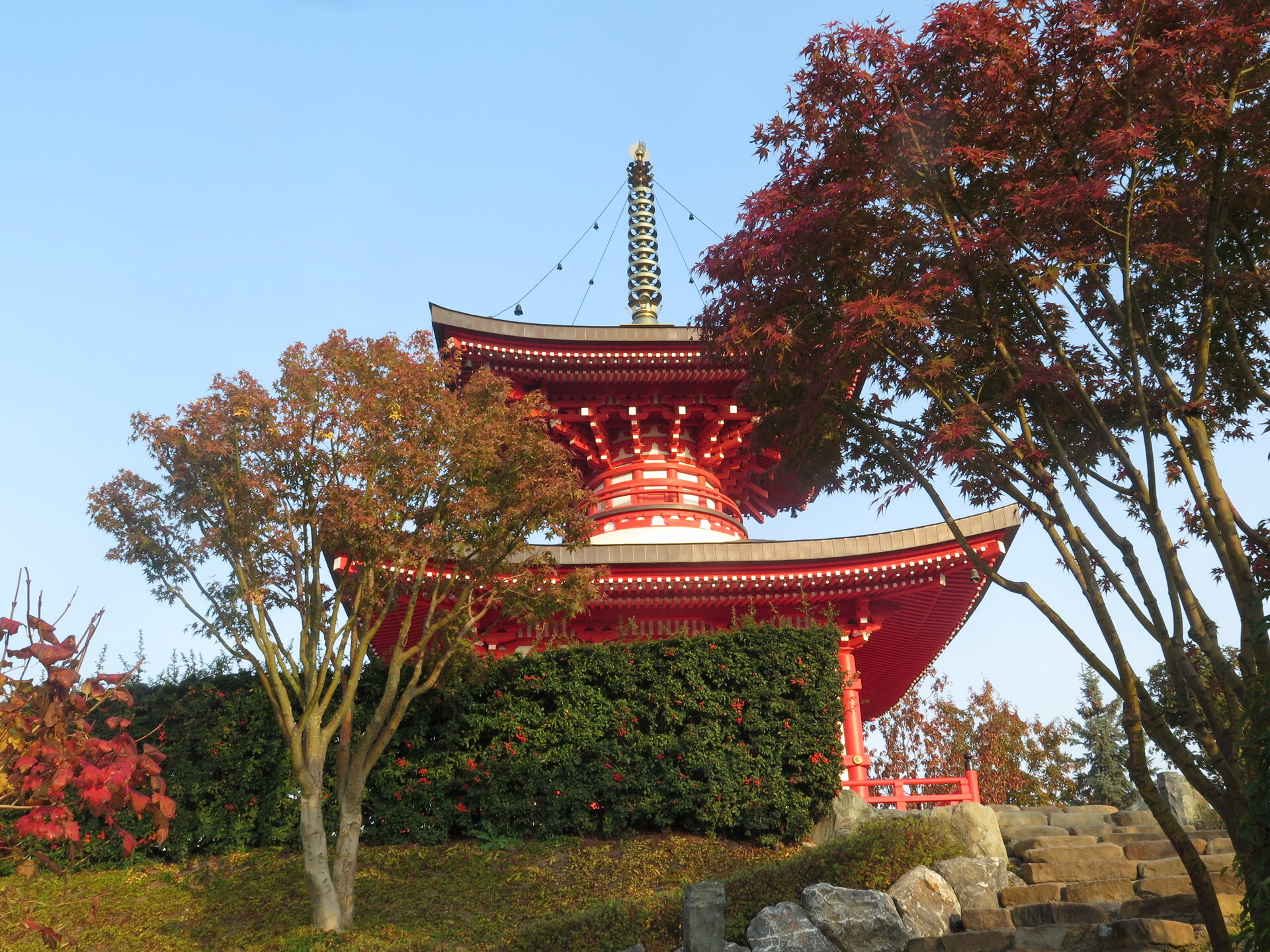 В саду очень много белок. Их не трогают и они здесь ходят пешком и никого не боятся. Но сфотографировать их сложно, они очень быстрые и юркие. Осень время хризантем и дубков. Не могу сказать , что их высажено много, но то что есть смотрится эффектно.