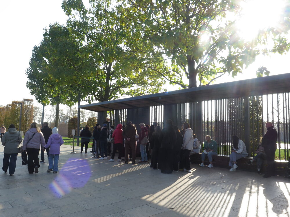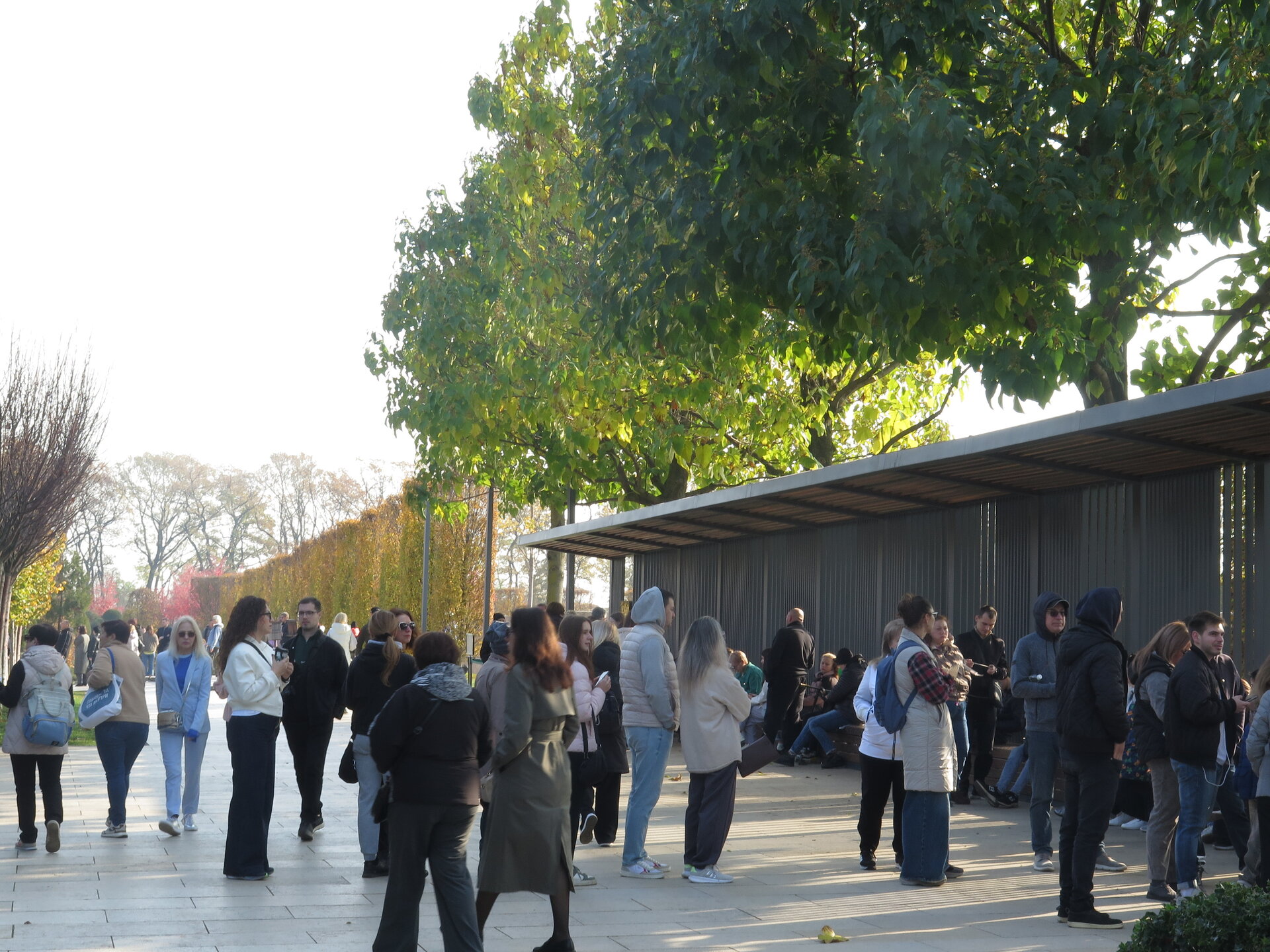 В этот день я отгуляла около четырех часов. Но много времени уходит на сьемку. Если просто пробежаться. То и за час можно всё посмотреть. Ну хоть что то зеленое. В общем и целом я осталась довольна прогулкой, чему способствовала отличная погода. А на выходе толпился народ. И желающих попасть в сад было не мало.