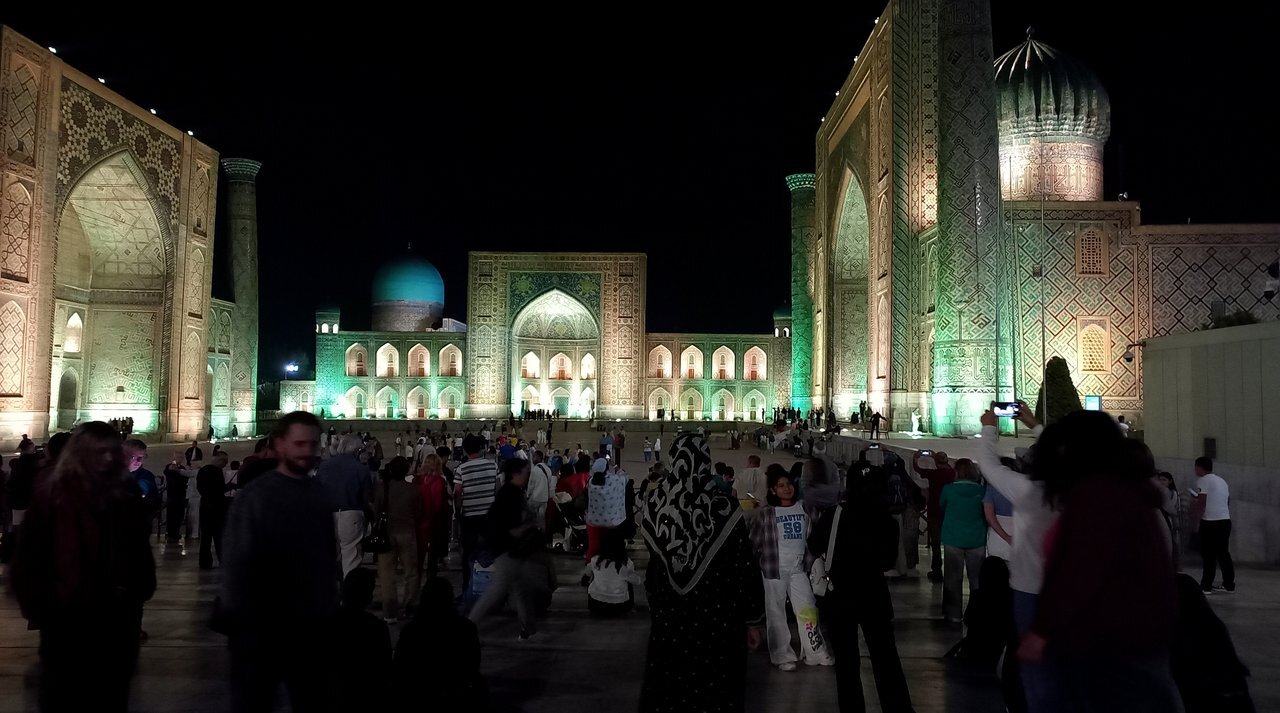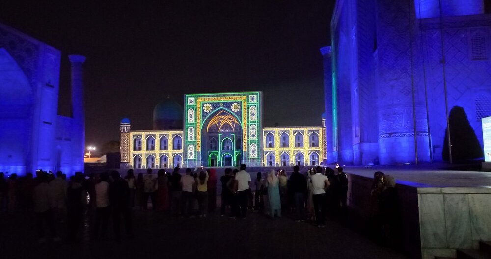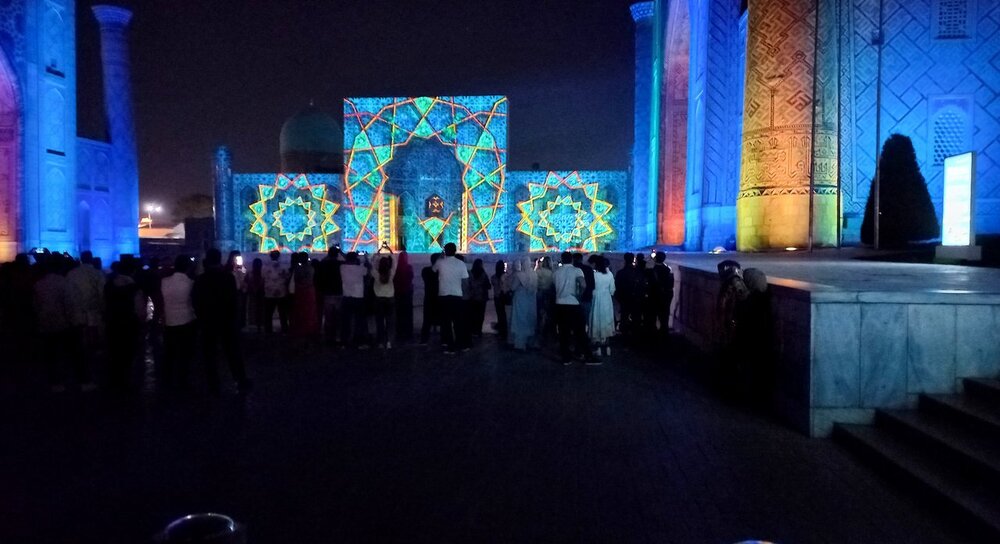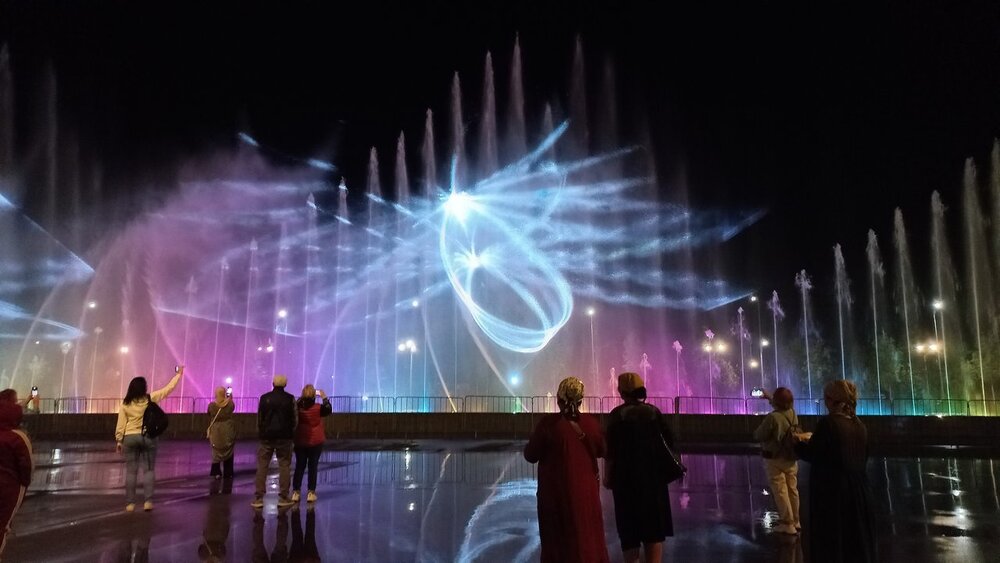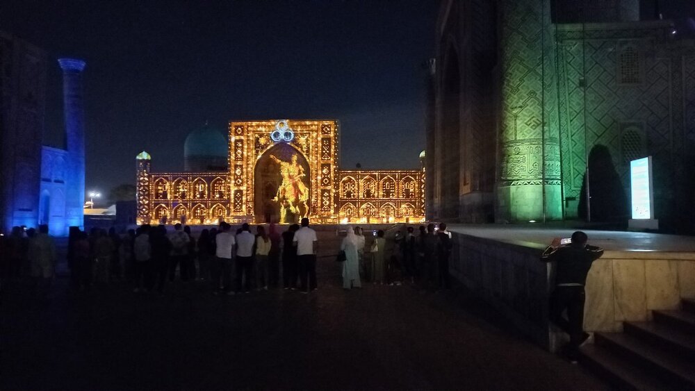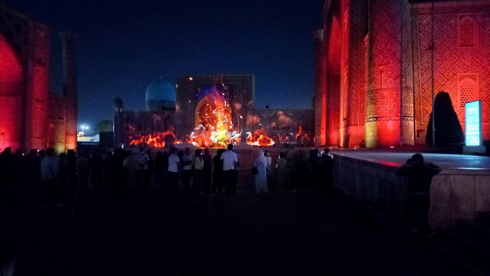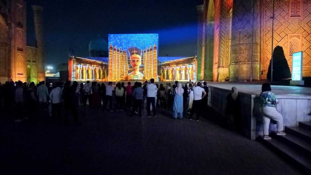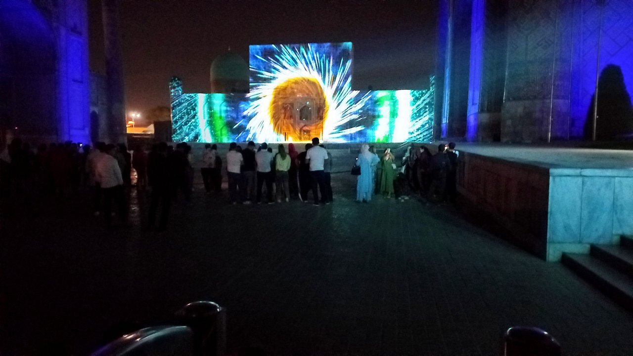 Шоу на площади Регистан Впервые 20-минутное шоу было продемонстрировано на площади Регистан в 2015 г. и с тех проходит ежедневно в 21 час с мая по сентябрь. На площади (на саму площадь нужен билет) и в зоне "амфитеатра" собралось очень много народа. Приятное оживление в ожидании чуда, красоты. Пока стены медресе освещены спокойным ровным цветом. В 21 час площадь сначала погружается в полную темноту, а затем начинается яркое шоу. Его содержание – история развития и становления Узбекистана, его культура, исторические личности, достижения страны от древности до современности. В нем отражены важнейшие моменты развития страны, ее культура и роль в мировой истории. Жаль, не нашла перевода текста. Нашла только, что начинается с этого стиха (вроде и в советское время на площади включали его трансляцию, что производило сильное впечатление): Я - Регистан, я сердце Самарканда, Я - памятник прошедших войн и бед. Потомок, слушай мудрости завет: Мир береги! Жить в мире, дружбе - счастье! Ты всюду помни это, человек! Подобные шоу распространены в мире, однако они не все основаны на реальных исторических событиях. Здесь в постановке соблюдена максимальная достоверность: даже показанные в ней артефакты оцифрованы с оригиналов. Данное 3D-шоу отличается от своих зарубежных аналогов тем, что оно имеет просветительские и культурные цели. Показана история цивилизации от древнего Египта, Индии. Большое внимание уделено Китаю и Великому шелковому пути, который действительно дал толчок к развитию стран на своем пути. Здесь же и Чингиз-хан, и Тимур, и Улугбек: Всё это идет под музыку и чтение текста дикторами - мужчиной и женщиной, торжественно и пафосно описывающих события. Типа, в стиле нашего Левитана. Без перевода сложно, но я окончание шоу поняла так Эта картинка - символизирует освобождение от советских оков 01.09.1991. Всё сразу становится "голубым и зеленым", радостно-цветочным: "Освободившийся" народ теперь дружно пишет формулы, смотрит в микроскопы и телескопы, разворачивает-сворачивает ДНК, удовлетворенно обнюхивает коробочку хлопка (стал лучше пахнуть после 91 г?), производит автомобили, летает на самолетах своей авиакомпании. Счастливые женщины танцуют, а счастливые дети смеются. Всё. Занавес. Ни сколь не умаляю их достижений в древности, изумляюсь, восхищаюсь ими и их великими предками и ухоженными городами сегодня, но... как в анекдоте: "ложки нашлись, а душок остался", так и здесь под конец шоу. А с другой стороны постановка такого шоу - это элемент патриотического воспитания, гордости за свою родину и свой народ. Лишь бы в увлечении величием дело не дошло до выкапывания морей в прошлом. . Чувства, отличные от испытанных у монумента помощи всех народов СССР в восстановлении Ташкента от землетрясения. Но в целом, сегодняшний вечер с Вечным городом, фонтанами и красочным шоу был великолепным, несмотря на маленькую царапинку в конце, которую я возможно неправильно поняла.