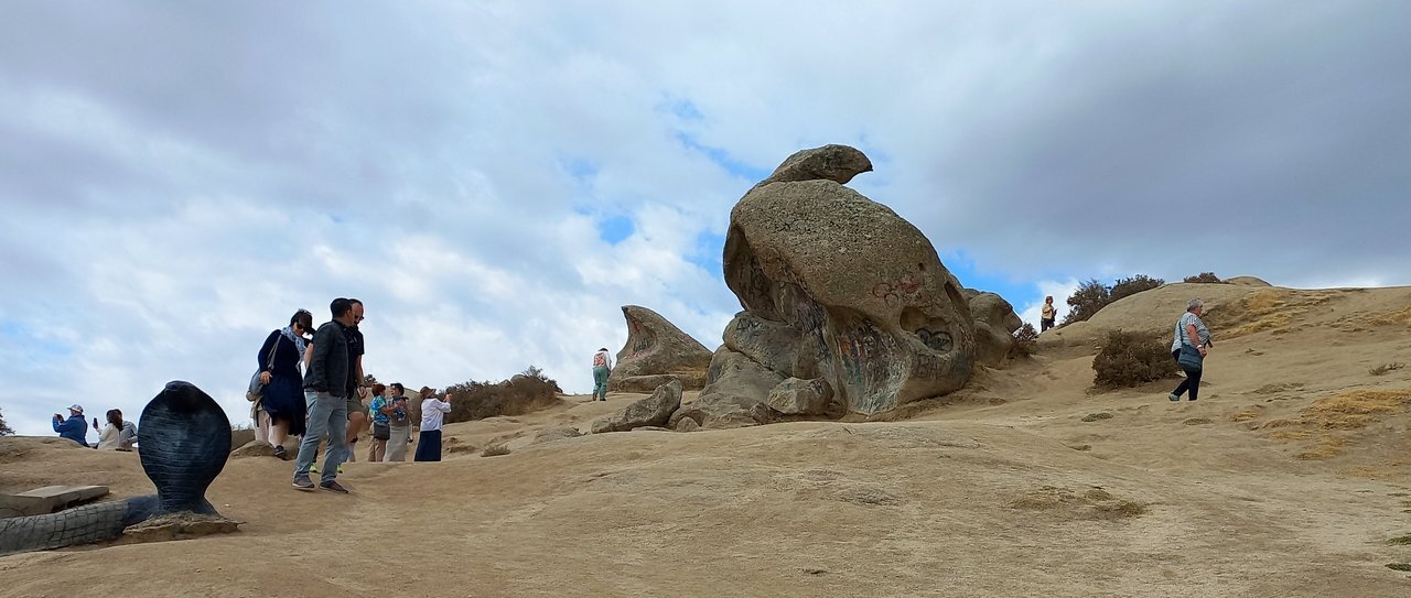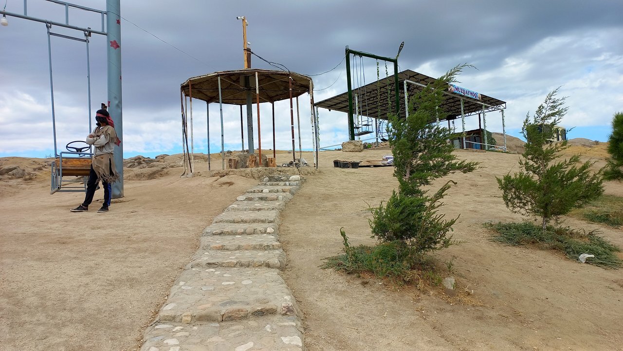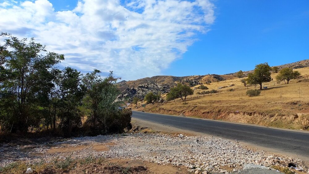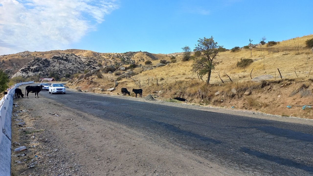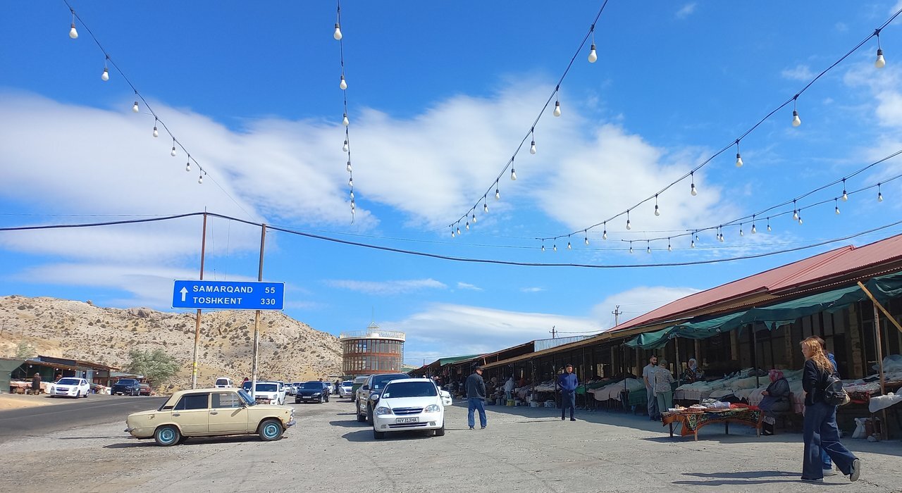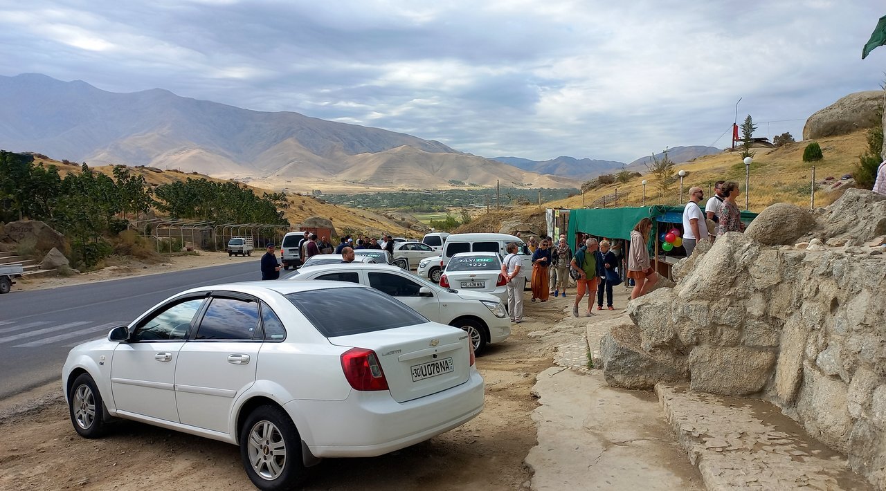 Горный перевал по дороге в Шахрисабз Утром едем на родину Тимура в г Шахрисабз, который во времена Тимура и раньше назывался Кеш. Город лежит в котловине между двумя хребтами. Наш хребет, который мы сегодня покорим - Зеравшанский. Неожиданность - Шерзод рассказывает о горах: Зеравшанский хребет переходит в Фанские горы, а те - в Памир. А с Фанскими горами у меня свои отношения: на 3 курсе института мы с подружками вдруг записались в секцию алитета, и стали нас там готовить к походу в Фанские горы, о которых я до секции не слышала, а после секции услышала только здесь. Нас тренировали на зимних горках Зеленогорска, где мы учились останавливать свое скольжение по склону ледорубом, а потом повезли в Выборг учиться карабкаться по отвесной скале. Это было откровенно страшно, и не очень получалось. И спать зимой на лапнике в палатке - романтика сомнительная. В голову начали закрадываться мысли - а оно мне надо? К счастью, будущий муж сделал мне предложение, и пришлось финансово выбирать между свадьбой и Фанскими горами. Выбрала мужа, а от Фанских гор отказалась даже несмотря на то, что благодаря своему бараньему весу я прошла отбор в горы, вторая девочка прошла отбор благодаря крепкому телосложению, а третью в итоге забраковали из-за лишнего веса. Но про Фанские горы иногда вспоминала. И вдруг через 50 лет оказалась почти в них (они вроде и из Самарканда видны). Возможно где-то глубоко в душе неслучившиеся горы сидели во мне занозой, а теперь гешефт закрыт? В горы едем на легковых машинах, так как и микроавтобусам на серпантине опасно. Сначала панорамная остановка у камней. Это - плато Демонов: У Плато Демонов недобрая репутация, с ним связано множество легенд с участием злых духов. А еще здесь снимали два фильма с Гойко Митичем про индейцев - «Апачи» и «Ульзану» . В массовке снимались местные жители, которые сначала стеснялись оголиться по пояс, а когда оголились и их разрисовали, долго хохотали, срывая съемки: Вот этот тешикташ, дырявый камень из фильма - до сих пор место паломничества любителей гордых индейцев и любителей испоганить своими росписями природные камни: Ещё здесь есть индеец в кроссовках и с сигаретой. Время от времени он издает боевой клич, завлекая проезжающих сфотографироваться с ним. Пасли его, как свою "дойную корову" пара молодых парней, следя, чтобы он не давался фотографироваться бесплатно: Дорога зовет. И зовет не только нас, но и коров: Следующая остановка санитарная с небольшим базаром. В основном здесь продают курт. Помните? Шарики разных размеров из высушенного соленого творога с разными приправами. Хорошо насыщают в пути и места мало занимают: Мужчины, конечно же, крутятся вокруг такой необычной машины, а вот женщинам не у чего и покрутиться на базаре - курт-то мы купили еще в Ташкенте на базаре Чорсу: А дальше - все выше, выше и выше, виток за витком до перевала Тахта-Карача (1788м): Отсюда видны Фанские горы. Они уже в Таджикистане и очень популярны у туристов из-за уникального сочетания высоты (есть 5-ти тысячники) и доступности (фото из инт-та, так как из машины не всё успевали рассмотреть): А что за перевалом? Там еще один хребет, который отделяет древнюю Согдиану от еще более древней Бактрии, а еще там - Юг, Юг Узбекистана в котловине с уникальным климатом, а в котловине - древний Кеш, ныне Шахрисабз, а в нем усыпальница, построенна