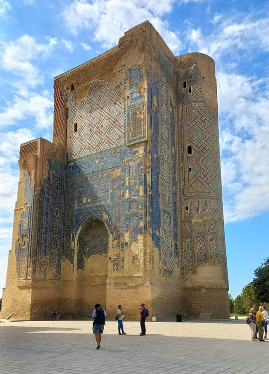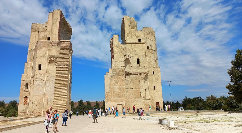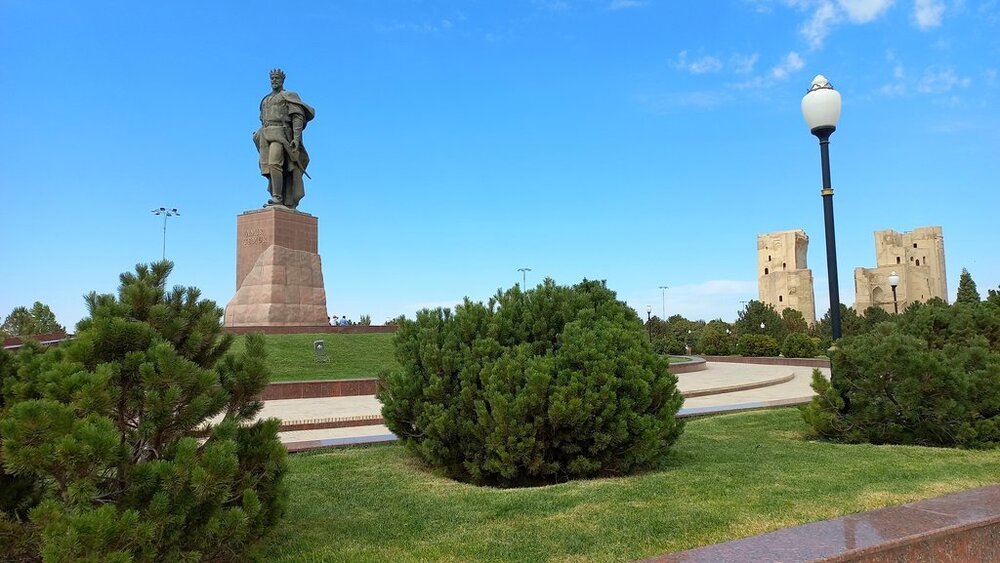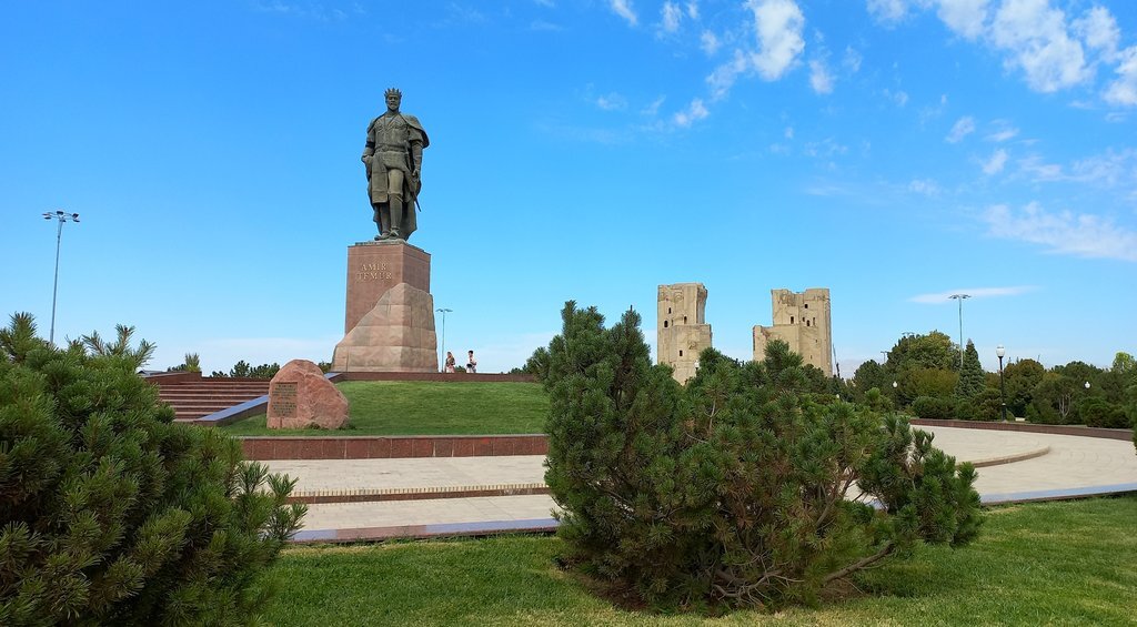Шахрисабз и Тимур Шахрисабз до 14 века назывался Кеш, а упоминалось о нем еще в 8 веке до нашей эры, т.е, городу примерно 2700 лет. Был Кеш какое-то время столицей древней Согдианы, что переводится, как страна плодородных долин. Расположена она была на месте нынешних Узбекистана и Таджикистана. Город являлся центром зороастризма. В 14 веке Кеш переименовали в Шахрисабз, в переводе с персидского - зеленый город. Примерно в то время, когда на его окраине в богатой, но не титулованной семье родился Тимур (1336 г.) Сейчас коротенько,минут на сорок о нем по мотивам Википедии: Тимур отличался физической силой, выносливостью. Умел отлично держаться в седле, стрелять из лука, владеть саблей, копьём и арканом. Среди сверстников пользовался авторитетом, рано проявил качества вожака. Ещё до совершеннолетия Тимур сколотил маленький отряд юных грабителей и налётчиков. Он и четыре его друга занимались грабежами среди окрестных селений. Поначалу добычей становились украденные в тёмное время суток овцы, бараны, коровы, реже — лошади. Постепенно молодой Тимур собрал банду небольшой отряд конных, хорошо вооружённых людей, с которыми начал грабить караваны проезжавших купцов. В один из таких набегов был ранен в ногу, с тех пор хромал и получил кличку Тамерлан (Тимур хромой). Дальше - больше. Сначала Тимур стал правителем Шахрисабза, а закончил созданием империи Тимуридов на обширной территории из Персии, северной Индии, Центральной Азии. Тимур был великолепным стратегом и тактиком, не знал поражений, побеждал противника, дважды превосходящего его мощью. Тактику Тимура до сих преподают в военных училищах Не будучи Чингизидом, Тимур не мог носить ханский титул, поэтому всегда именовался лишь эмиром (вождём, предводителем). Тимур - дальновидный правитель и талантливый организатор. Любил общество учёных, был добр и щедр к ним. Оставил после себя десятки монументальных архитектурных сооружений, некоторые из них вошли в сокровищницу мировой культуры. Постройки Тимура, в создании которых он принимал деятельное участие, обнаруживают в нём незаурядный художественный вкус. А еще Тимур хорошо играл в шахматы, был знаком с литературой и поэзией, мог уместно вставить в разговор поэтические строки, знал тюркский и персидские языки, а его девизом была персидская фраза «Расти русти» (истина — это безопасность). Был врагом лжи; шутки его не забавляли. Он любил выслушивать правду, как бы она не была жестока Но в нем, как в любом человеке, а тем более в великом человеке, была и ложка дегтя, а, может, и наоборот - целая бочка дегтя. Этим дегтем была его жестокость, особенно к завоеванным народам: в 1387 г. войска Тимура взяли персидские Исфахан и Шираз. Несмотря на успешное начало похода, Тимур был вынужден вернуться обратно вследствие нашествия дома хана Тохтамыша. В Исфахане был оставлен гарнизон из 6000 воинов. Вскоре после ухода основных войск Тимура в Исфахане произошло народное восстание под предводительством кузнеца Али Кучека. Весь гарнизон Тимура был перебит. Об ответных действиях Тимура против исфаханцев повествует в своих путевых записках Иоганн Шильтбергер: «Последний тотчас же возвратился, однако в течение 15 дней не мог овладеть городом. Поэтому он предложил жителям перемирие на условии, что они передадут в его подчинение 12 тысяч стрелков для какого-то похода. Когда э
