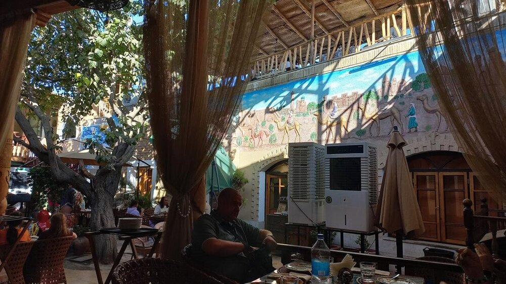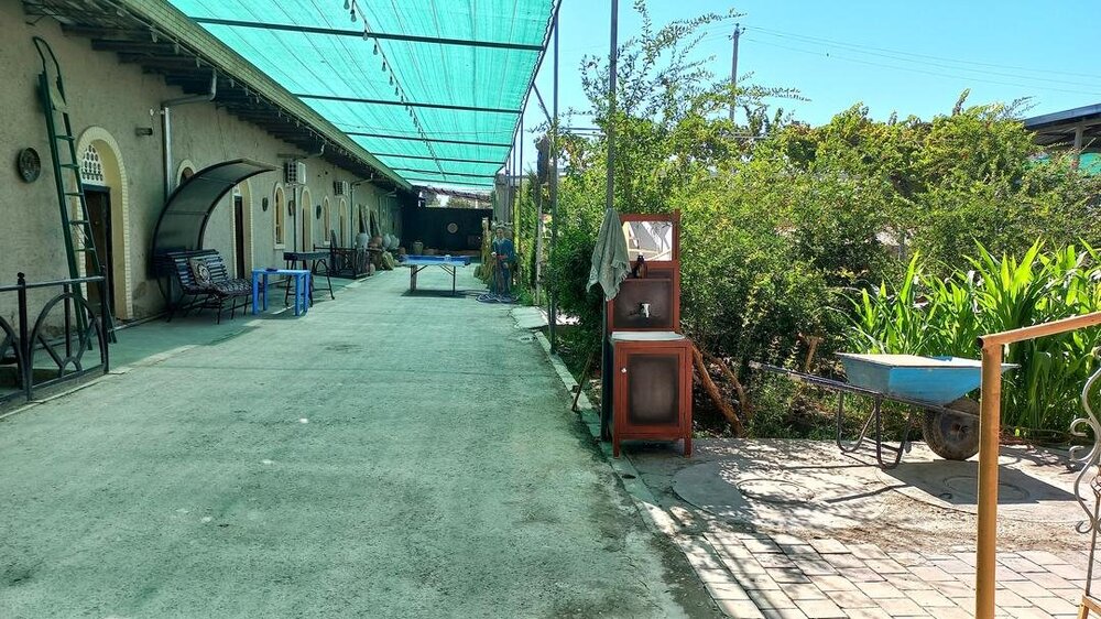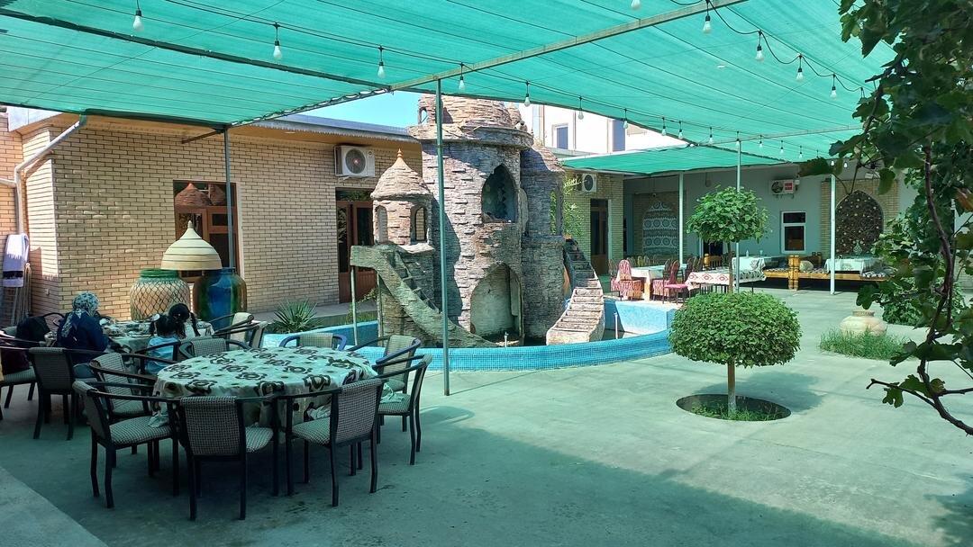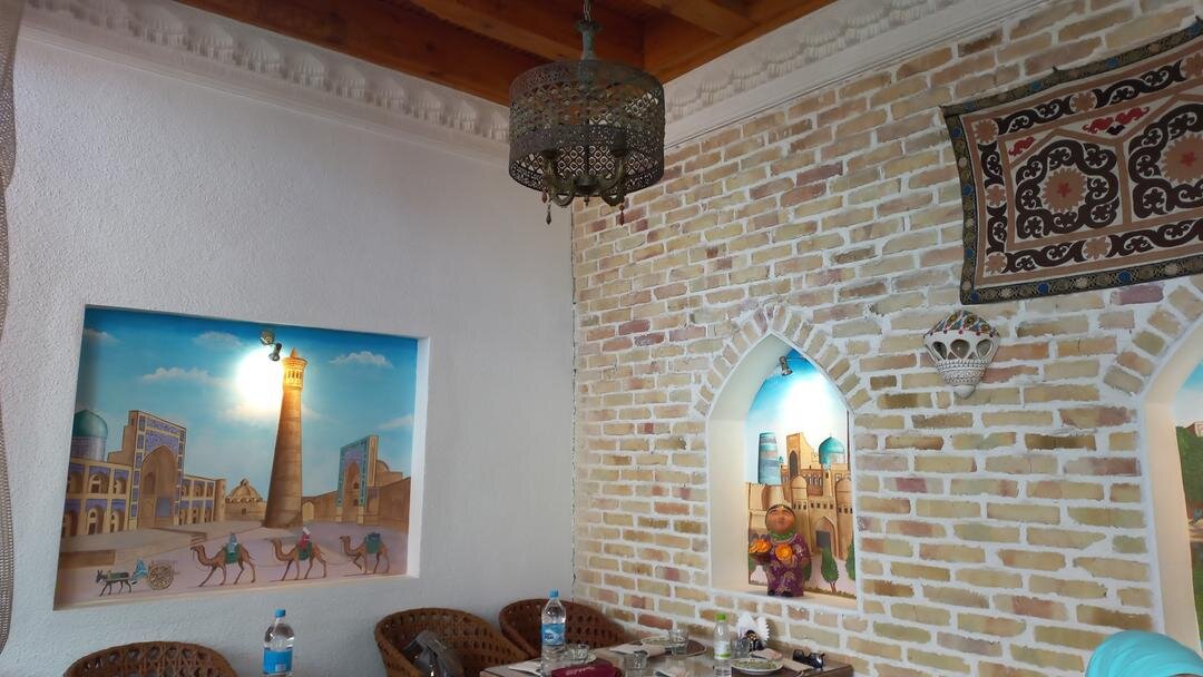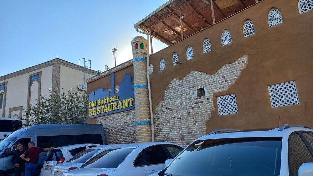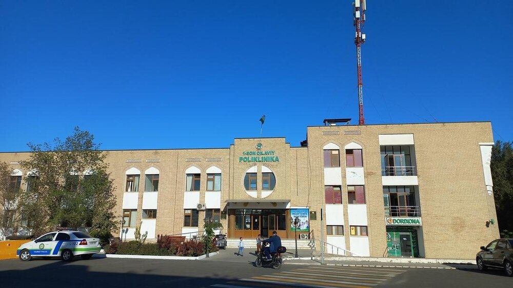 Бухара От Гиждувана до Бухары уже рукой подать. Первое, что мы делаем в Бухаре - конечно же, обедаем. Внутренний дворик под открытым небом и под сенью старого дерева: Первое очень вкусное. Как называется не помню, что-то трудновыговариваемое: А второе впервые за все время не очень понравилось. Было ощущение, что это тоже суп, но так как обед был поздний, мы уже изрядно проголодались, то все равно всё съели Зеленый чай и десерт - пирожное и мороженое: Сейчас нас отвезут к саманидам, а оттуда мы пойдем пешком в отель, осматривая по пути другие достопримечательности. А пока, так... на всякий случай.. фото поликлиники Узбекистана: