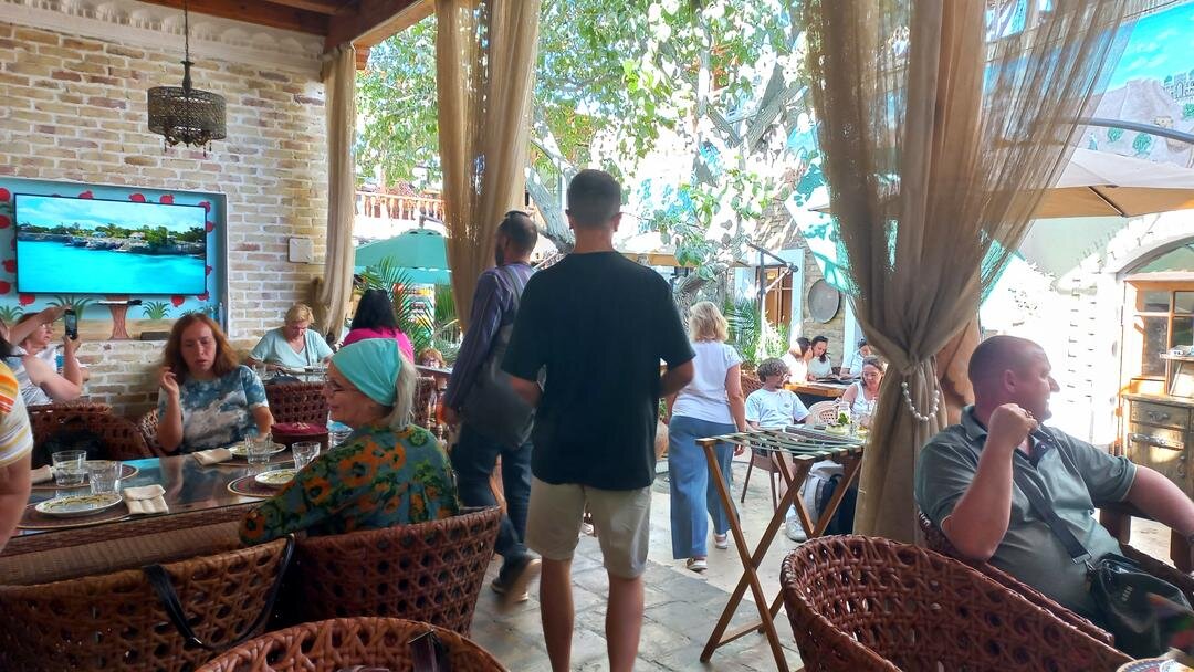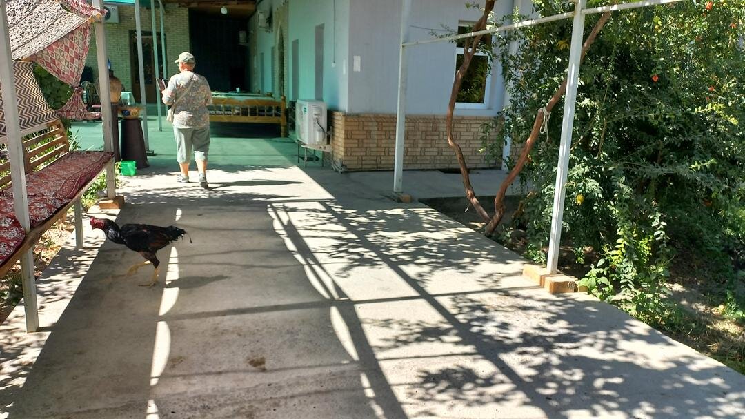 Самаркандская пивная Когда мы накануне ехали с вокзала по городу, пересекли улочку с народным названием Пабстрит, вдоль которой стоит несколько пивных. Шерзод рекомендовал посетить это место (фото из инт-та): А сегодня нам с Раей посоветовал и пивную на ней - Green Bear. Атмосфера нам сразу там понравилась. Есть веранда на улице, а есть открытая часть во дворе, под плодоносящими гранатами, где мы и облюбовали столик: Местное пиво Пульсар юный официант не порекомендовал, Балтику (она тоже присутствовала в меню ) мы и сами не захотели, а выбрали "Стеллу Артуа" и какие-то закуски к пиву. На крыльцо вышел аккордеонист и запел что-то грустное: Южное небо со звездами, аккордеон, гранаты на расстоянии руки... Ах, что за вечер Рая послала домой видео: -Второй вечер в Самарканде. Вчера нас торкнуло на танцы и сегодня опять продолжает торкать на что-то. На что, пока не знаем За соседним столиком слева шумела и обкуривала нас большая компания нерусско-говорящих. А справа за столиком сидела молодая парочка русскоязычная. Девушка - скромная и застенчивая, и молодой человек, всячески её охмурявший. Вместе с аккордеонистом из недр пивной вышел и местный кот, подошел ко мне и давай попрошайничать. На почве этого кота завязалась веселая беседа с юной парочкой. Больше с молодым человеком, девушка только скромно улыбалась: Оказалось, что юноша имеет отношение к туристическому бизнесу и знает нашего Шерзода, с ним в этом баре и познакомился: Молодой человек (так же, как и веселый таксист-ядерщик из Ташкента) удивился, когда узнал наш возраст: -А я всегда думал, что бабушки вашего возраста только клубнику выращивают и с внуками нянчатся, а не по пивбарам ходят. -Хм... А мы еще на ночных площадях танцуем и по горам лазаем. Правда, крестиком не очень умеем вышивать, - посмеялись мы. -Нет. Наши бабушки вообще в тур. поездки не ездят. Им это и в голову не придет, да и финансовой возможности у них такой нет: Мы с Раей заказали еще по темному пиву (уже было все равно, какому), и разговор стал звучать громче и веселее, особенно, когда речь зашла о финансах. Шумная компания за соседним столиком слева слегка притихла и даже обкуривать нас перестала. Показалось, что они тоже хотят включиться в нашу беседу, да языка не знают. Обсудили стоимость жизни здесь. Градус беседы повышался. Заказали еще какое-то светлое пиво по совету официанта. -Мать честная! - промелькнуло в голове, - что очередной южный вечер делает. В общем, вечер оказался душевным, интересным и немного хмельным. Когда принесли счет, мы с Раей не смогли открыть хитрую защелку шкатулки, попросили молодого человека открыть, а заодно огласить стоимость, ибо без очков, да в полумраке можем ошибиться. Он всё это проделал и вдруг изумленно заматерился, на русском, конечно: -Вы бабушки еще и "Стеллу Артуа" пьете? Да, она равна половине вашего чека! Мы тоже изумились - не думали, что она здесь так высоко ценится Фото на прощанье: Приятная молодая парочка. Пожелаем им счастья Каждый вечер мы общались с местными: водителями для поездок в горы, таксистами. И со всеми общаться было приятно и весело.