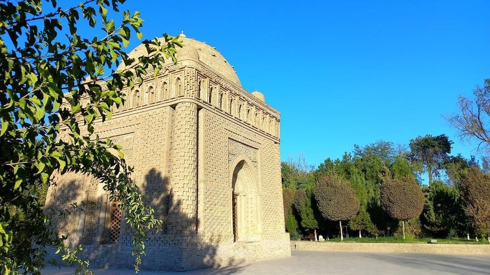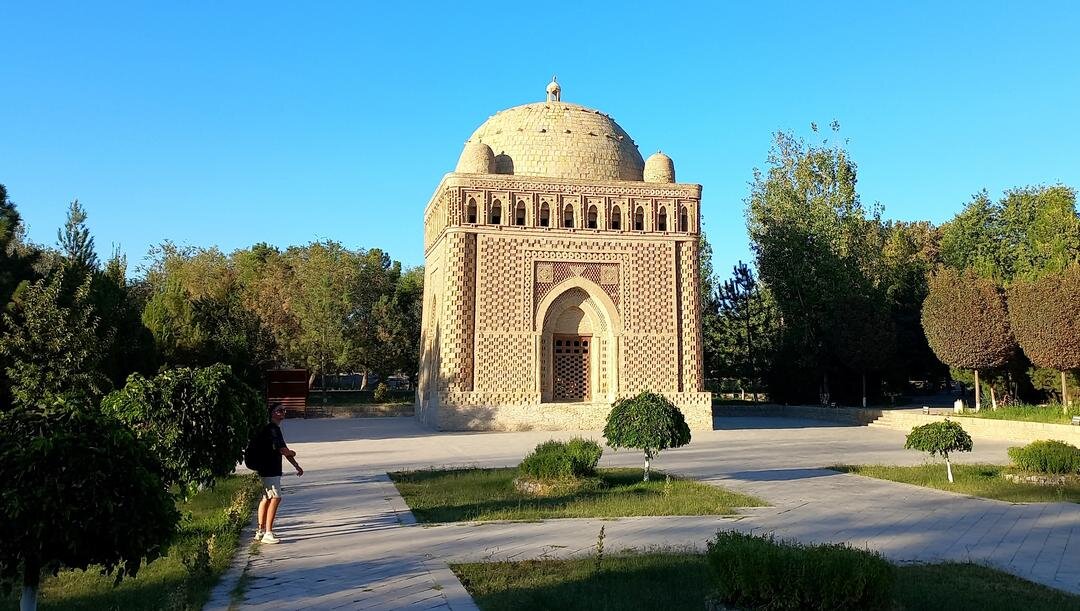 Бухара. Мавзолей Саманидов Нас довозят до парка Саманидов. Парк местами выглядит субтропически: В парке находится мавзолей Саманидов. Мавзолей - сказочное чудо: изящное, воздушное, как будто сплетенное из бересты: Постройка 9 века. Сохранилась практически в первозданном виде. Из-за того, что перед нашествием монголов местные жители, чтобы уберечь мавзолей, засыпали его песком, создав над ним бархан. И монголы до него не докопались . Кто такие Саманиды? Основатель династии - Исмаил Самани. Саманиды всячески подчеркивали свое близкое родство с персидскими сасанидами (помните гробницы сасанидов Накше-Рустам в Персии недалеко от Персеполиса?). Исмаил был послан правителем в Бухару, и вроде был правителем очень даже достойным. Народ его уважал. Согласно бухарскому историку, писавшему в 943 году, Исмаил Был действительно достоин на пост падишаха. Он был умным, справедливым, сострадательным человеком, обладающим разумом и предвидением… он вёл дела со справедливостью и хорошей этикой. Кто бы ни тиранил людей, он будет наказан… В государственных делах он всегда был беспристрастен. Известный учёный Низам аль-Мульк в своей знаменитой работе «Сиясат-наме» утверждал, что Исмаил был чрезвычайно справедлив, и у него было много хороших качеств. У него была чистая вера в Бога, и он был щедр к бедным — и это только одна из его выдающихся добродетелей. Бухара была столицей государства саманидов, которое располагалось где-то здесь, на территории нынешних Узбекистана и Таджикистана. В Таджикистане есть несколько монументов Исмаилу Самони, денежная единица - сомони, и наш пик Коммунизма, переименованный в пик Исмаила Самони. Исмаил построил этот мавзолей для себя. Необычная кирпичная кладка снаружи и внутри создает определенный орнамент, является украшением. На солнце тени меняют рисунок. Форма здания - правильный куб, что является символом земли и устойчивости, надежности. Круглый купол - символ неба, бесконечности. А вместе они создают равновесие. И спокойствие: И такой красе ненаглядной более 1000 лет. Ну, а мы идем дальше. Опять же по парку. Это же -Узбекистан